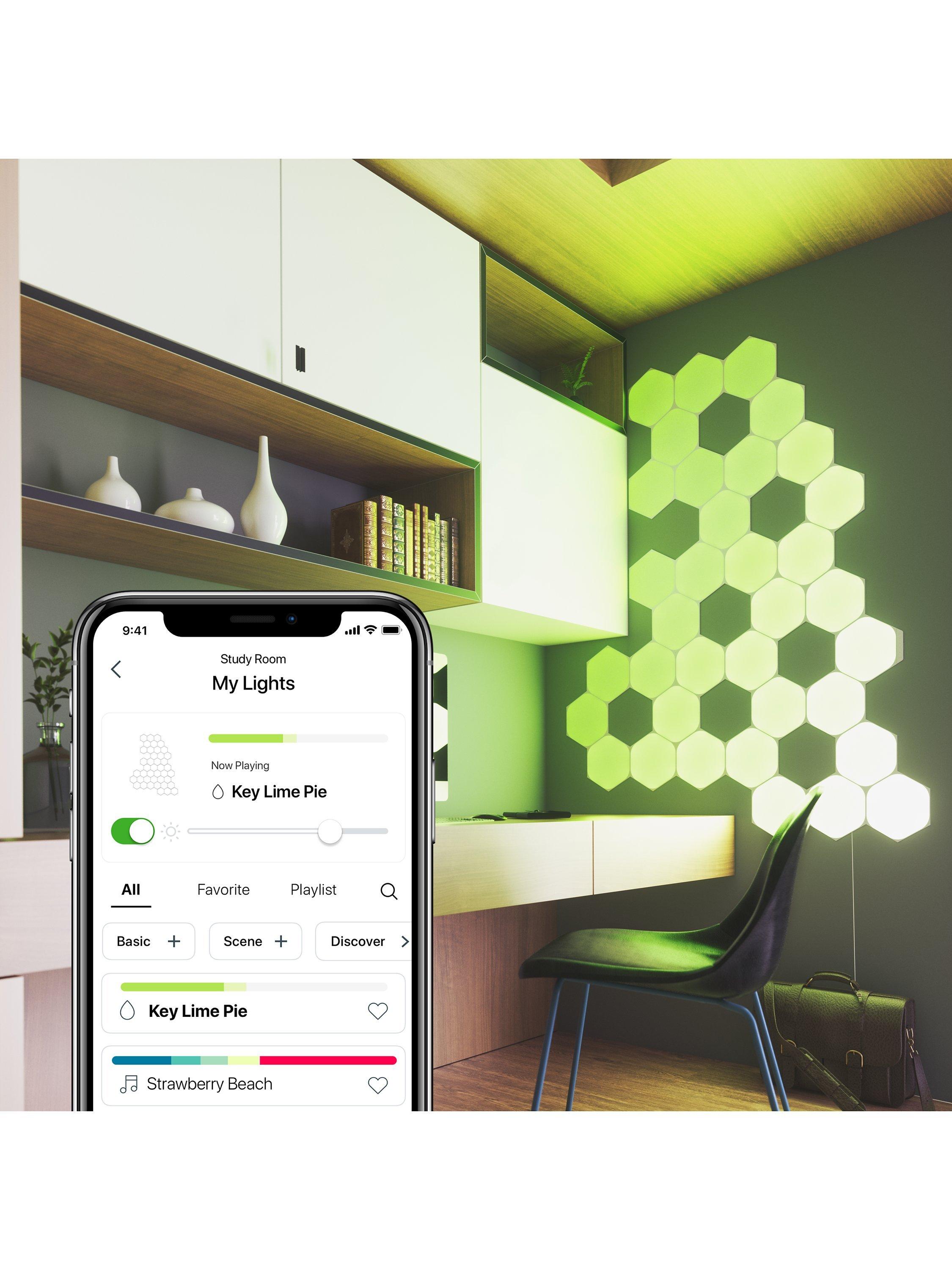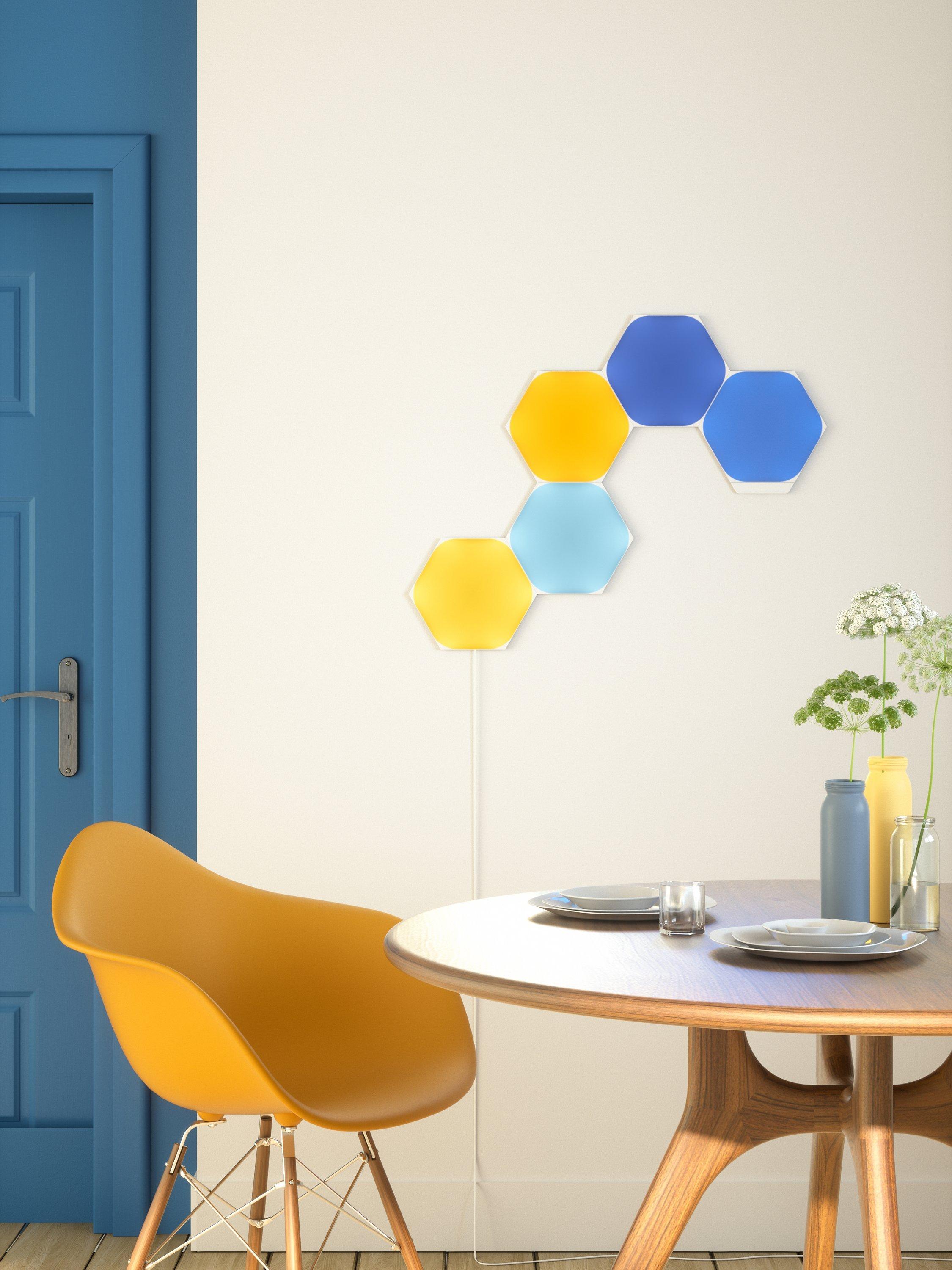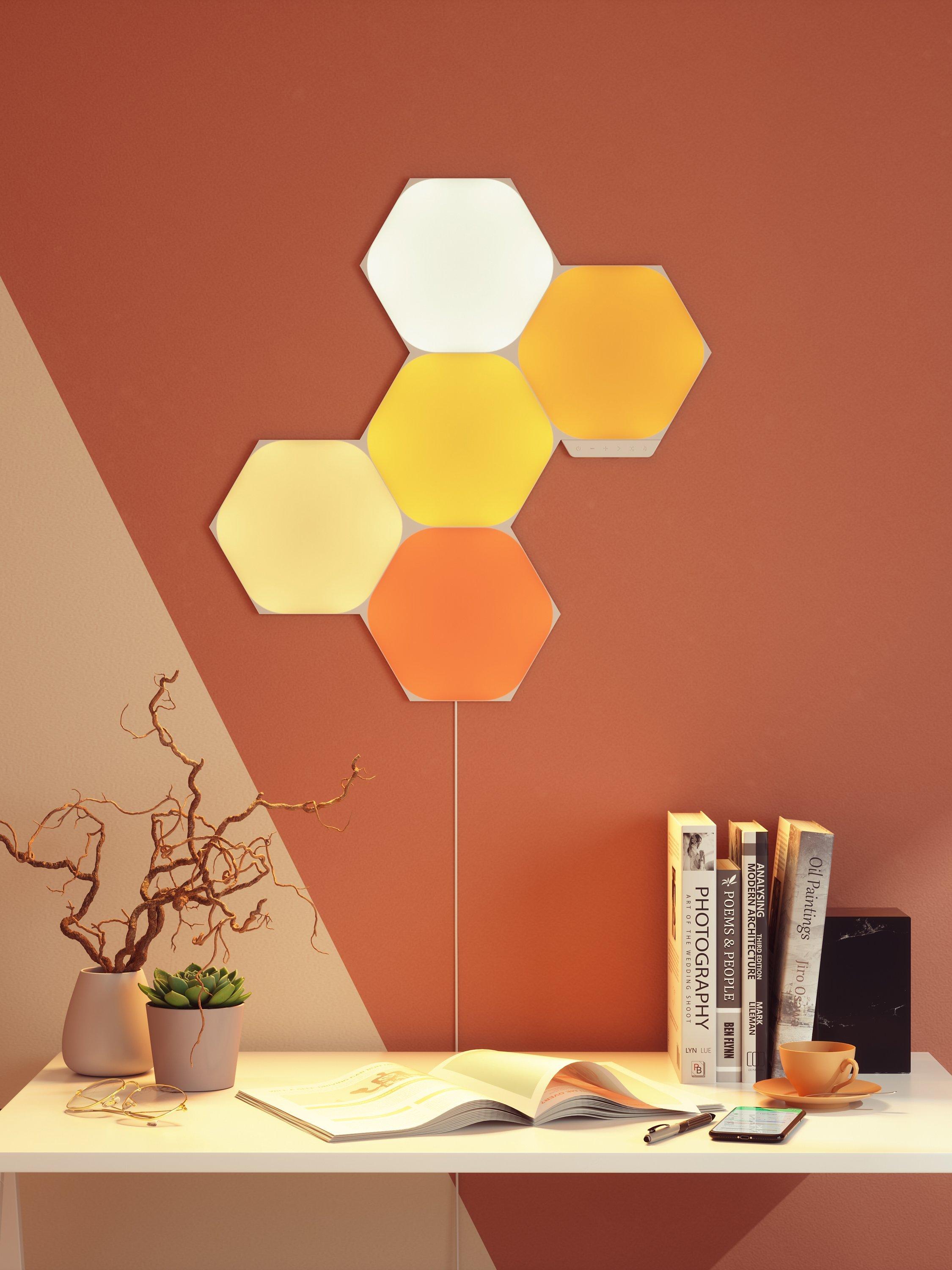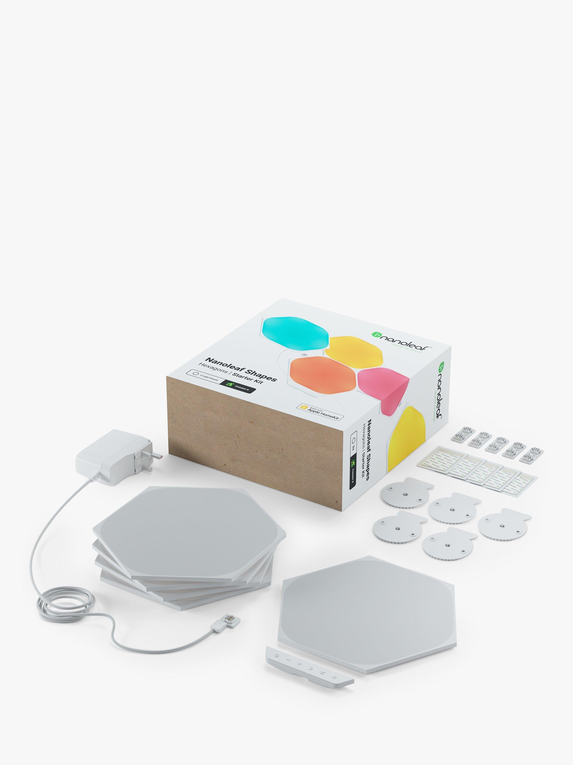 The Nanoleaf Shapes Hexagons are five modular, LED light panels that will transform your space with a multi-sensory light experience. A combination of smart technology and sleek, ultra-thin design, they're easy to install and mounted to the wall using the included mounting tape. Hexagons are designed to work with future shapes and offer limitless lighting and design possibilities for your home decor.