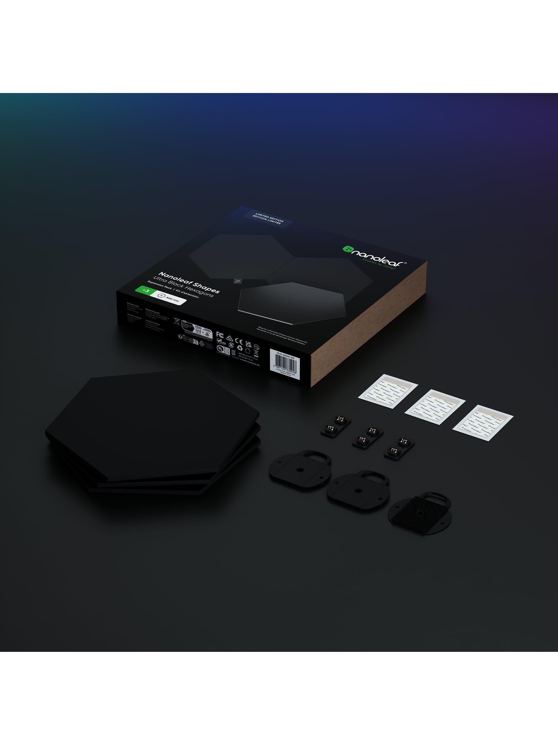 Unleash smart lighting like you've never seen before with the limited edition Nanoleaf Shapes Ultra Black Hexagons. Featuring a 360 Black finish including black mounting and power accessories to design and create your own accent or statement piece.