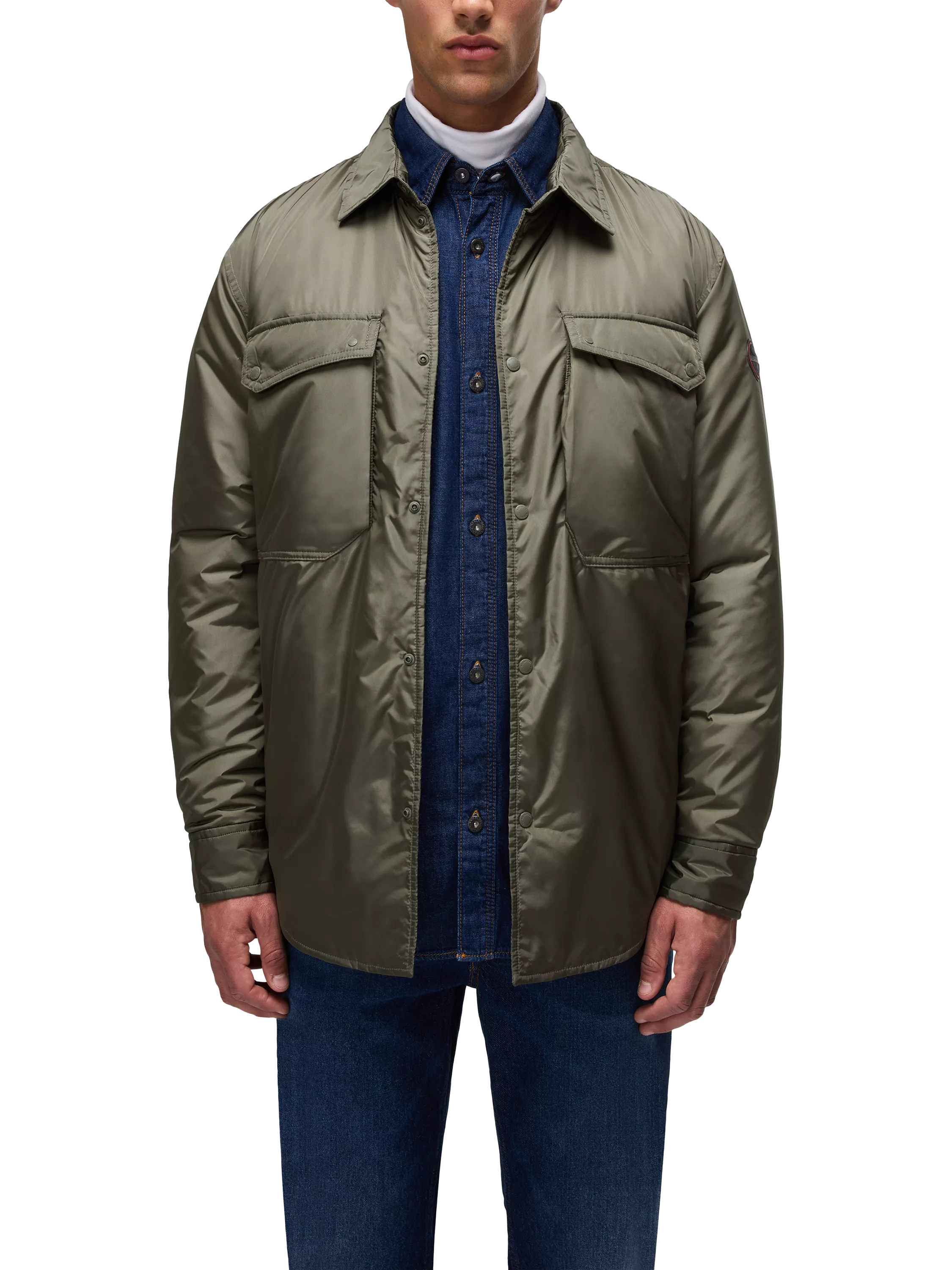 Finished with two large chest pockets, this padded jacket is both practical and pleasing to the eye.