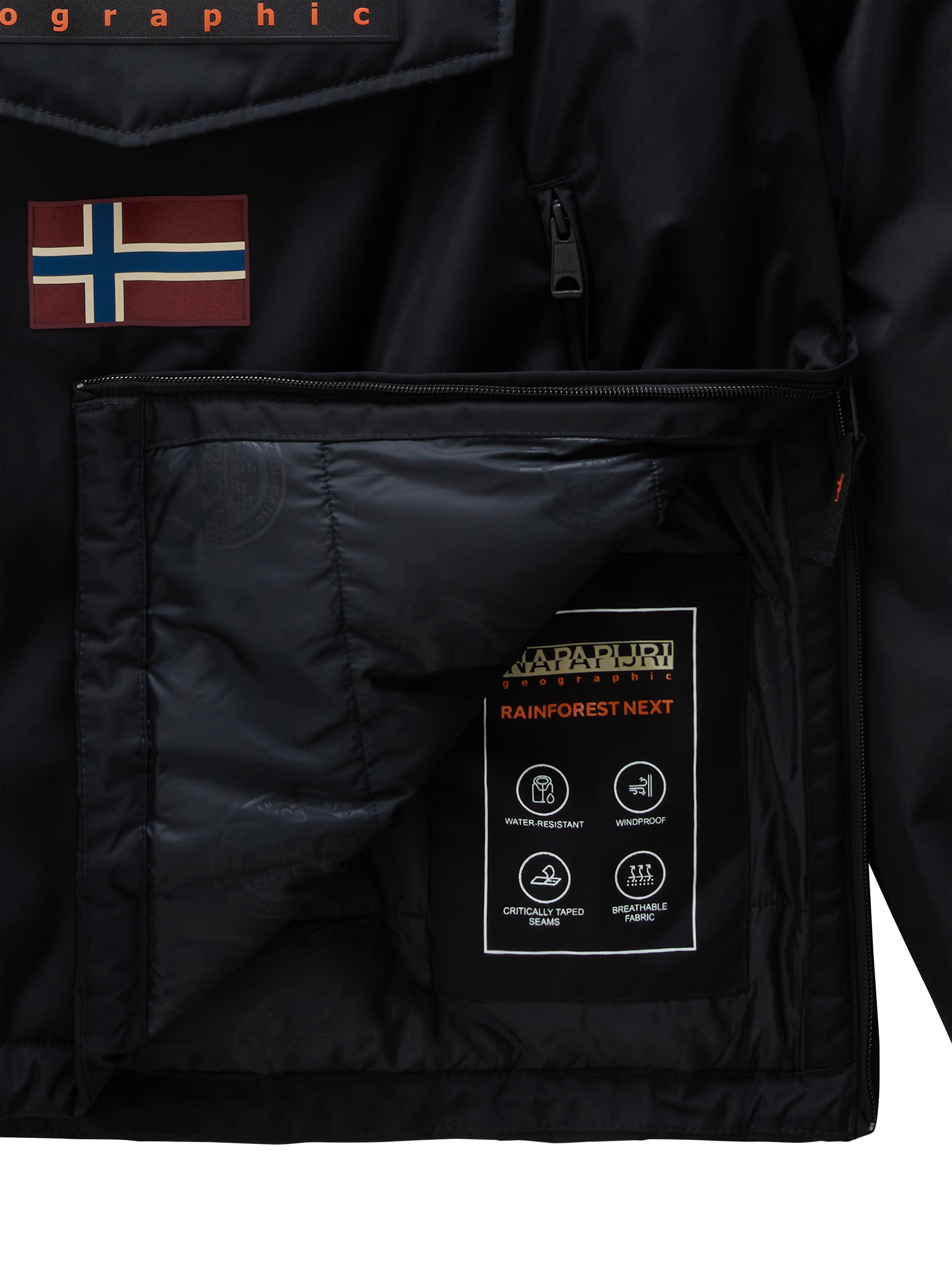 The Rainforest Next Winter Anorak brings Napapijri's signature blend of outdoor heritage and urban style to life with its streamlined silhouette and technical build. This winter-ready anorak delivers reliable protection against light precipitation with its 3000mm waterproof rating, breathable construction, and critically taped seams.