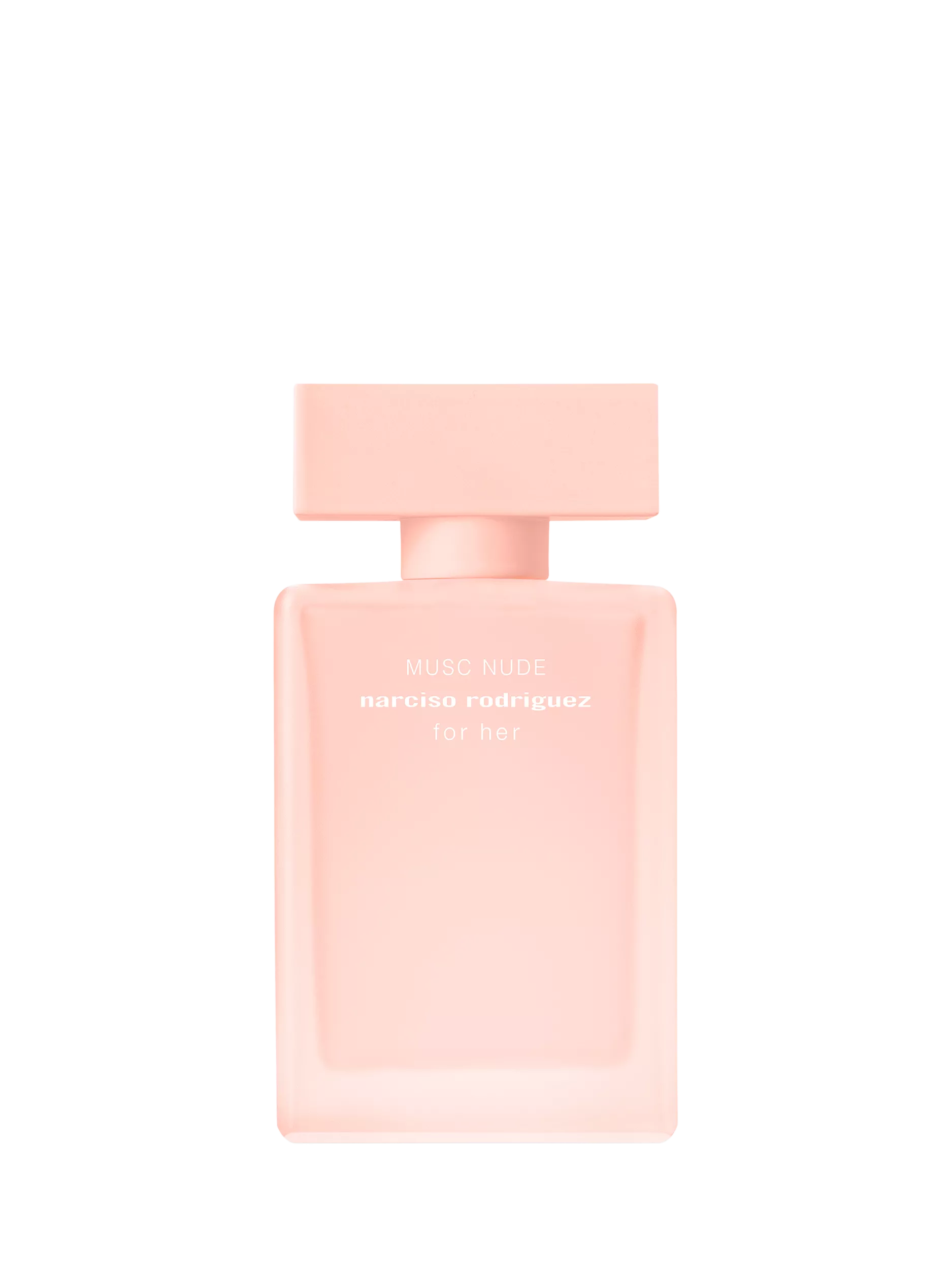 A nude pink perfume bottle: For Her Musc Nude revisits the iconic for her bottle with an all-over nude pink in a frosted finish and a matte cap in a matching shade — for a design that is as softly enveloping as the fragrance within. Reflecting the perfume’s elegance, the bottle’s sophisticated lines create a precious object of aesthetic harmony.