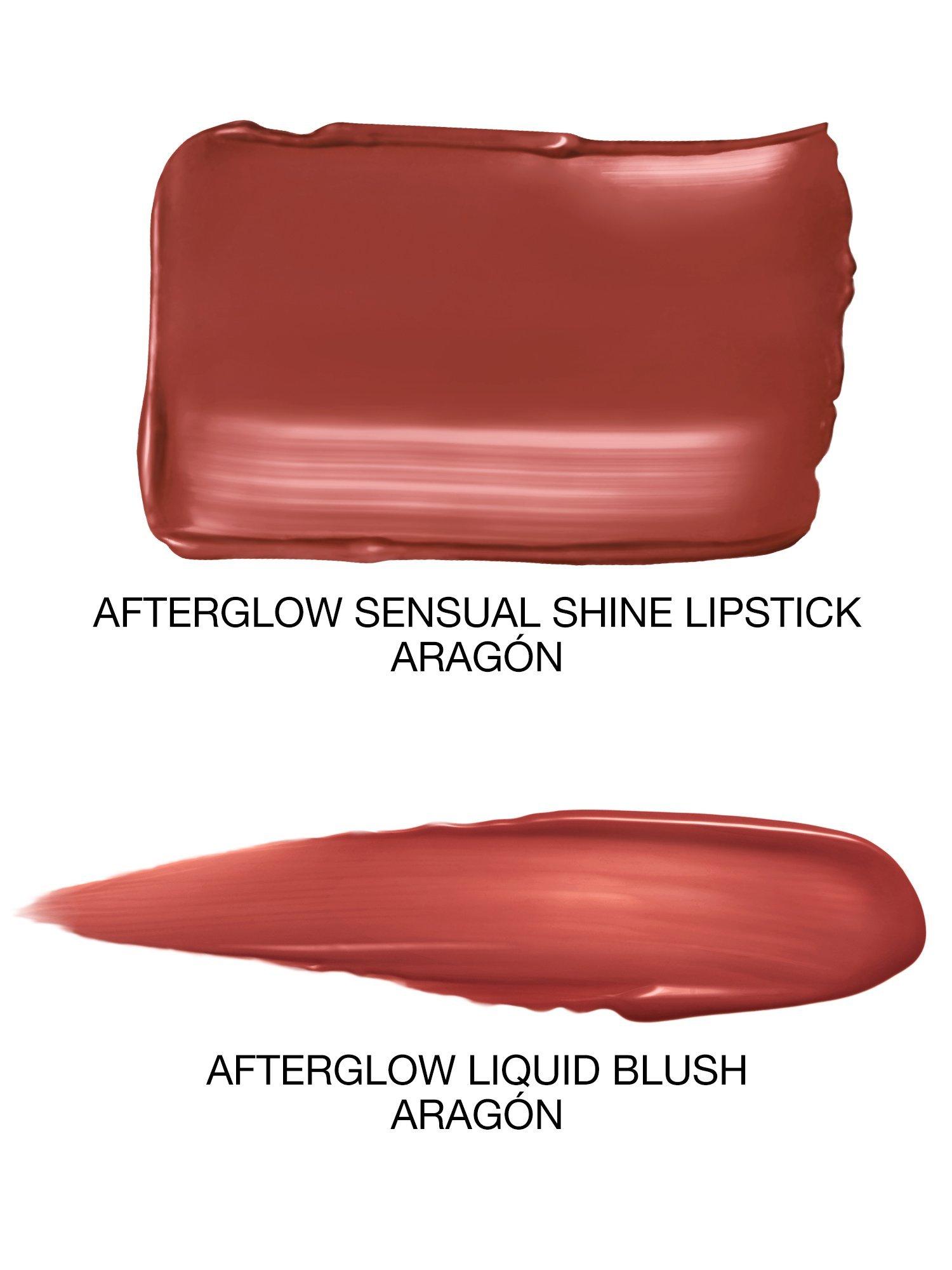 Dress up with Mini Afterglow Liquid Blush's rush of radiant colour and complement cheeks with a matching lip of full-size Afterglow Sensual Shine Lipstick, loaded with hydration and a lightweight sheen for a fuller, high-shine effect.