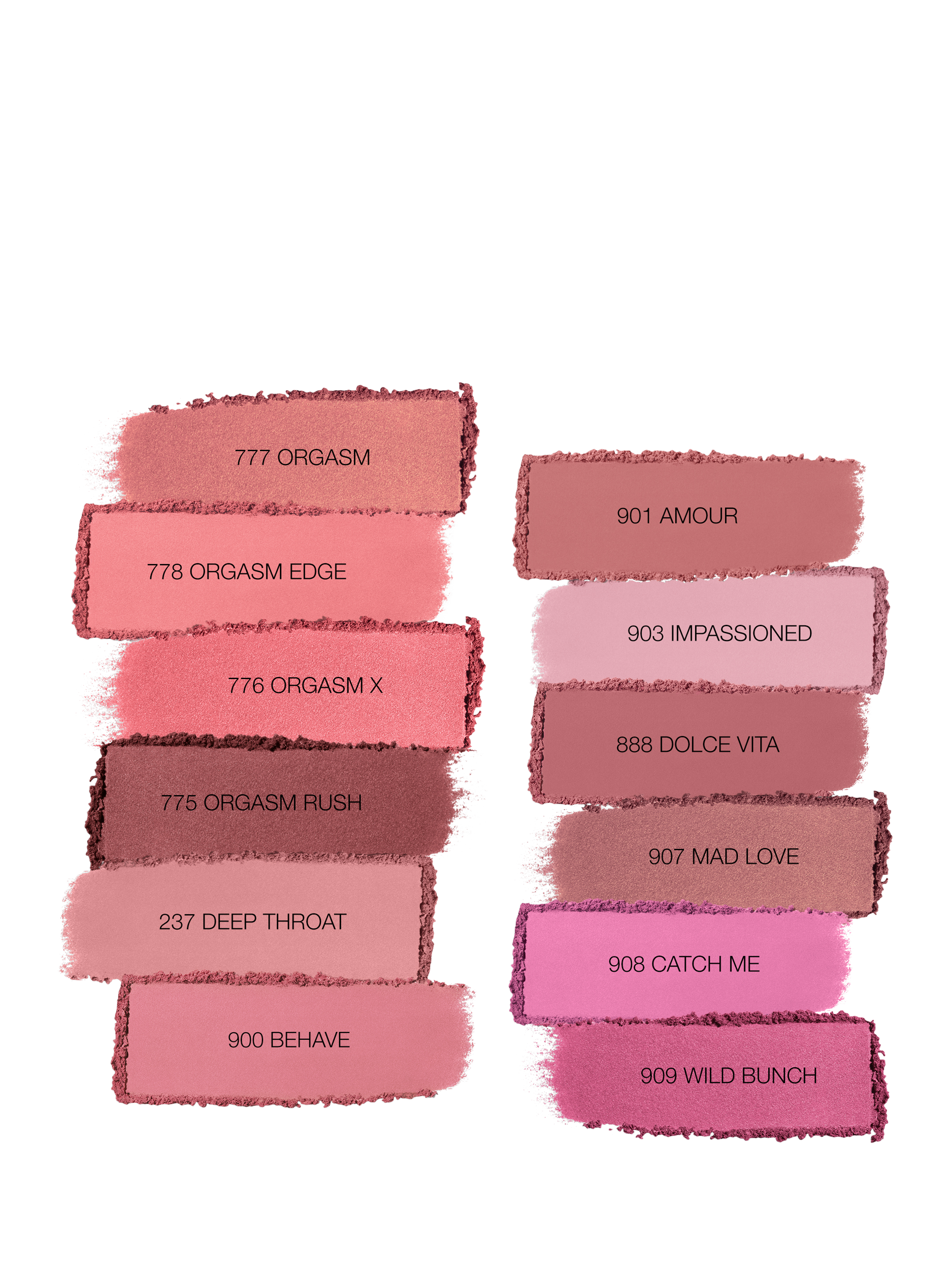 Orgasm. Deep Throat. Sex Appeal. NARS is the ultimate authority in making you blush.