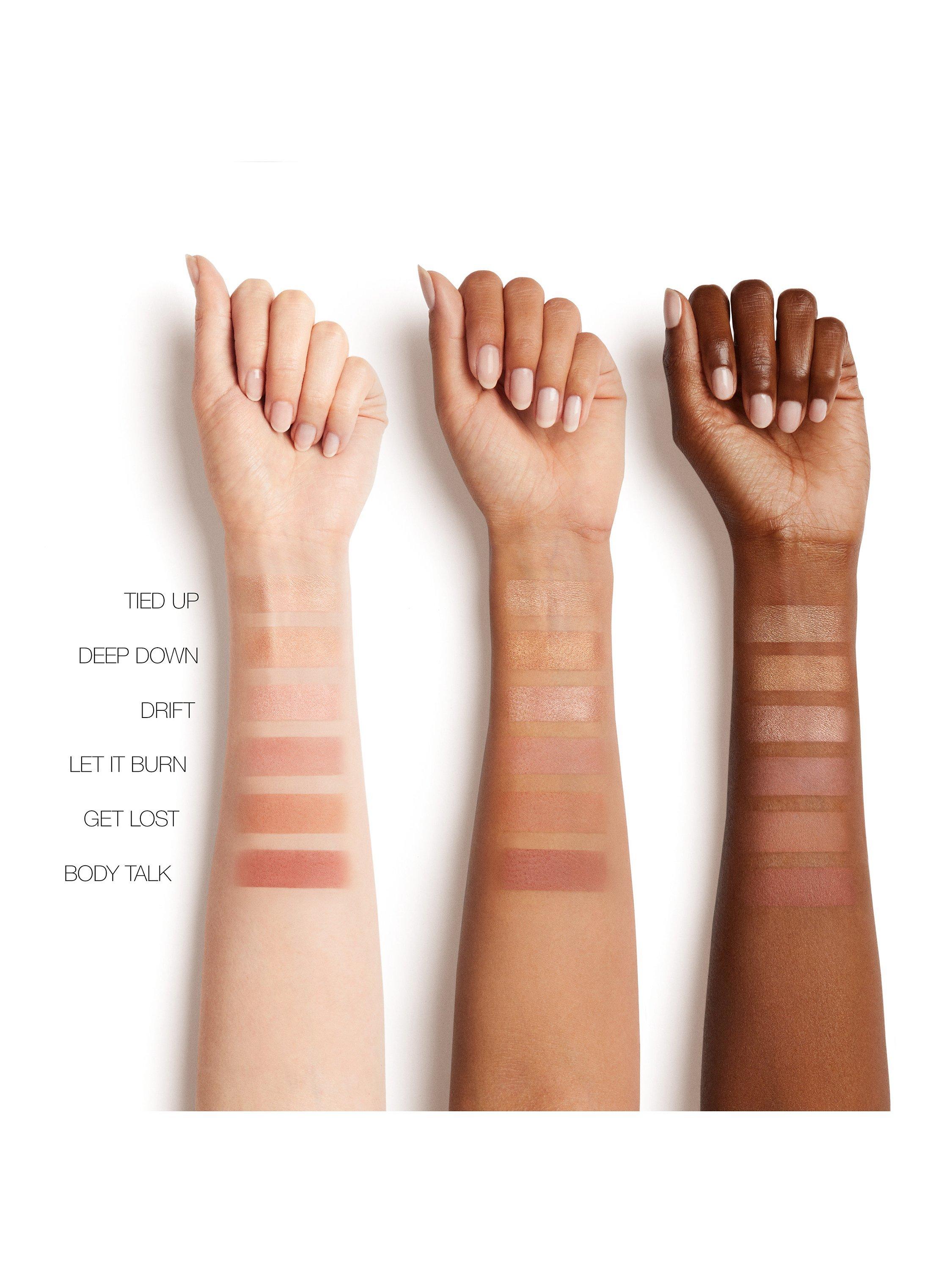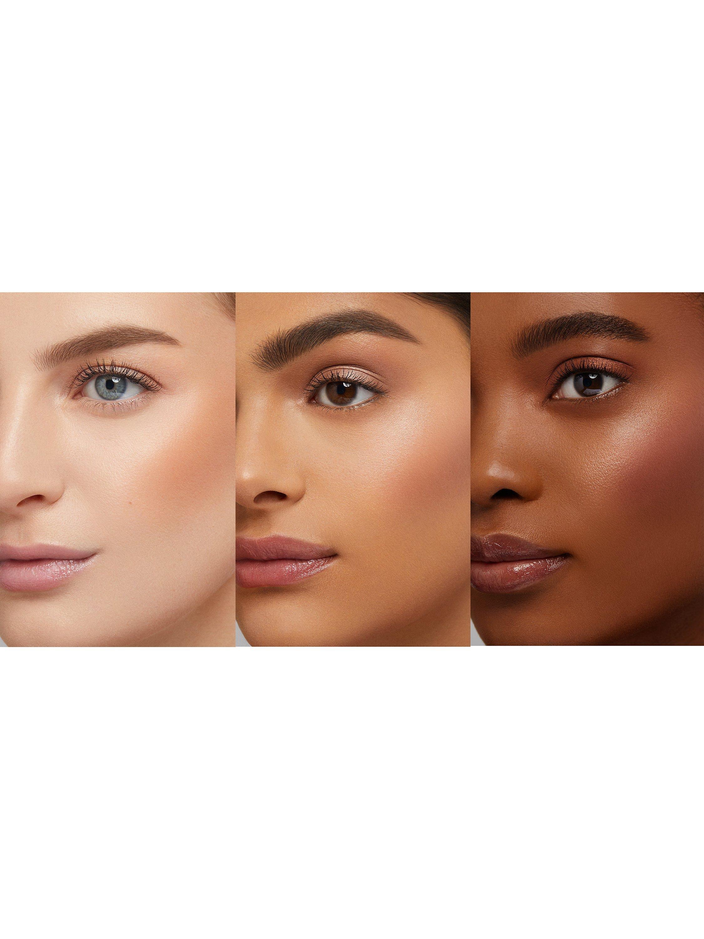 - Wear on bare skin alone for a subtle glow, layered under blush to add extra luminosity and over blush for amped-up highlight