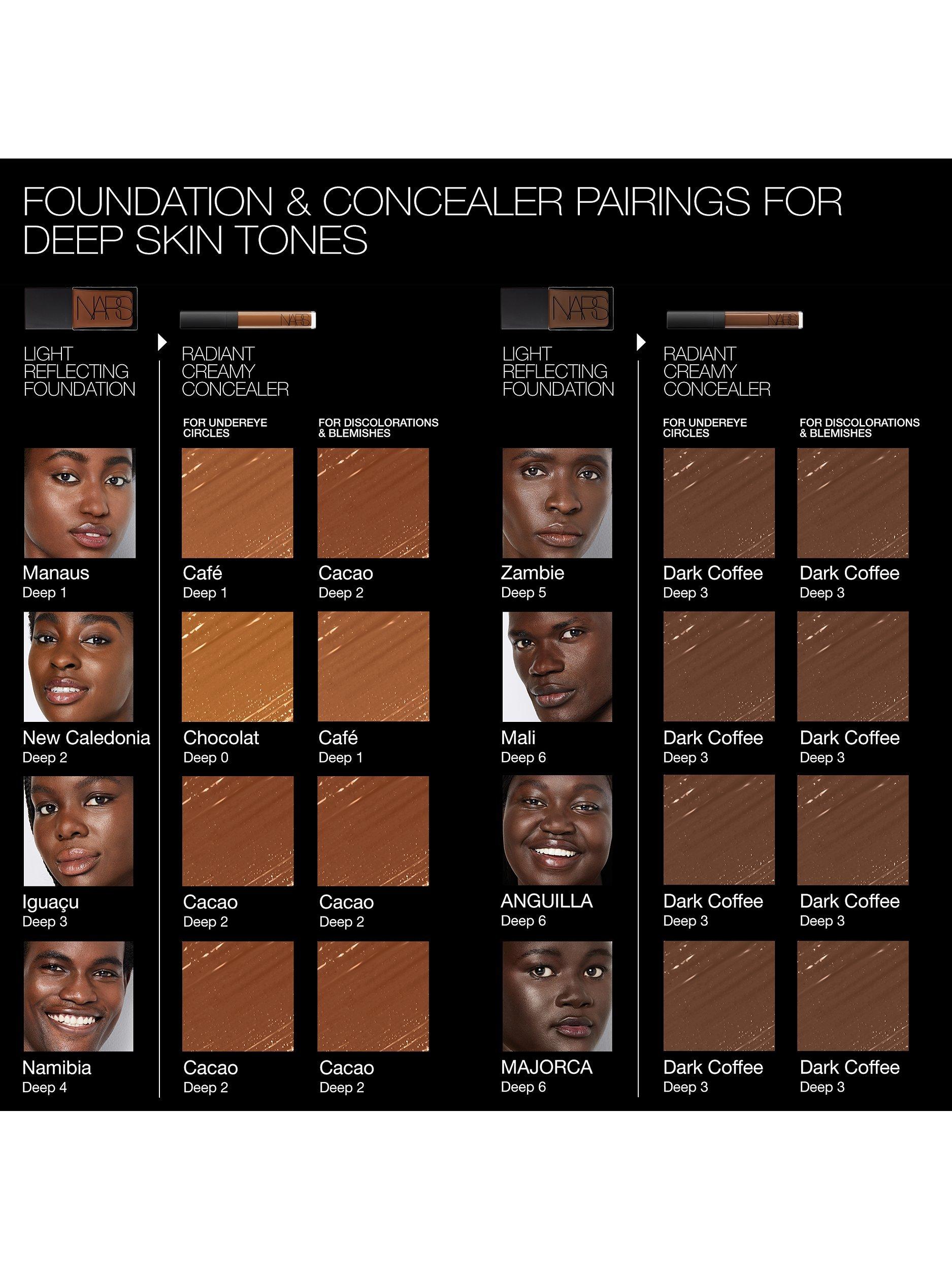 Top tip: To find your perfect shade match, blend along the jawline and allow concealer to dry down on the skin. Shades may vary slightly across formulas depending on coverage and finish.