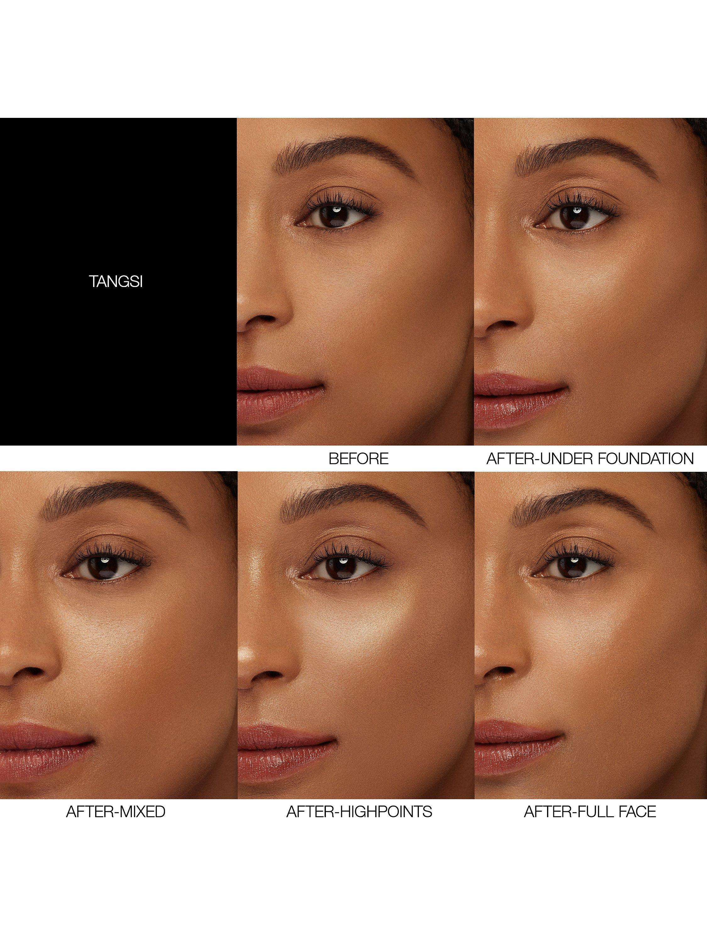 Use alone, underneath foundation, or mixed with equal parts Tinted Glow Booster and your foundation for a custom, natural-looking glow. For a subtle highlight, blend on high points of cheeks, bridge of the nose, Cupid’s bow, and décolleté.