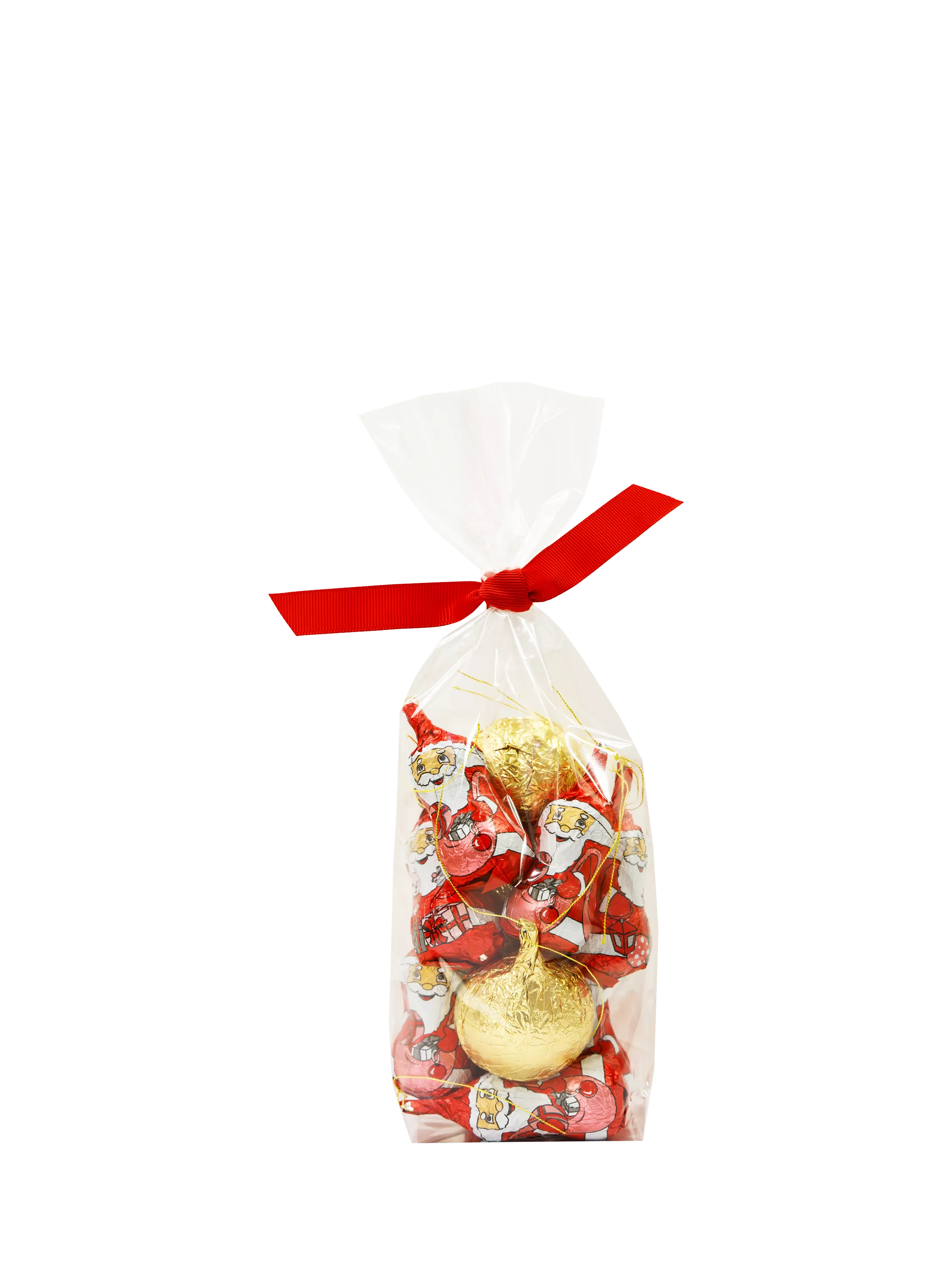 Christmassy foil wrapped hollow milk chocolate, with gold threads to tie onto your Christmas tree.