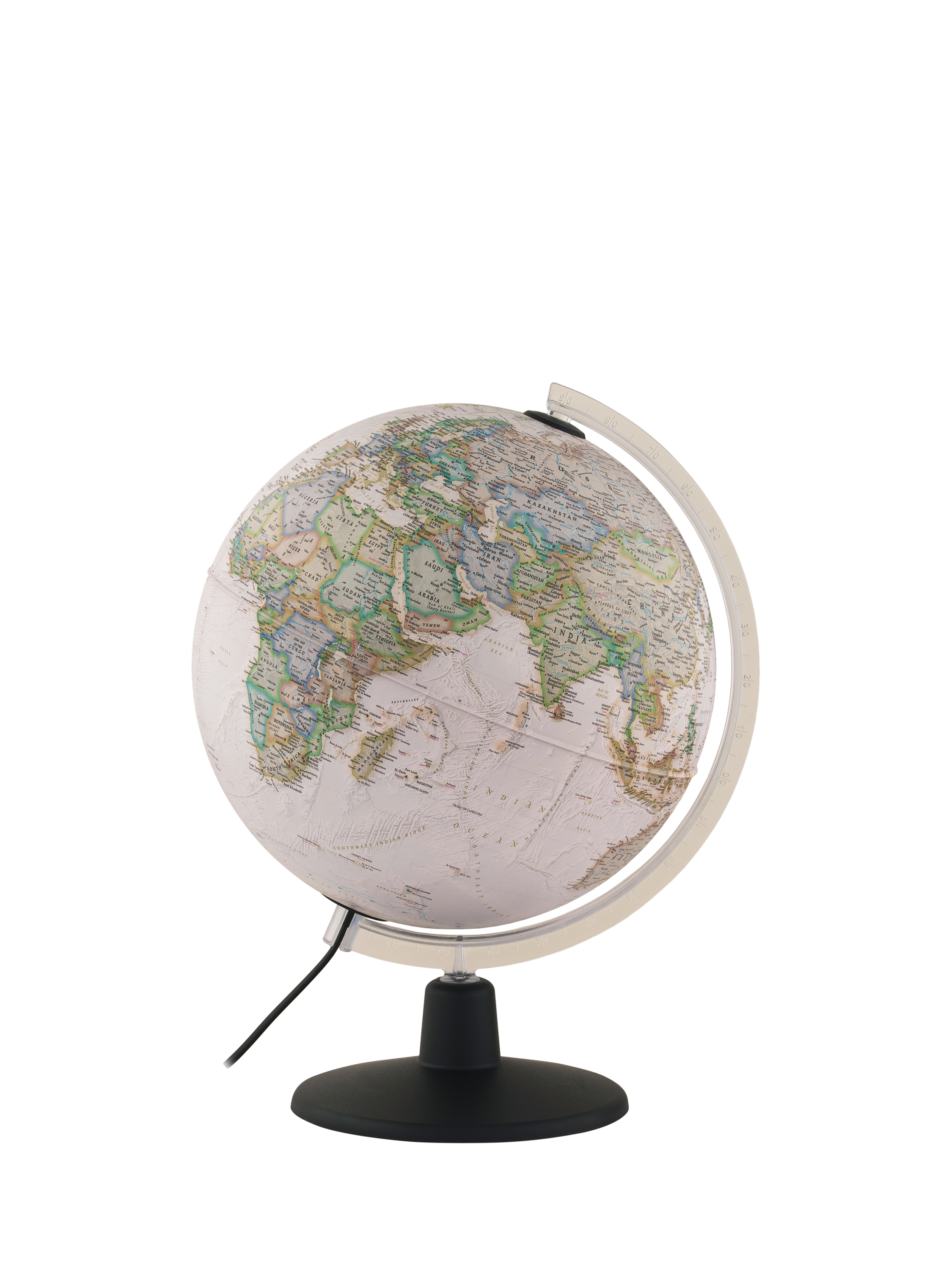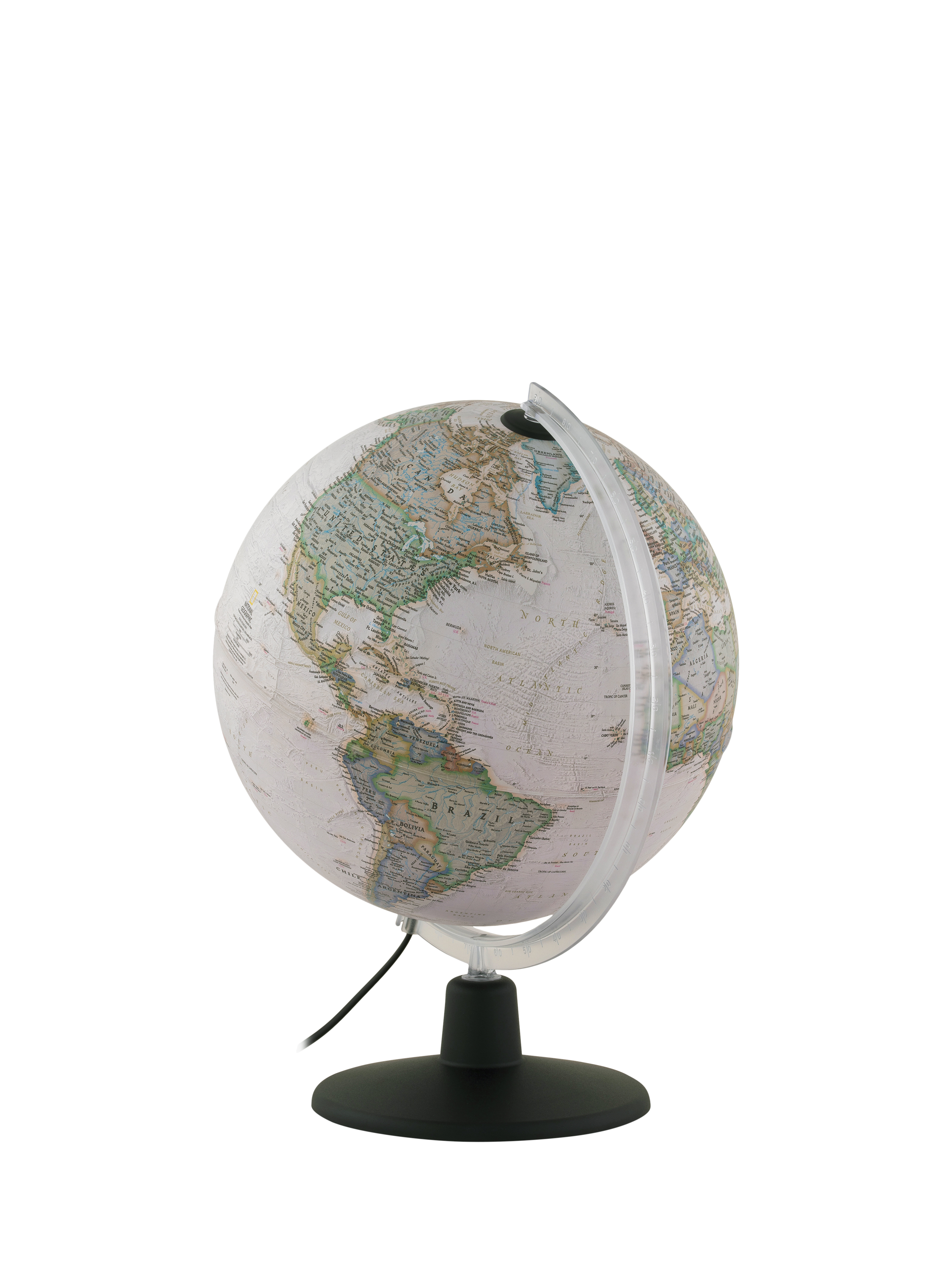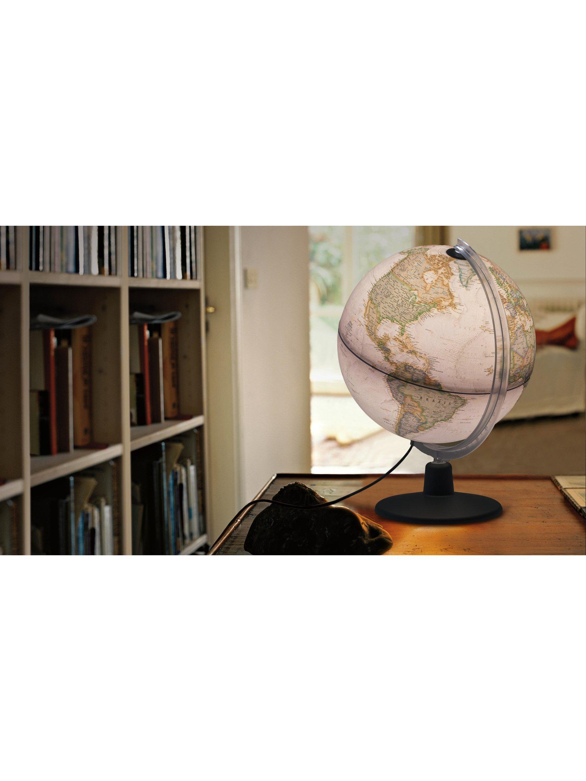 This elegant National Geographic brand 30cm executive globe comes with political boundaries and highlighted world features in a classic antique style finish. It is also illuminated for easy viewing of the different features and would look stylish in-home office or study. All wording on the globe is in English.