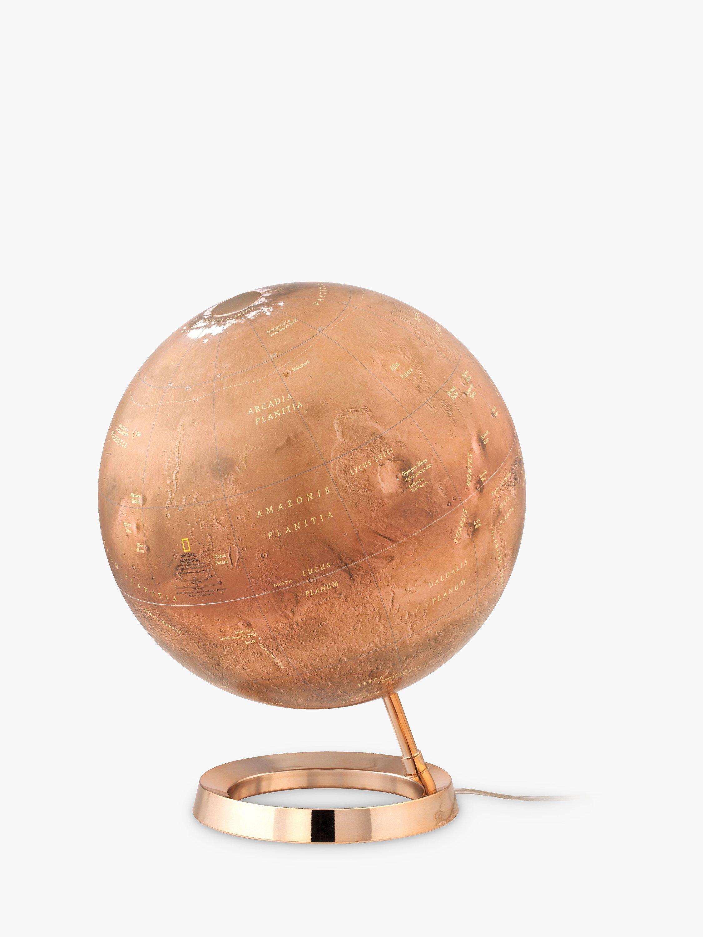 This unique Mars globe from National Geographic. The planet from Earth seems rusty red, so its colour scheme is very close to the real one. This elegant globe features a metal base and features Mars' surface map, its a beautiful model that will be a unique decoration of any room.