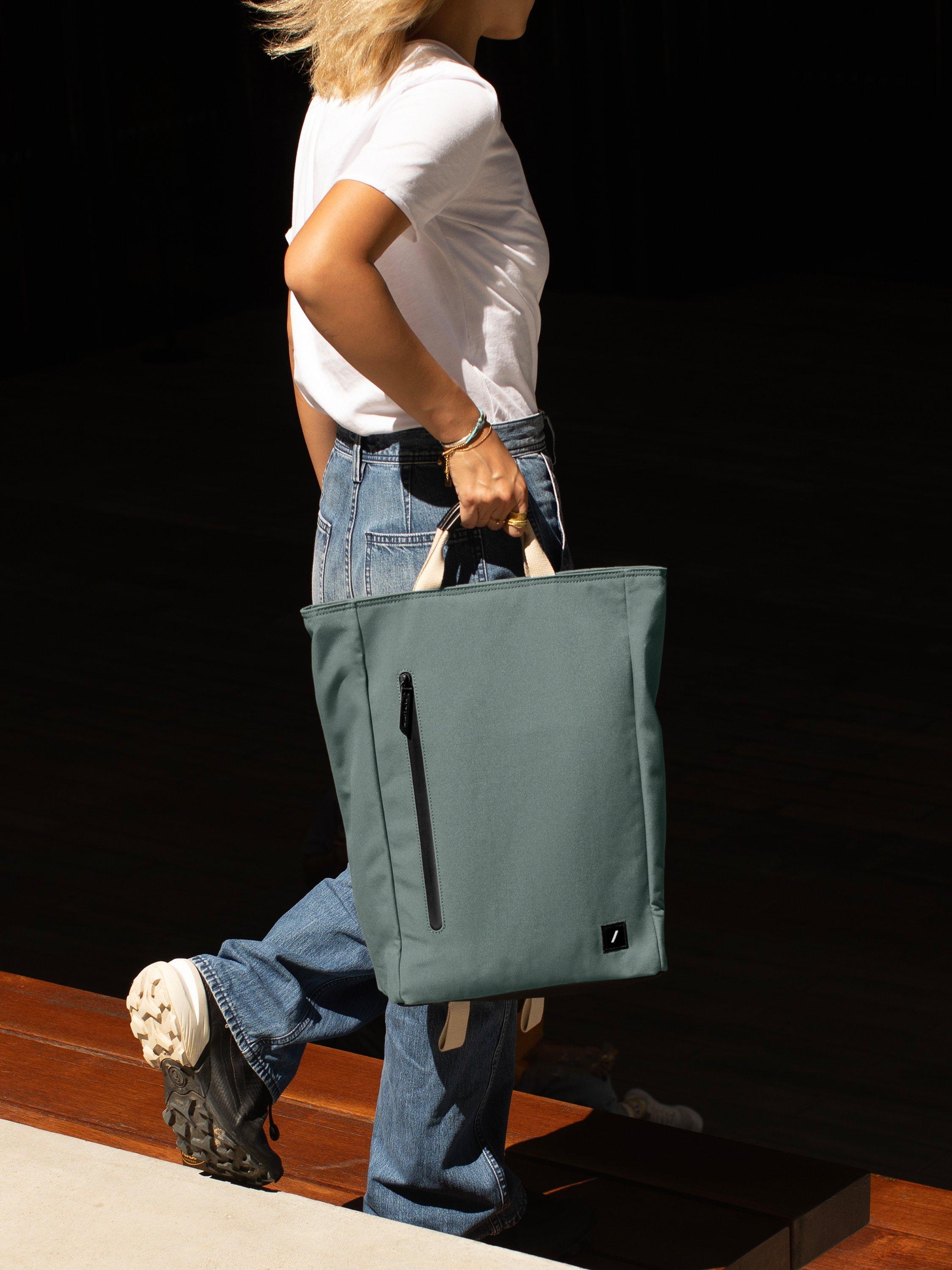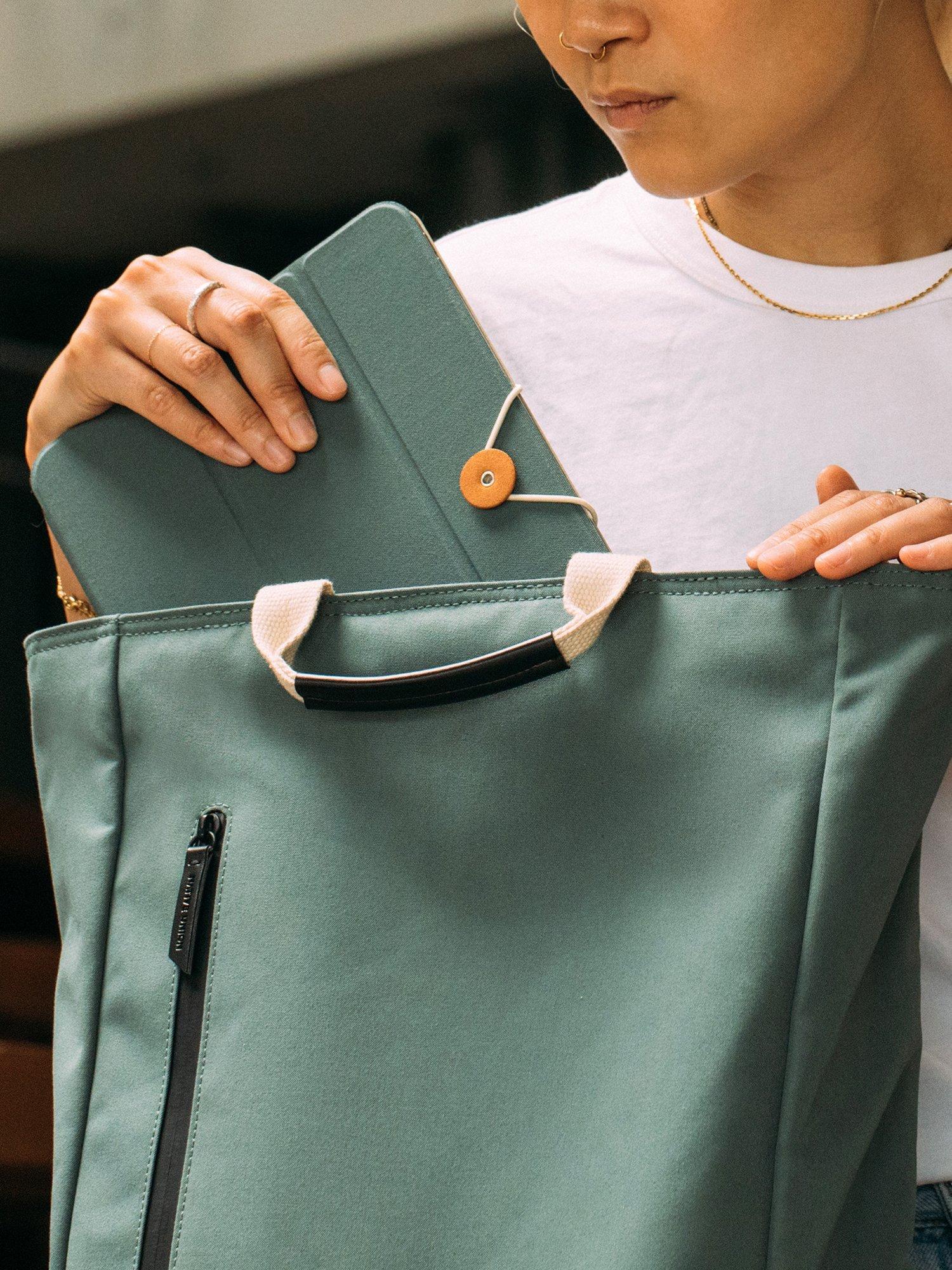 Modern, minimalist profile for an easy-to-match everyday bag. Made with 100% recycled polyester (rPET) made from plastic bottles & refined accents made from plant-based sources. Lightweight & spacious 20L capacity with interior pockets, key leash, water bottle holder & a hidden pocket for a Chipolo tracker.