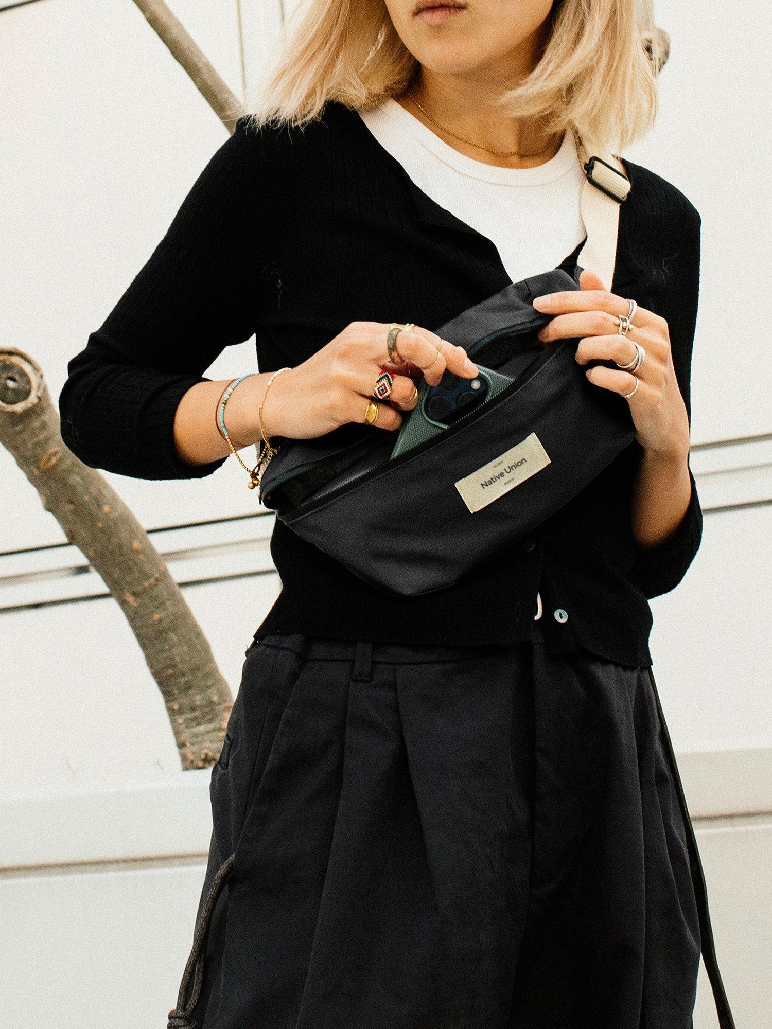 The Work From Anywhere Crossbody Pouch is a lightweight sidekick that houses your phone, keys, wallets, chargers, and other essentials - bulk-free and hands-free. Compact yet spacious, functional yet stylish, it's the go-to solution for city strolls, outdoor hikes, and more. Modern, minimalist profile for an easy-to-match everyday bag, made with 100% recycled polyester (rPET) made from plastic bottles & refined accents made from plant-based sources.