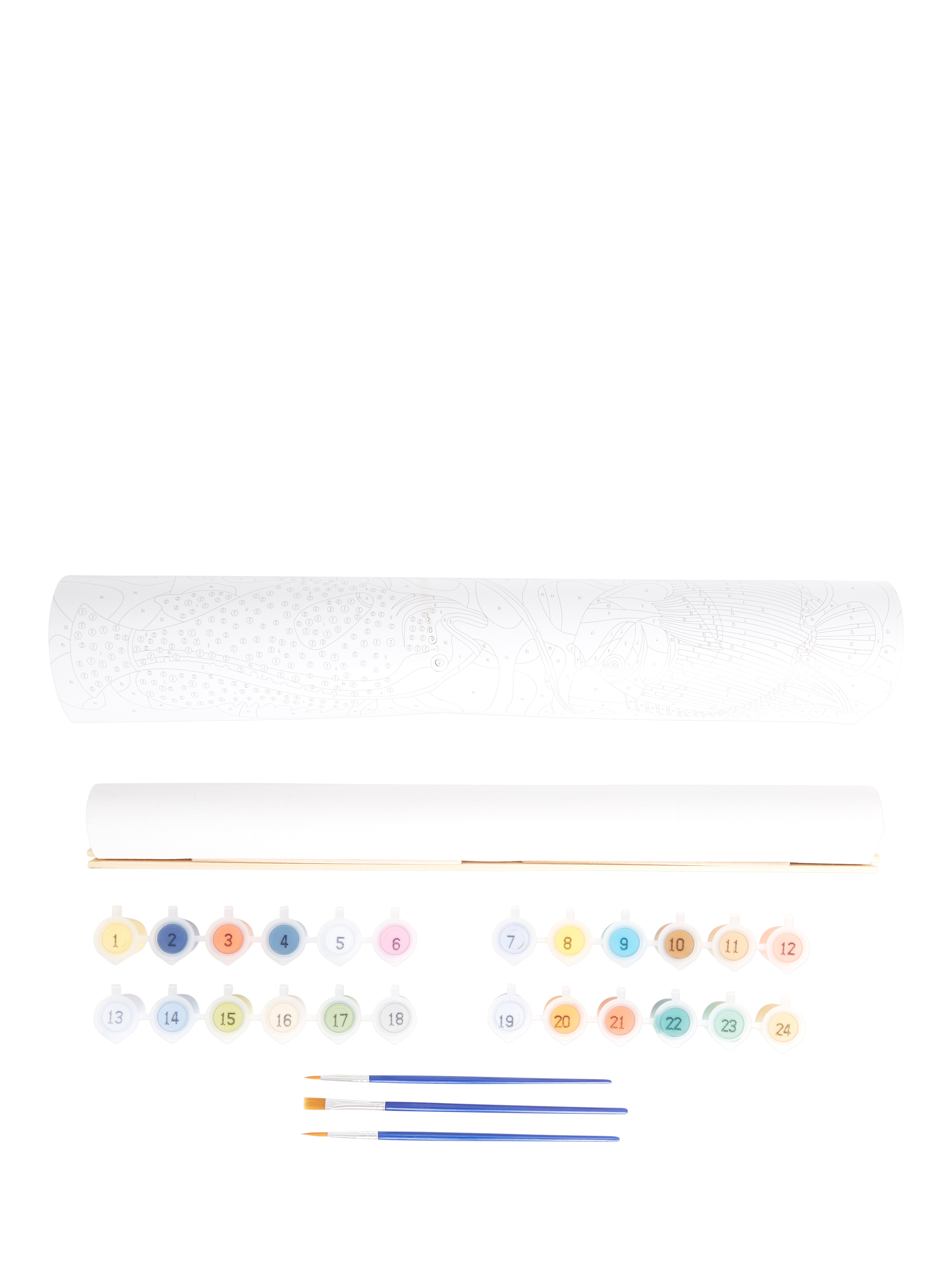 It includes 24 paints, 3 brushes and full colour guide sheet which you can also display in your home.