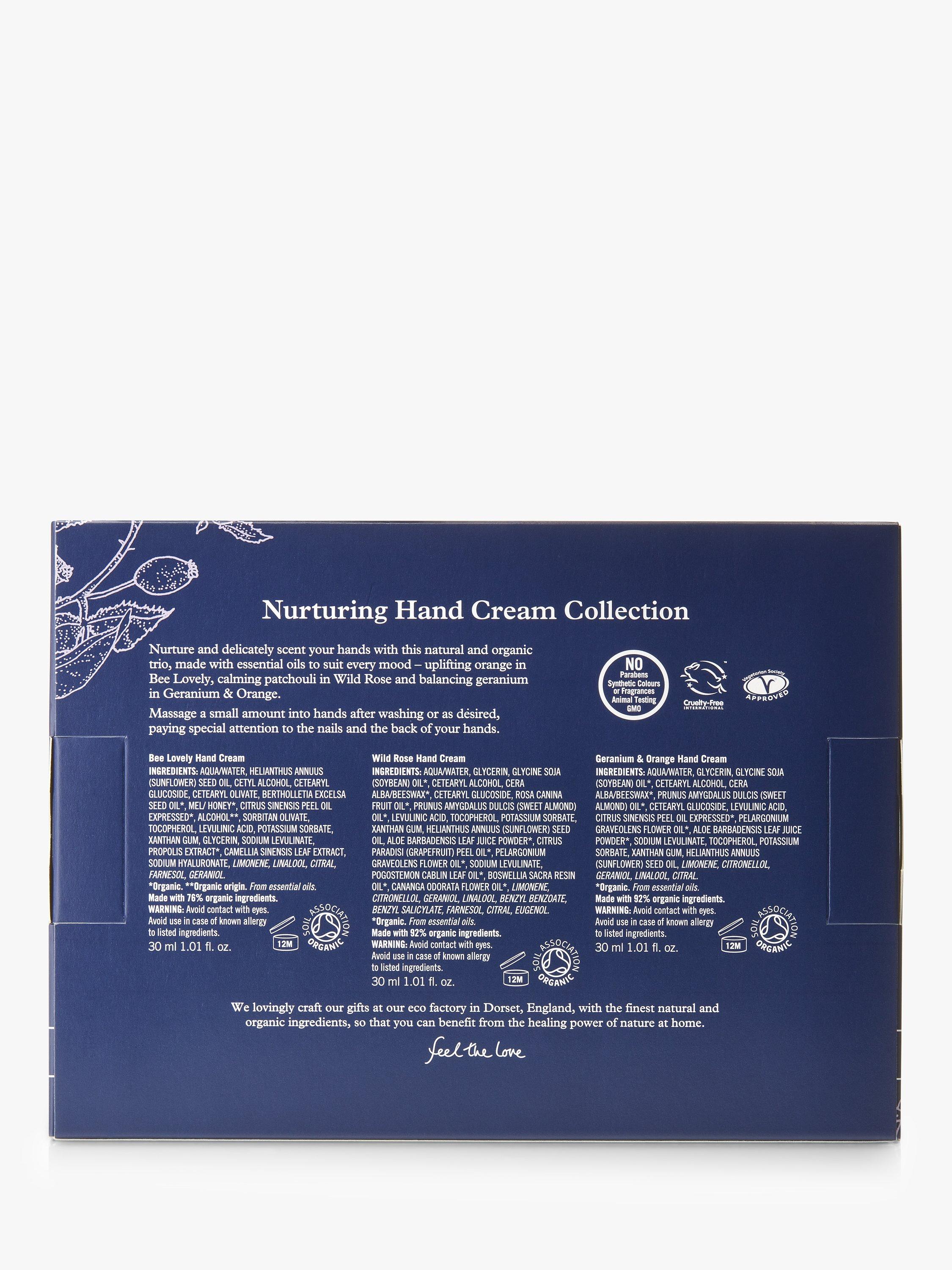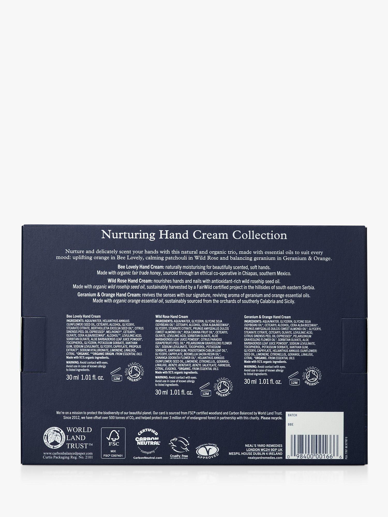 - Wild Rose Hand Cream – with antioxidant wild rosehips and the balancing aroma of organic geranium and patchouli essential oils