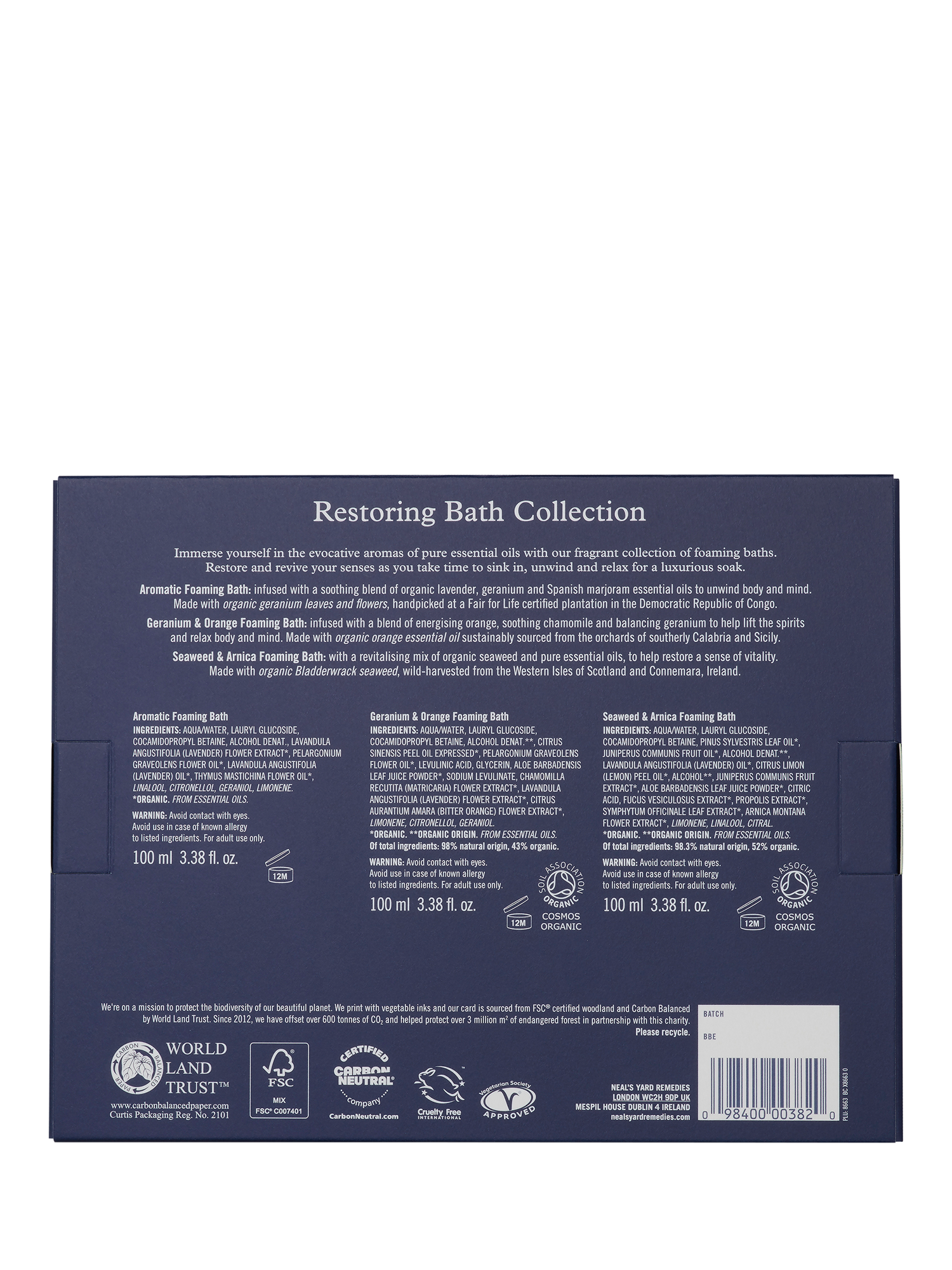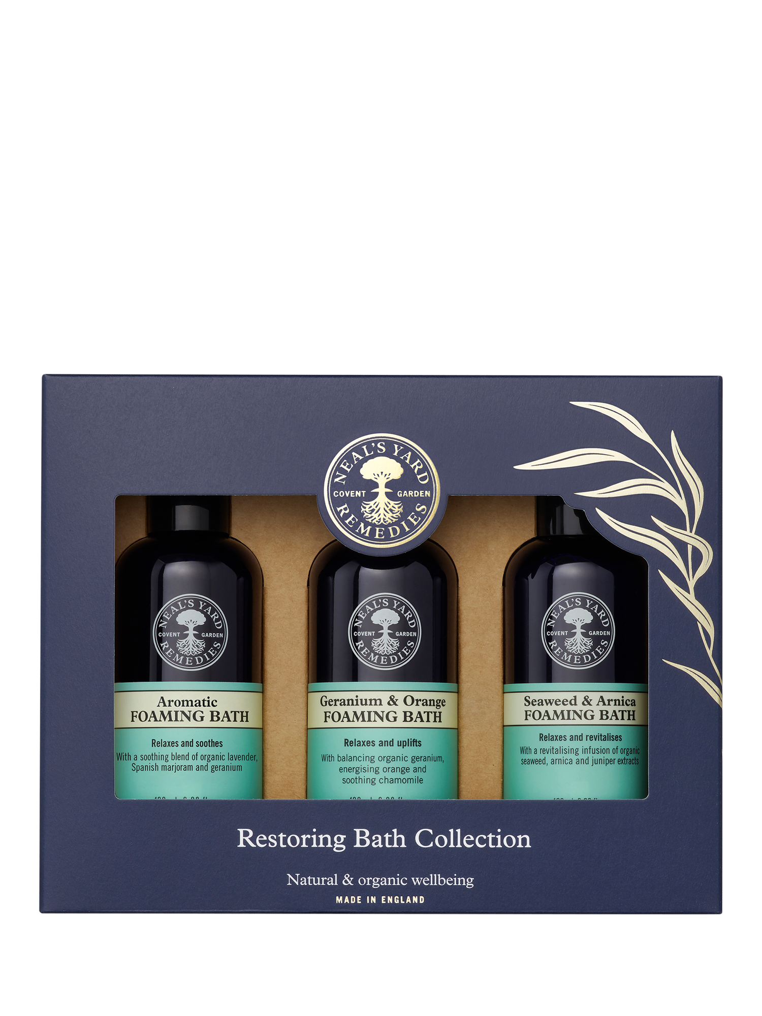 Immerse yourself in the evocative aromas of pure essential oils with this fragrant collection of foaming bath formulas from Neal’s Yard Remedies. Restore and revive your senses as you take time to sink in, unwind and relax for a luxurious soak. Includes Geranium & Orange, Seaweed & Arnica and Aromatic Foaming Baths.