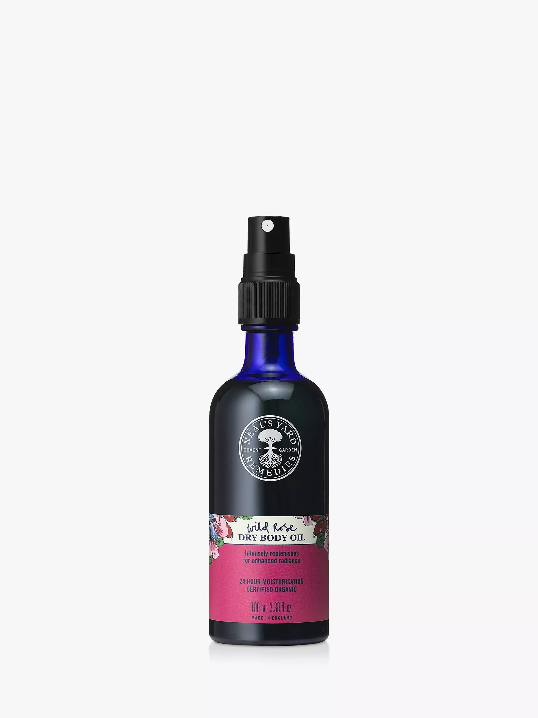 Our certified organic Wild Rose Dry Body Oil with organic wild rosehip seed oil and naturally derived olive leaf extracts instantly replenishes skin for enhanced radiance.