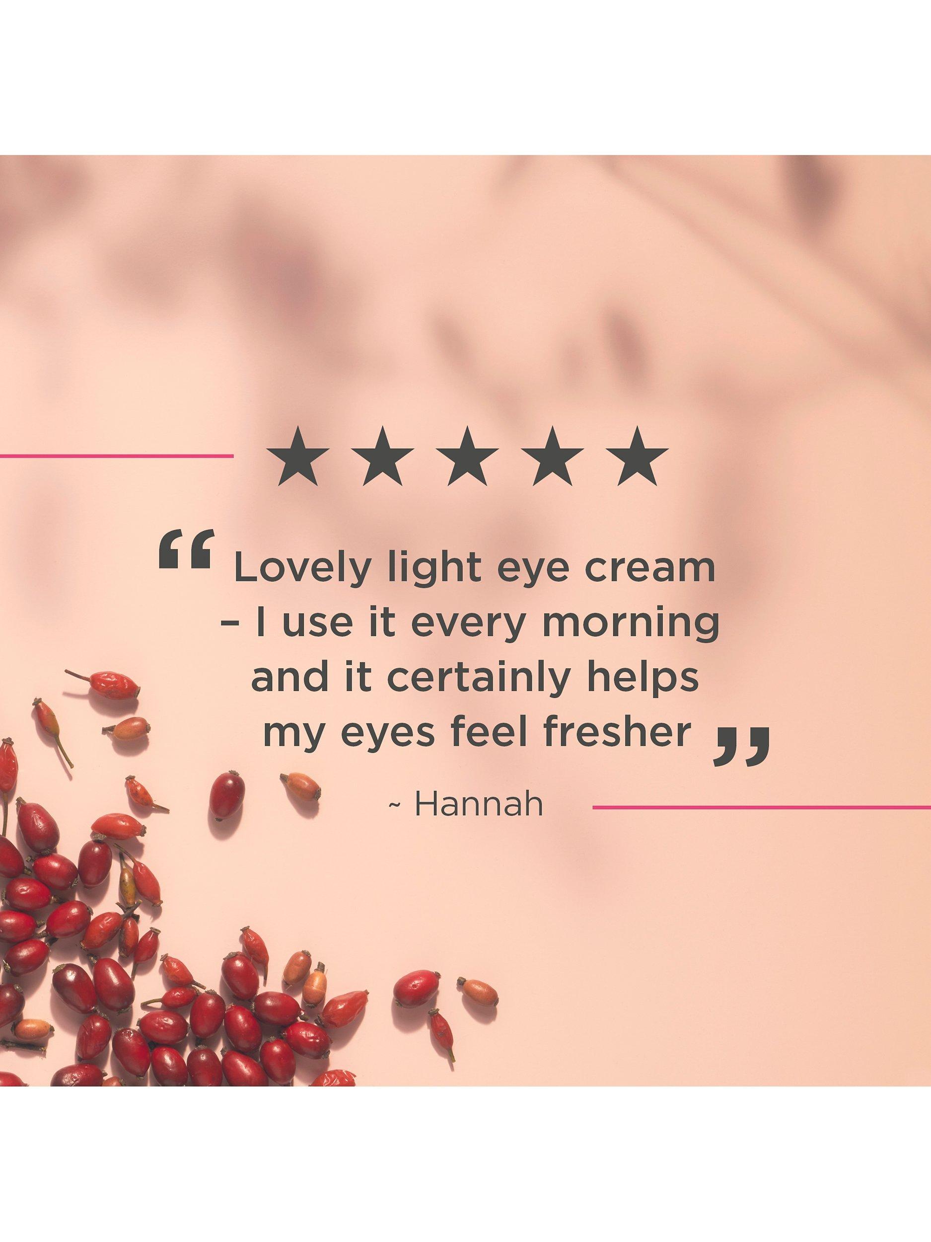 Revive and smooth your eye area with this light-reflecting, certified organic eye brightener with organic wild rosehip seed oil. Lightweight and fast-absorbing, it visibly improves radiance around the eye area instantly. With hyaluronic acid to instantly smooth and plump, and light-reflecting mineral pigments to improve the appearance of dark circles. Soothing green tea caffeine works to energise and revitalise skin, reducing dark circles and puffiness for a brighter, revitalised eye area.