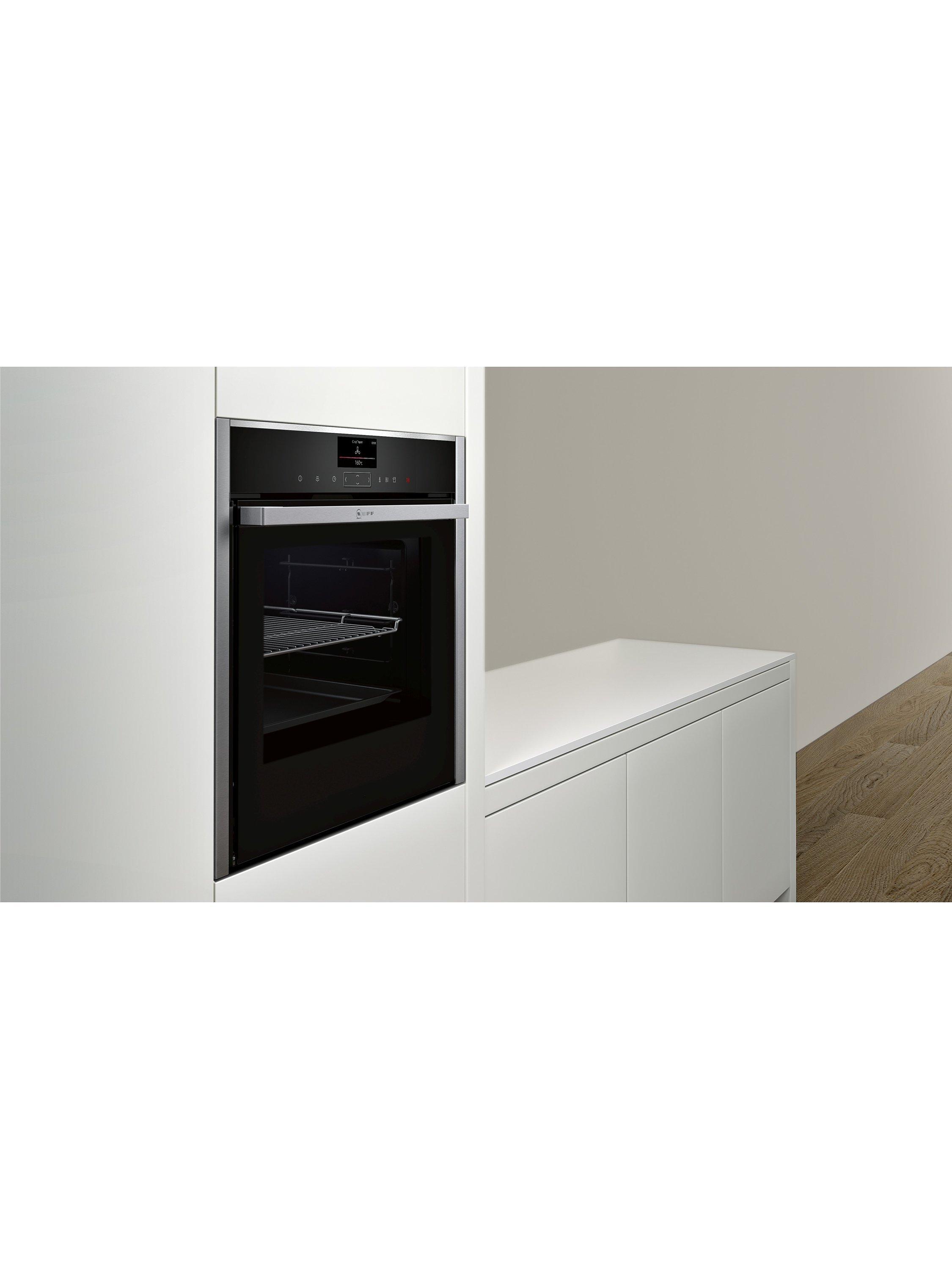 The integrated B57VS24H0B single oven from Neff comes with a steam function and tech innovations to aid your cooking and oven cleaning.