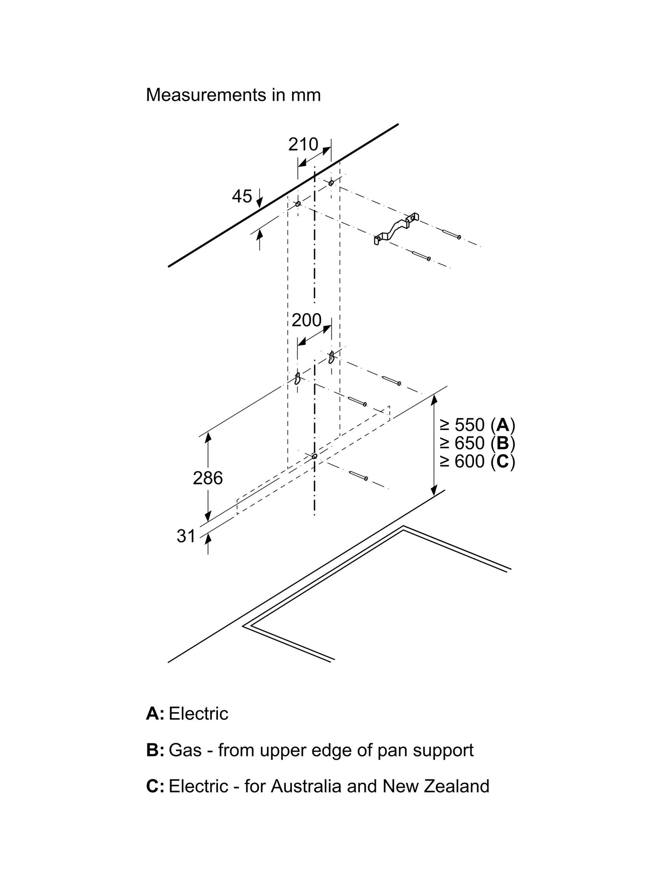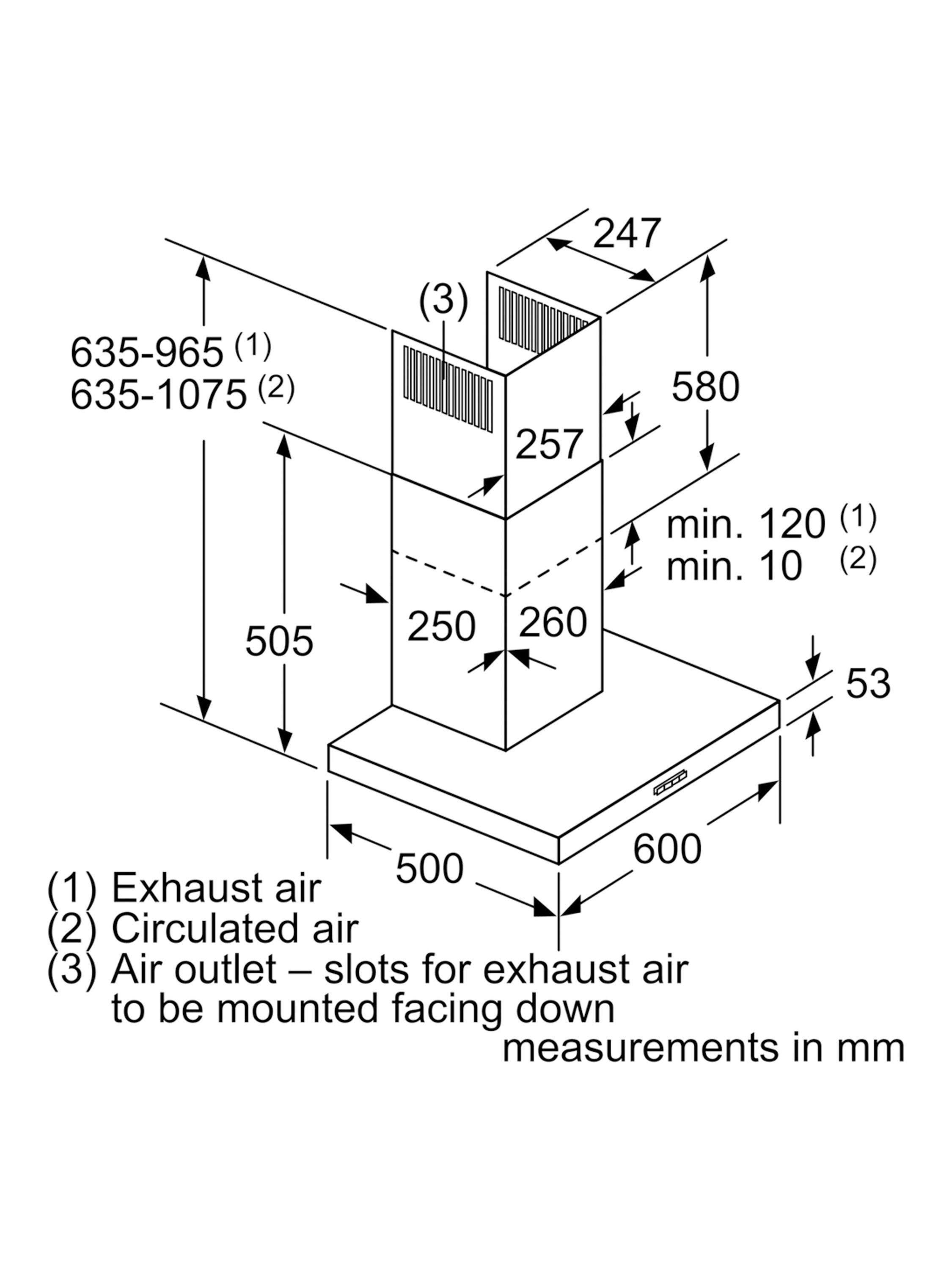 (HxWxD) 63.5 x 60 x 50cmMinimum distance between hob & cooker hood required