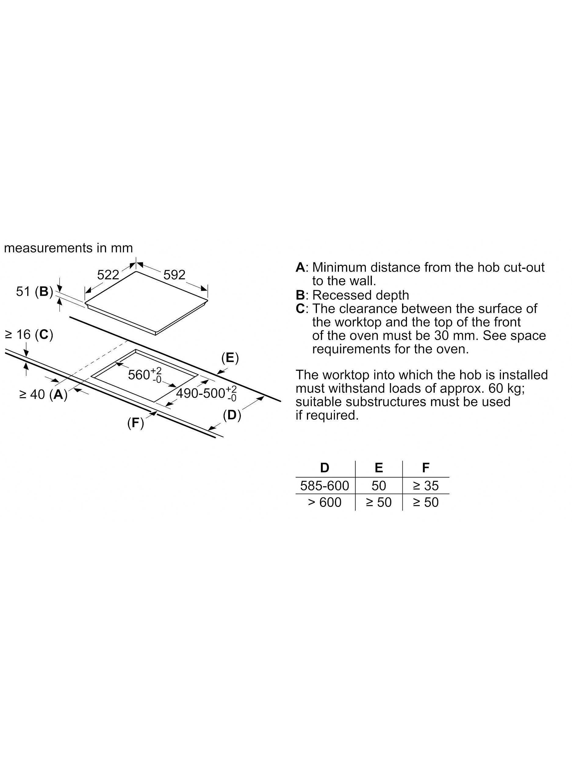H5.1 x W56-56.2 x D49-50cmMinimum distance between hob & cooker hood required
