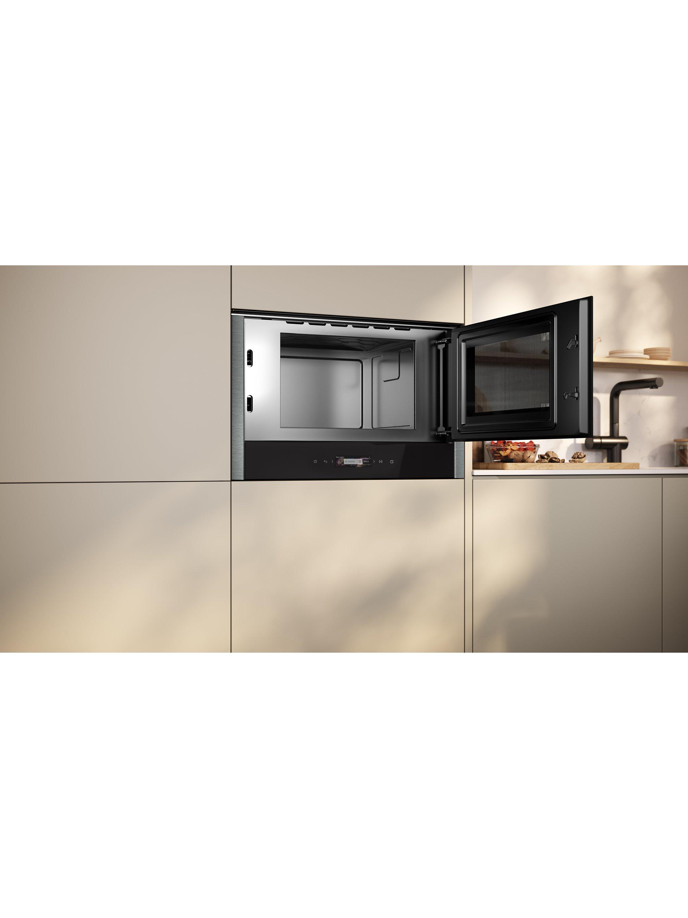Ideal for upper cabinets, this built-in microwave from Neff features a full touch TFT display for easy and intuitive operation, with easy pre-selected programmes for a wide variety of dishes. Its inverter technology heats food gradually and evenly, and it’s easily cleaned within just a few minutes.