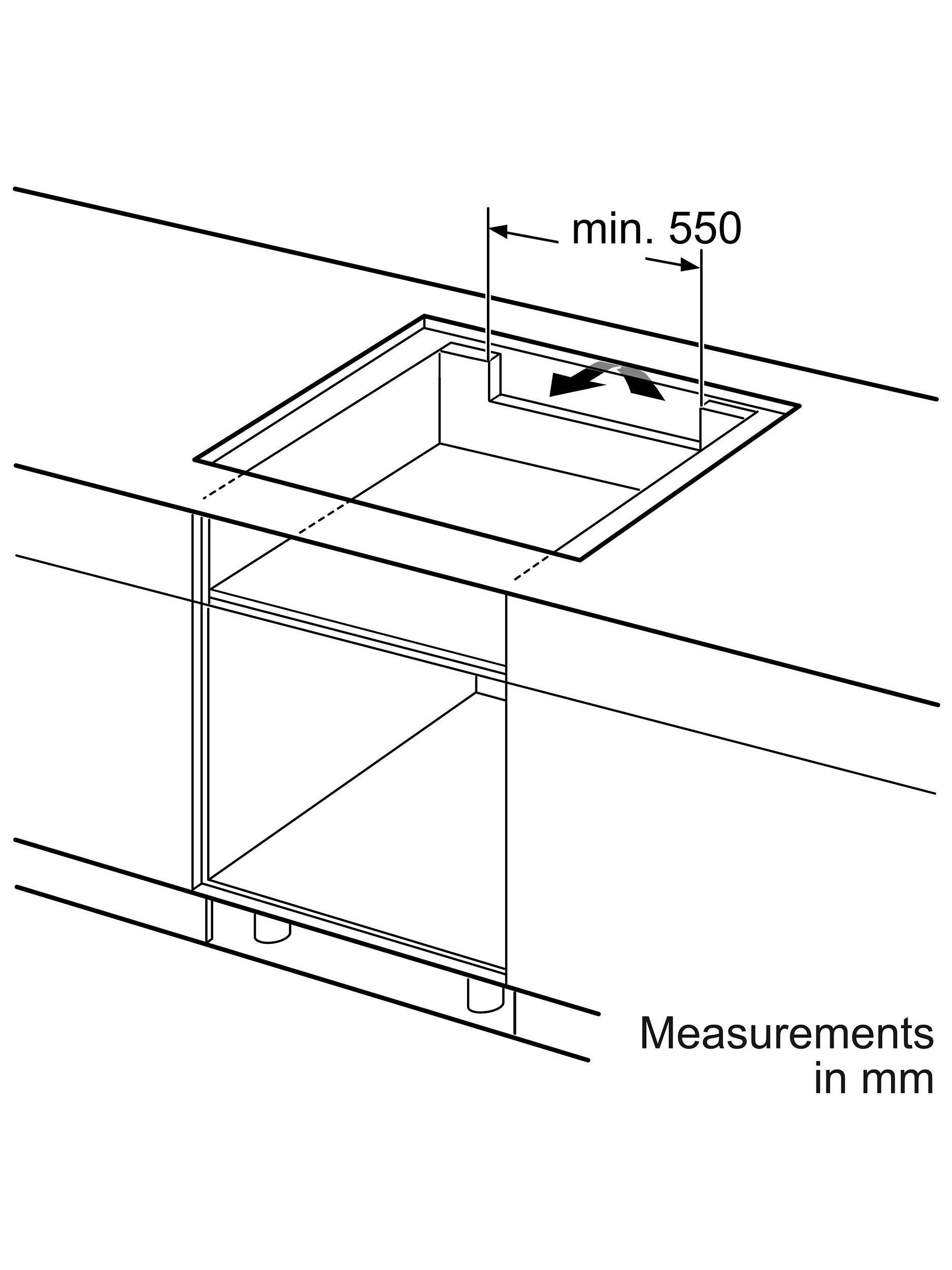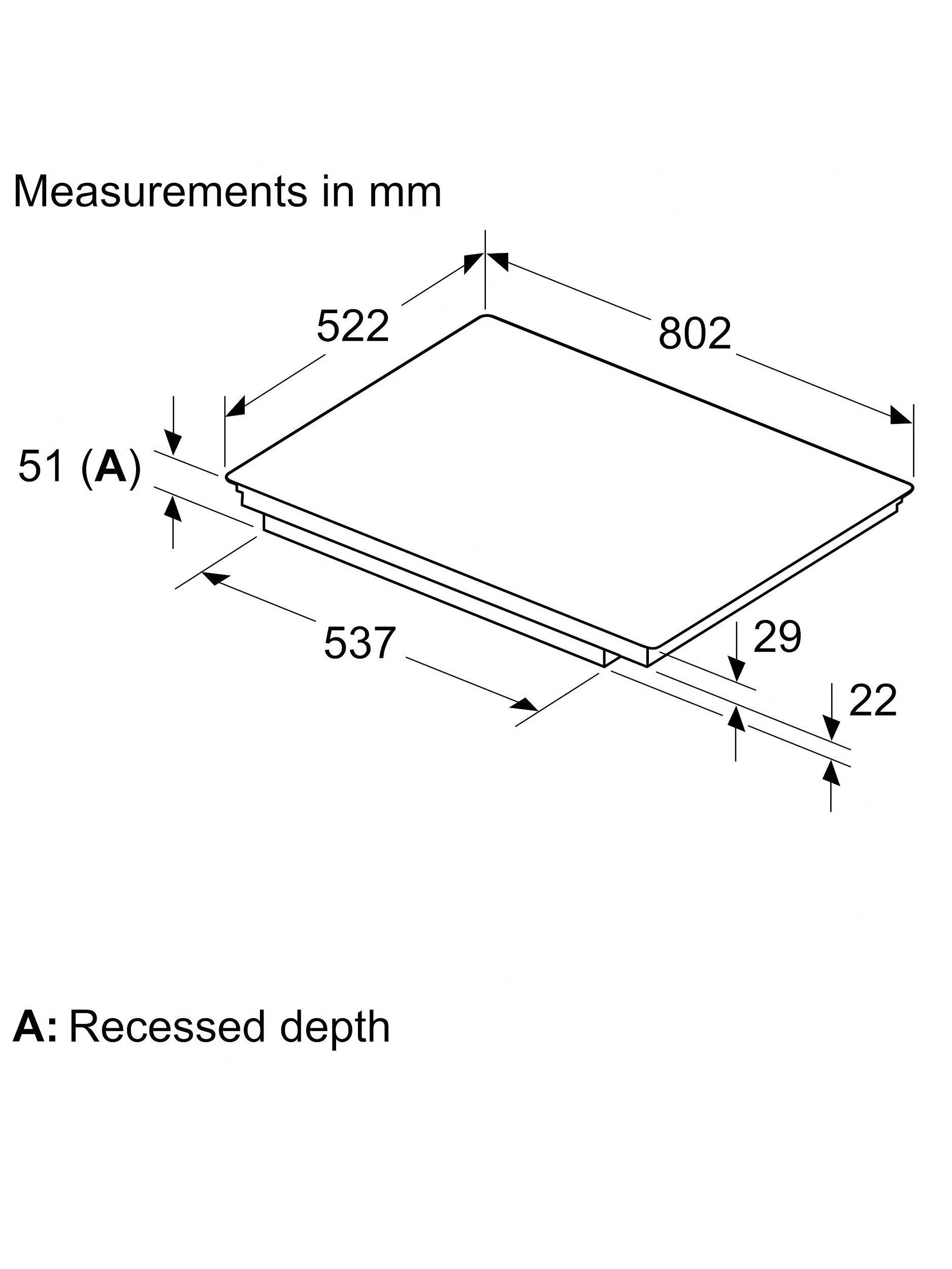 H51 x W750 x D490 - 500 mmMinimum distance between hob & cooker hood required