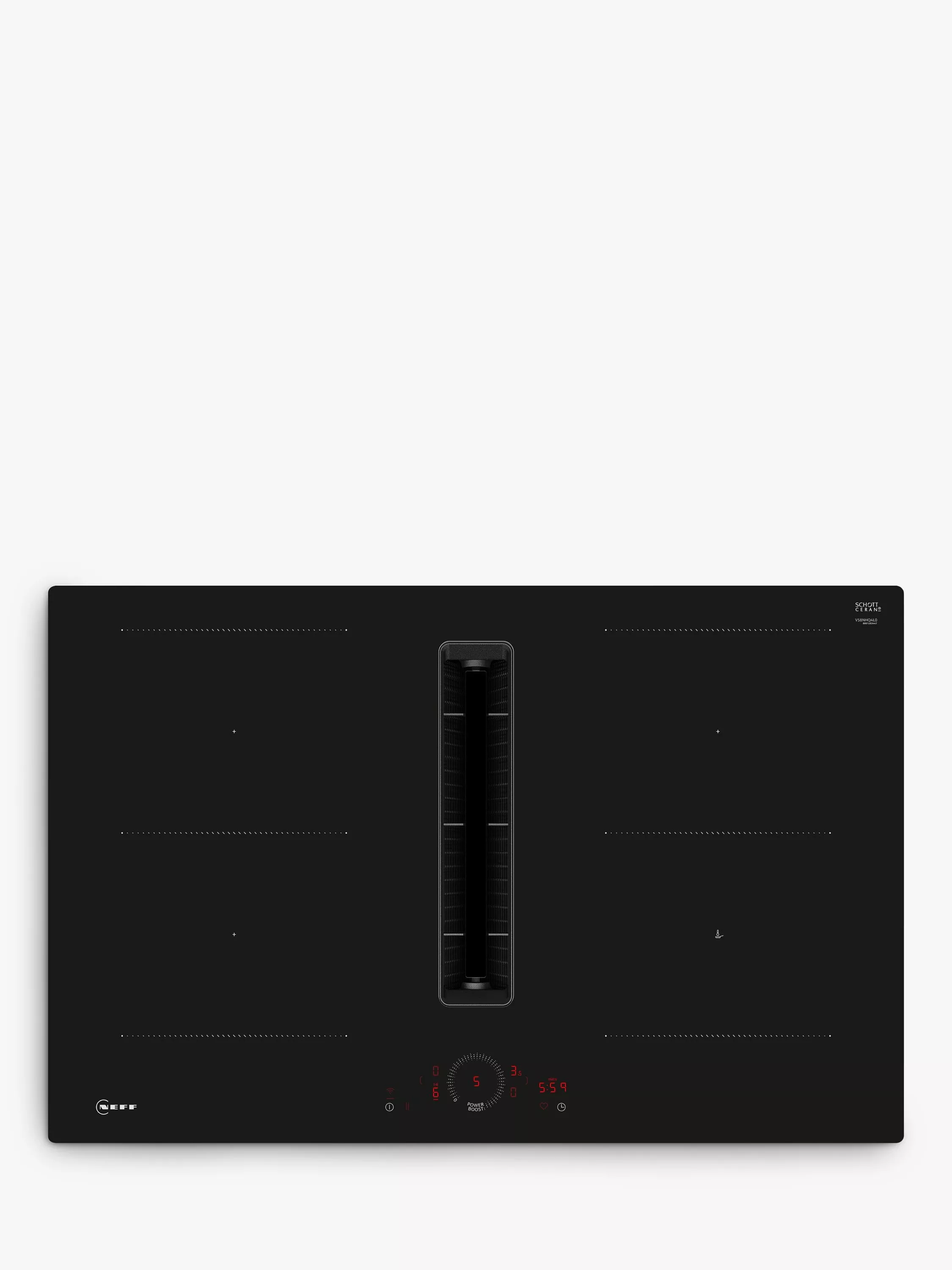 This induction hob with integrated ventilation combines two appliances in one for a clear view while cooking.
