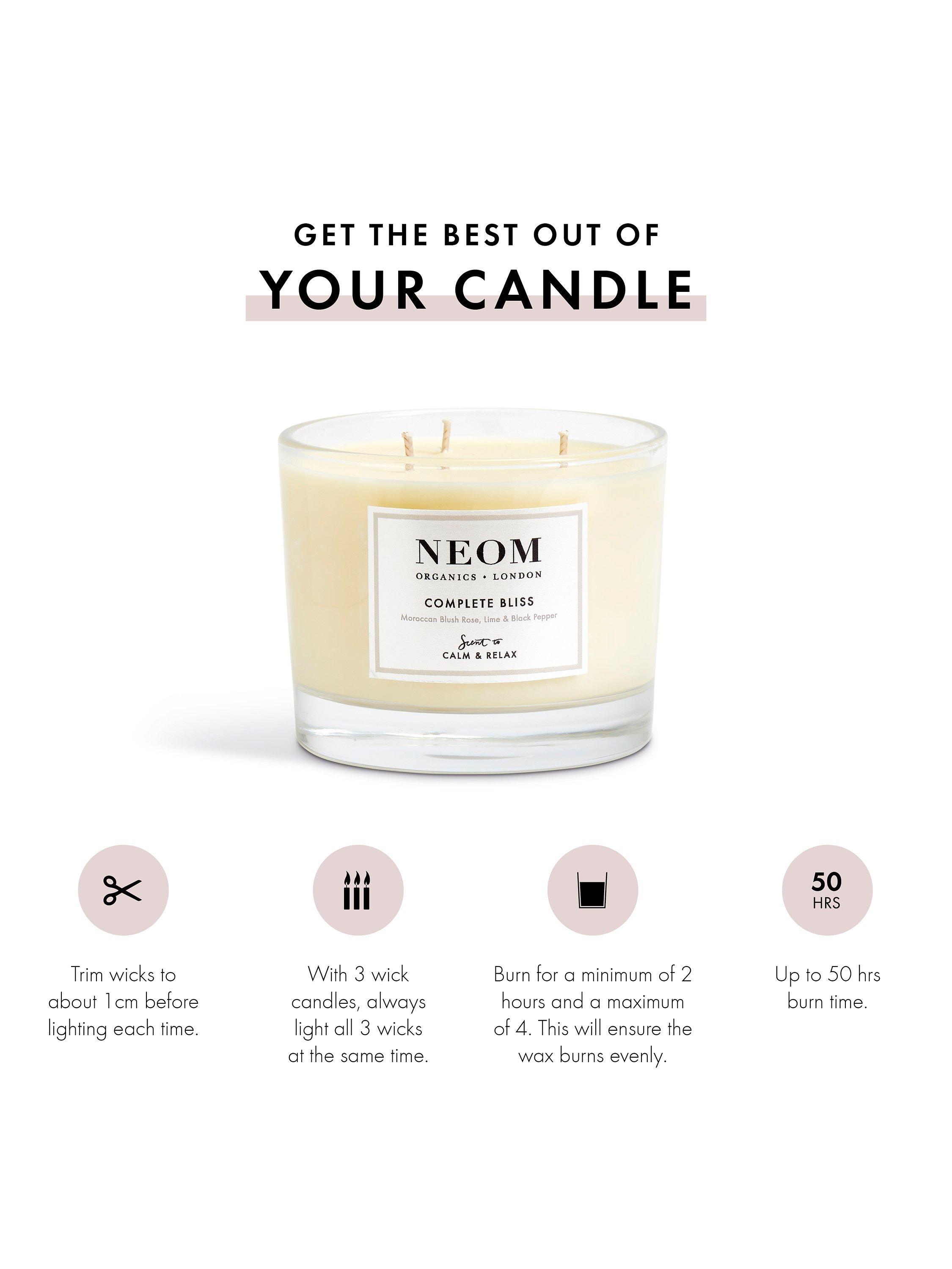 Creating calm and developing your own ‘calming toolkit’ is synonymous with living a peaceful life. The Neom Scent To Calm & Relax™ range has been specially formulated with natural fragrance which not only smells wonderful but also has a calming effect on the mind and body. Our Neom Complete Bliss™ fragrance is a complex blend of 17 of the purest possible essential oils including Moroccan blush rose, lime & black pepper, all chosen to help ease tension and calm and relax body and mind.