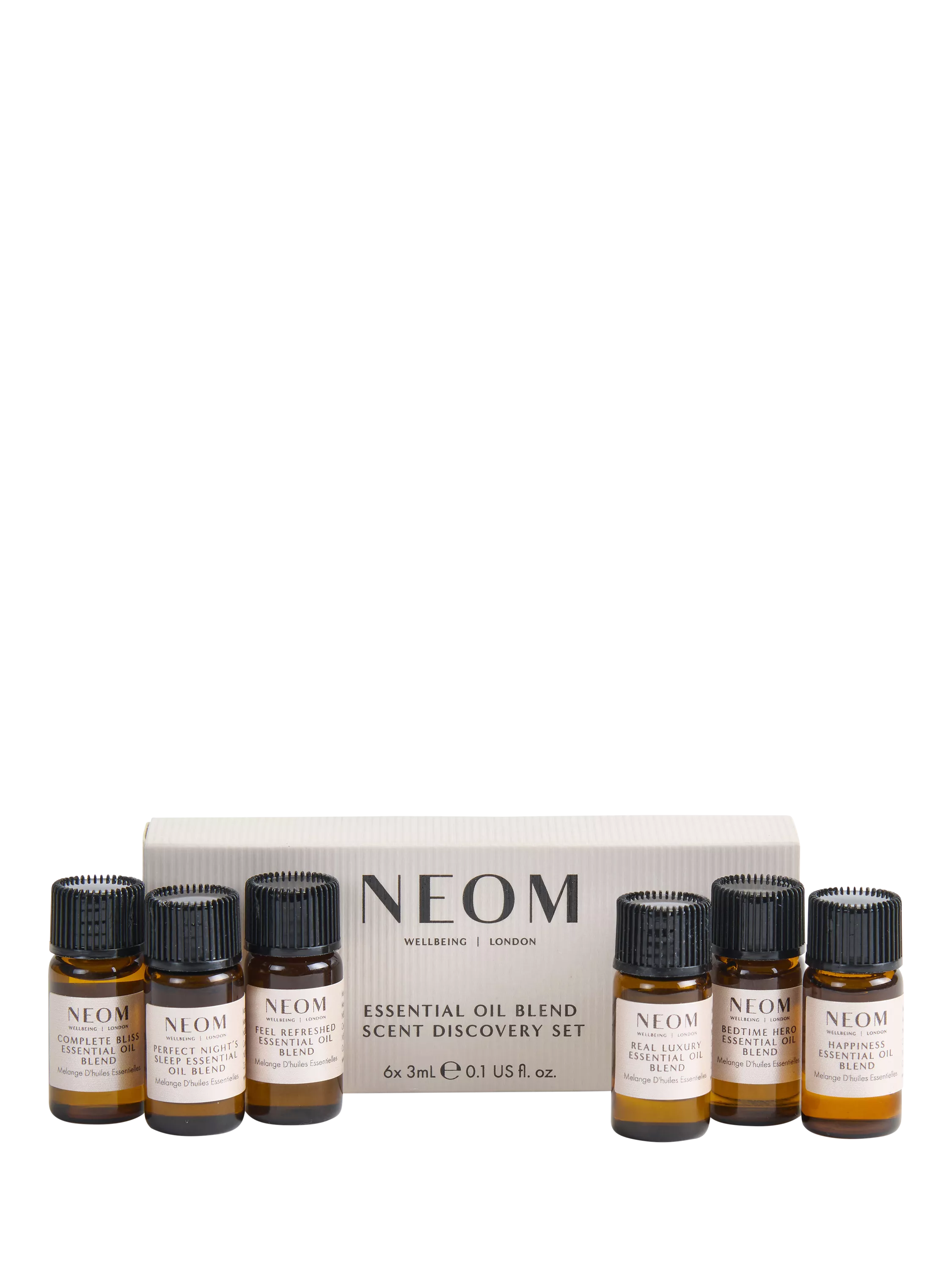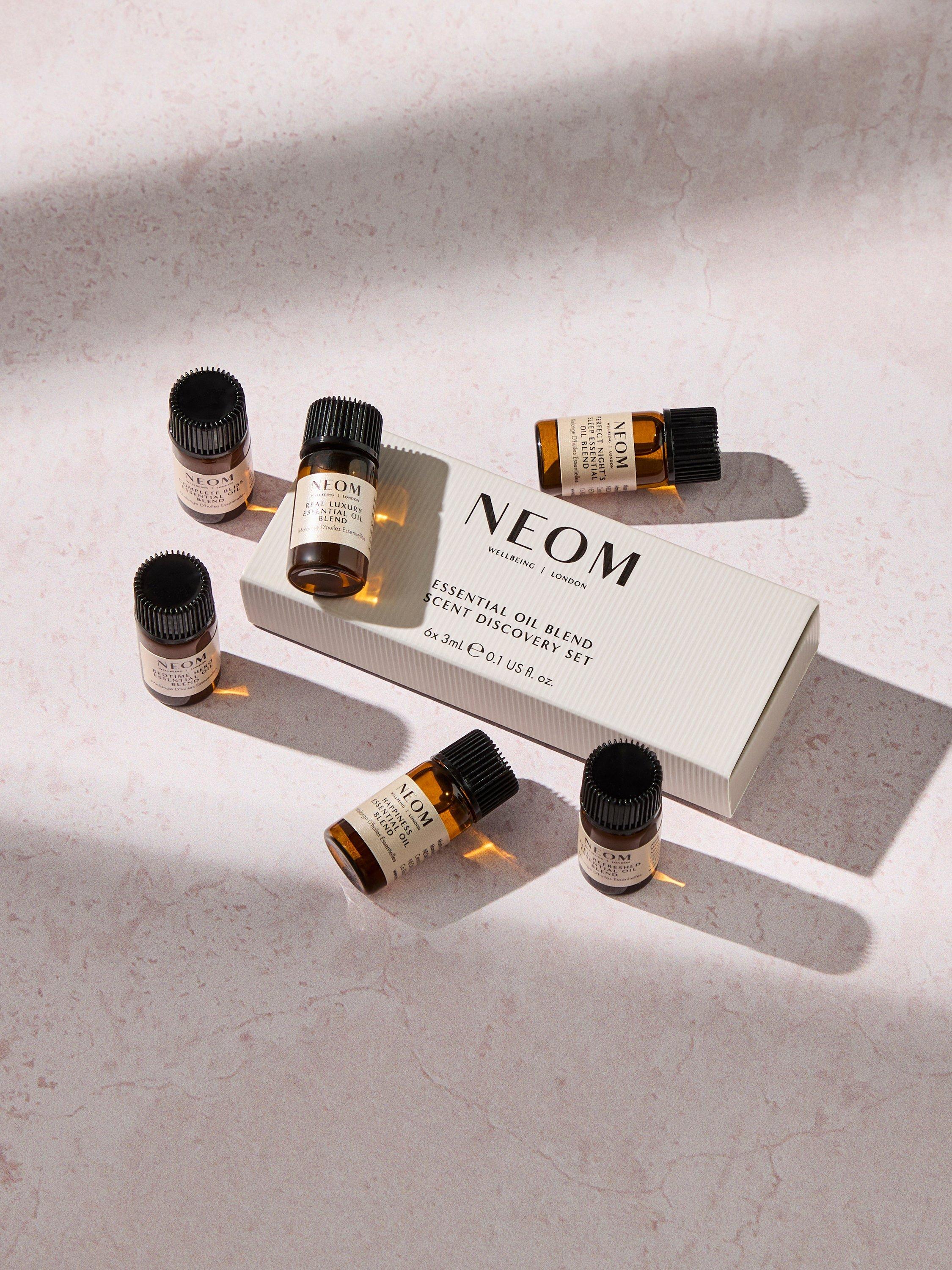 Sleep? De-stress? Energy? Mood Boost? All of the above? This Essential Oil Blend Scent Discovery Set contains six of NEOM's 100% natural essential oil blends so you can discover your well-being needs and switch your scent to suit your mood each and every day.