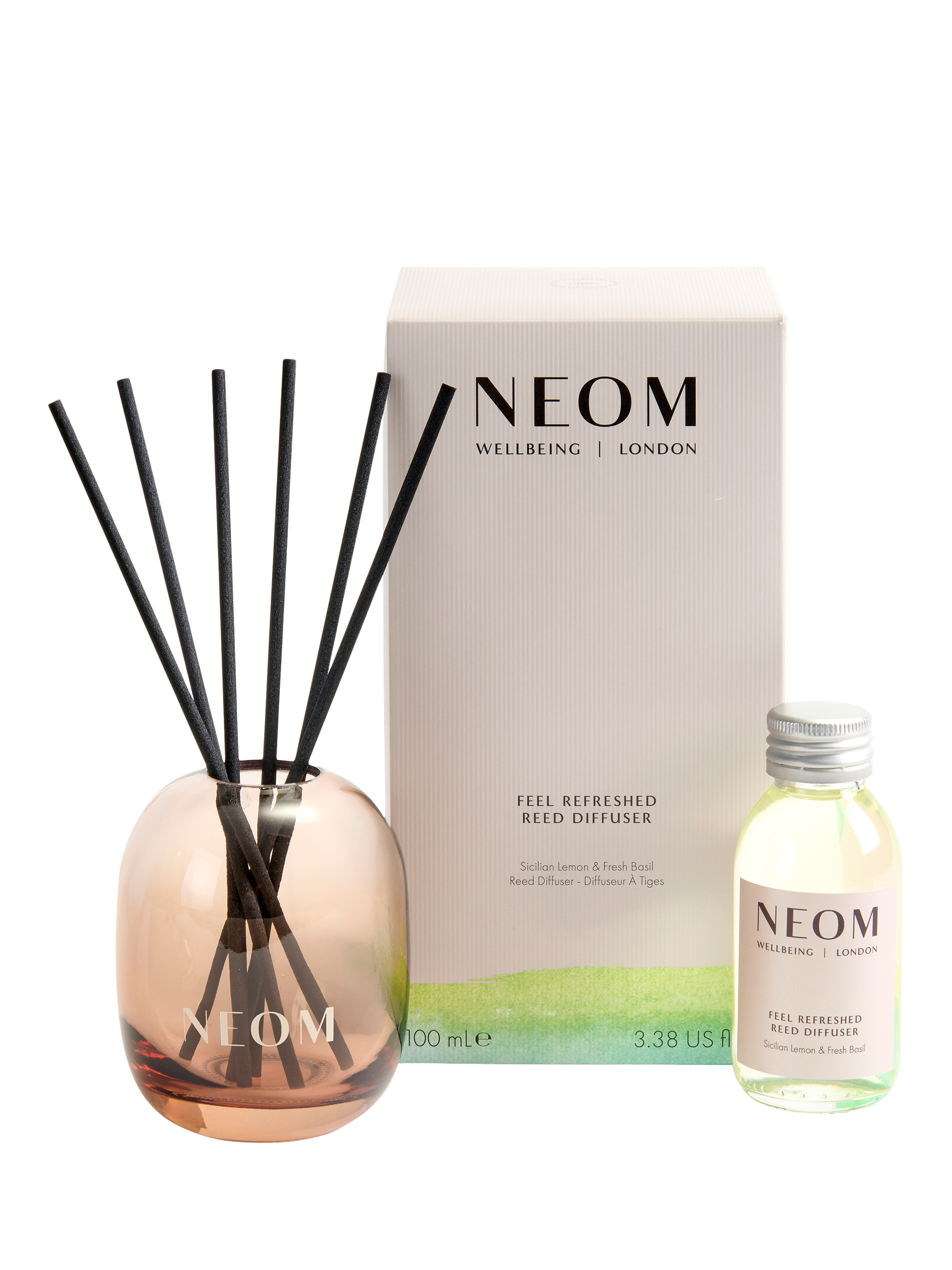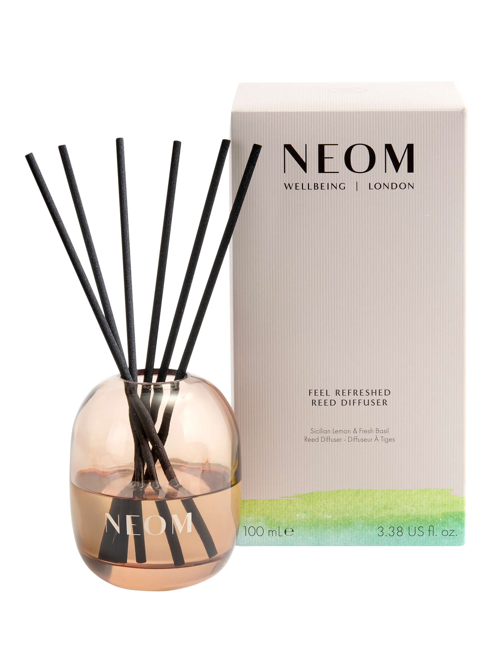NEOM Feel Refreshed fragrance is a complex blend of 17 pure essential oils, including Sicilian lemon and fresh basil, all chosen to help stimulate a tired mind and encourage clear thinking. For unlimited moments of wellbeing, reuse and refill your beautiful glass vessel with any NEOM fragrance.