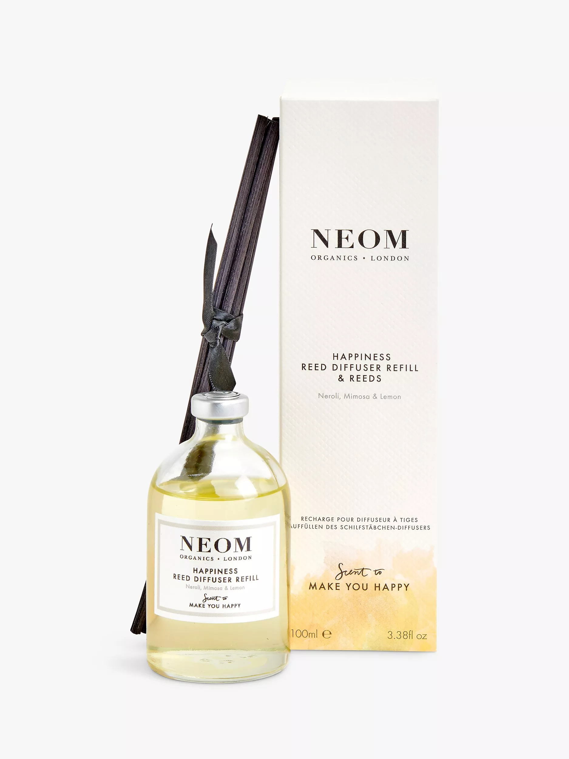 Whatever your version of happiness is, we believe it starts with a positive state of mind. The Neom Scent To Make You Happy™ range is specially formulated with natural fragrance which not only smells wonderful but also has an uplifting effect on the mind and body. Our Neom Happiness™ fragrance is a complex blend of 7 of the purest possible essential oils including neroli, mimosa & lemon, all expertly blended to help you balance your emotions and feel more positive.