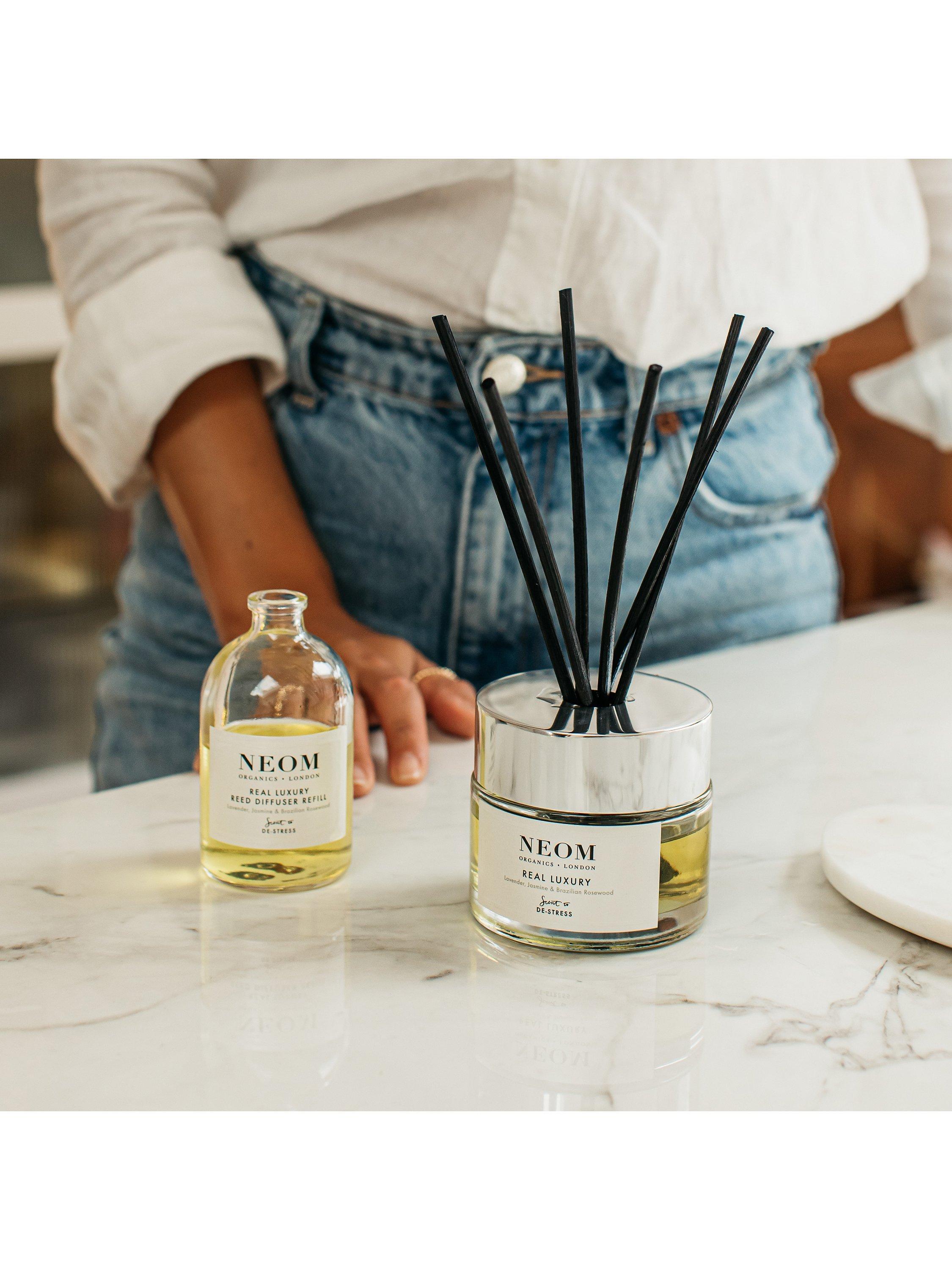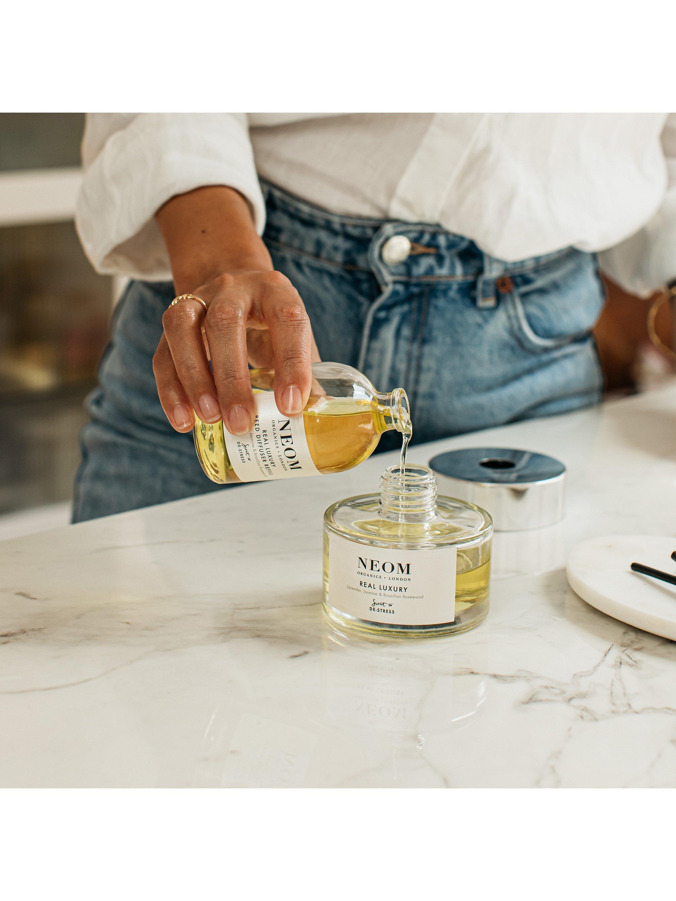 Remove the cap and carefully pour the contents into your existing Neom reed diffuser bottle before inserting the reeds. Allow 48 hours for the fragrance to fill the room with scent. For a stronger scent use all of the reeds and turn daily. For a more subtle scent use fewer reeds and turn less often.