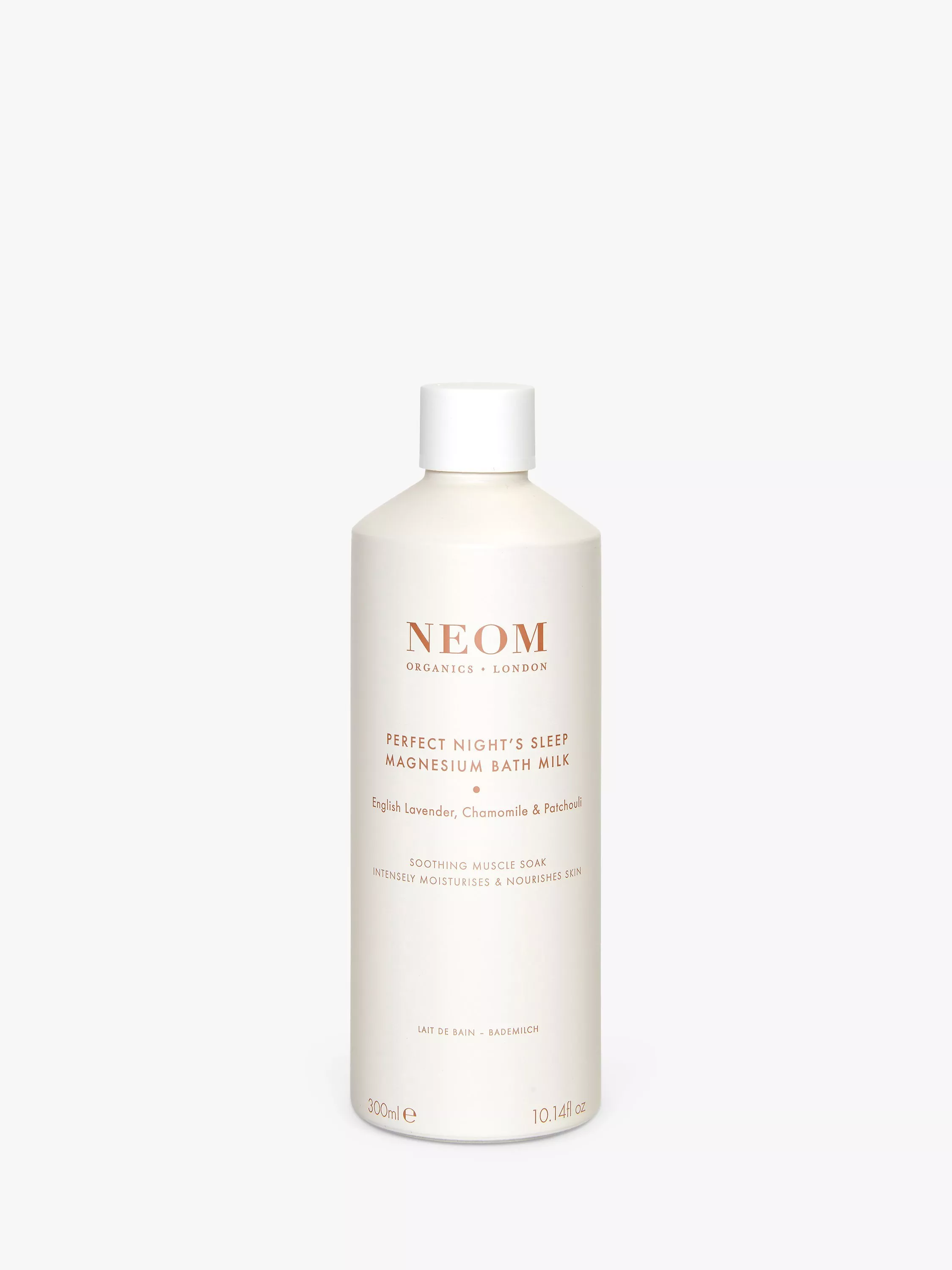 Sink into this magnesium-powered, milky bath soak to help remineralise skin and soothe muscles and tired limbs. Blended with a trio of skin-restoring organic oils and antioxidant-rich Vitamin E, this luxurious bath milk intensely nourishes and moisturises skin, leaving you with a veil of silky-smooth softness. Allow the feeling of tranquillity to wash over you as your bathroom fills with the 100% natural relaxing fragrance of English lavender, chamomile and patchouli. And breathe.