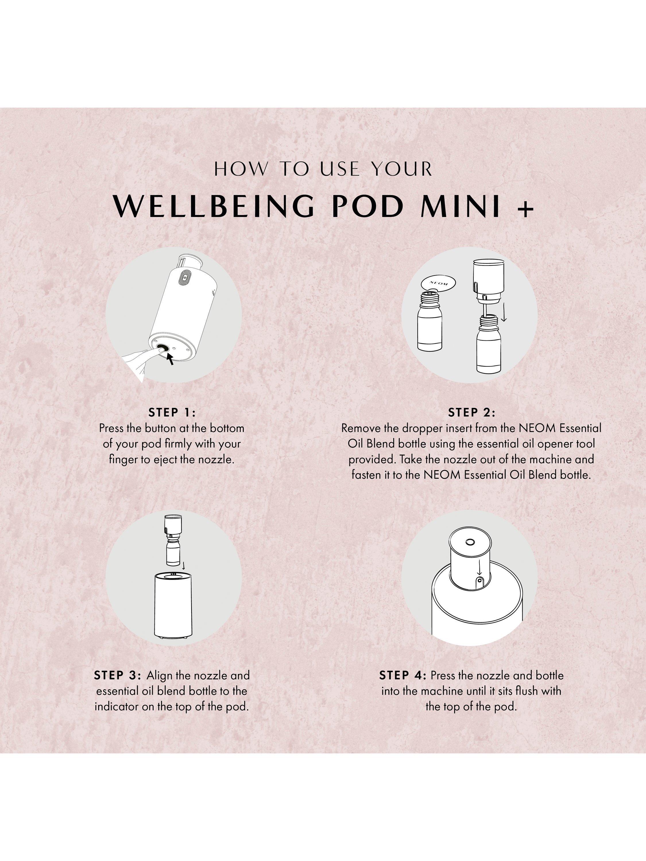 Designed to scent little spaces (think car, home office, bathrooms…) in minutes. Whatever your wellbeing need, the NEOM Wellbeing Pod Mini+ works at the touch of a button, helping you achieve better sleep, less stress, a mood boost or more energy through our 100% natural Essential Oil Blends.