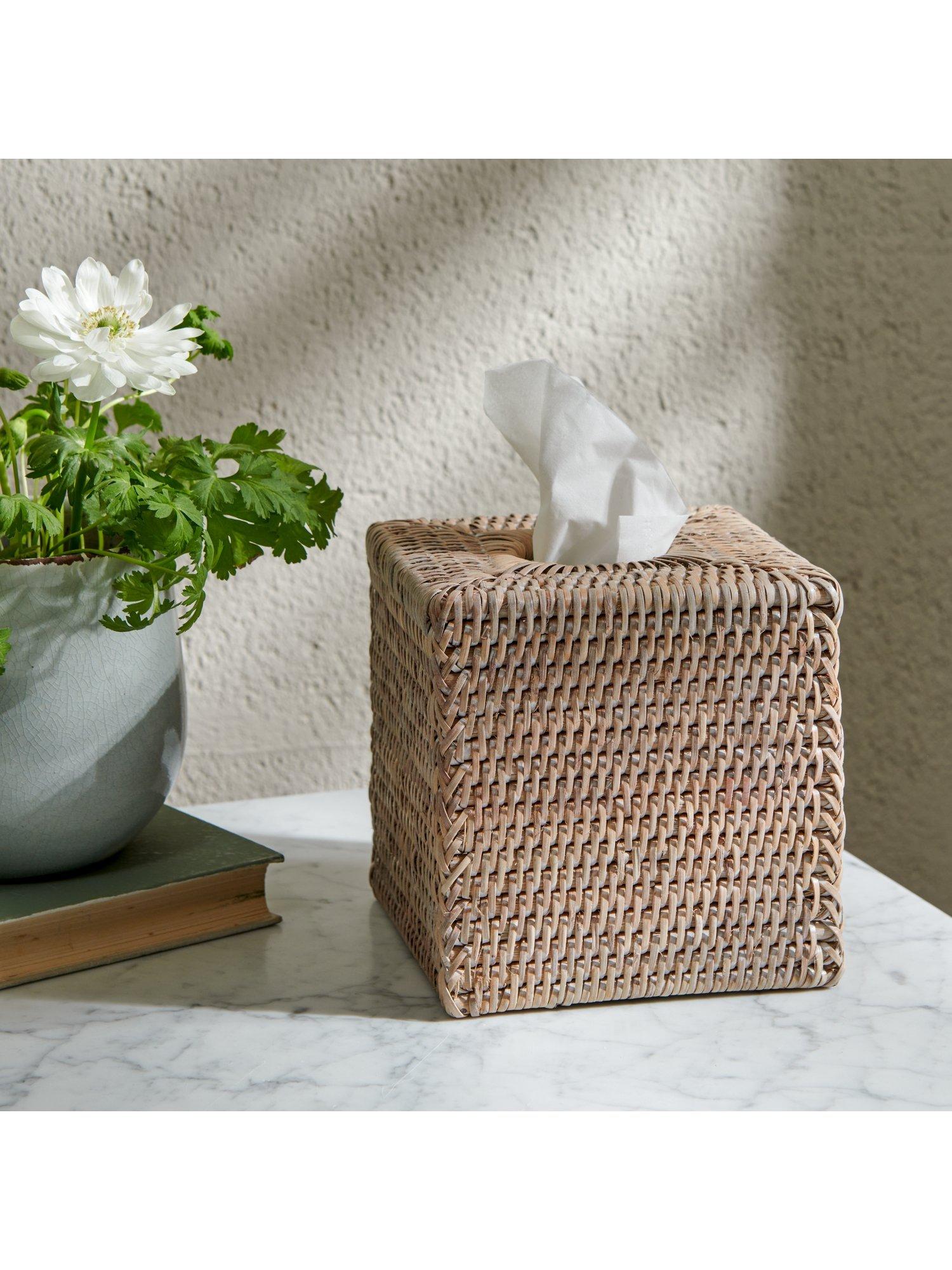 It's always helpful to have a box of tissues at hand. And now every cardboard tissue box —square and rectangular — has its own washed-rattan disguise that's weighty enough that when you pull out a tissue, the Ashcroft cover doesn't budge. This handwoven design is an ideal size to fit onto a desk, console or a kitchen island without taking up too much space.