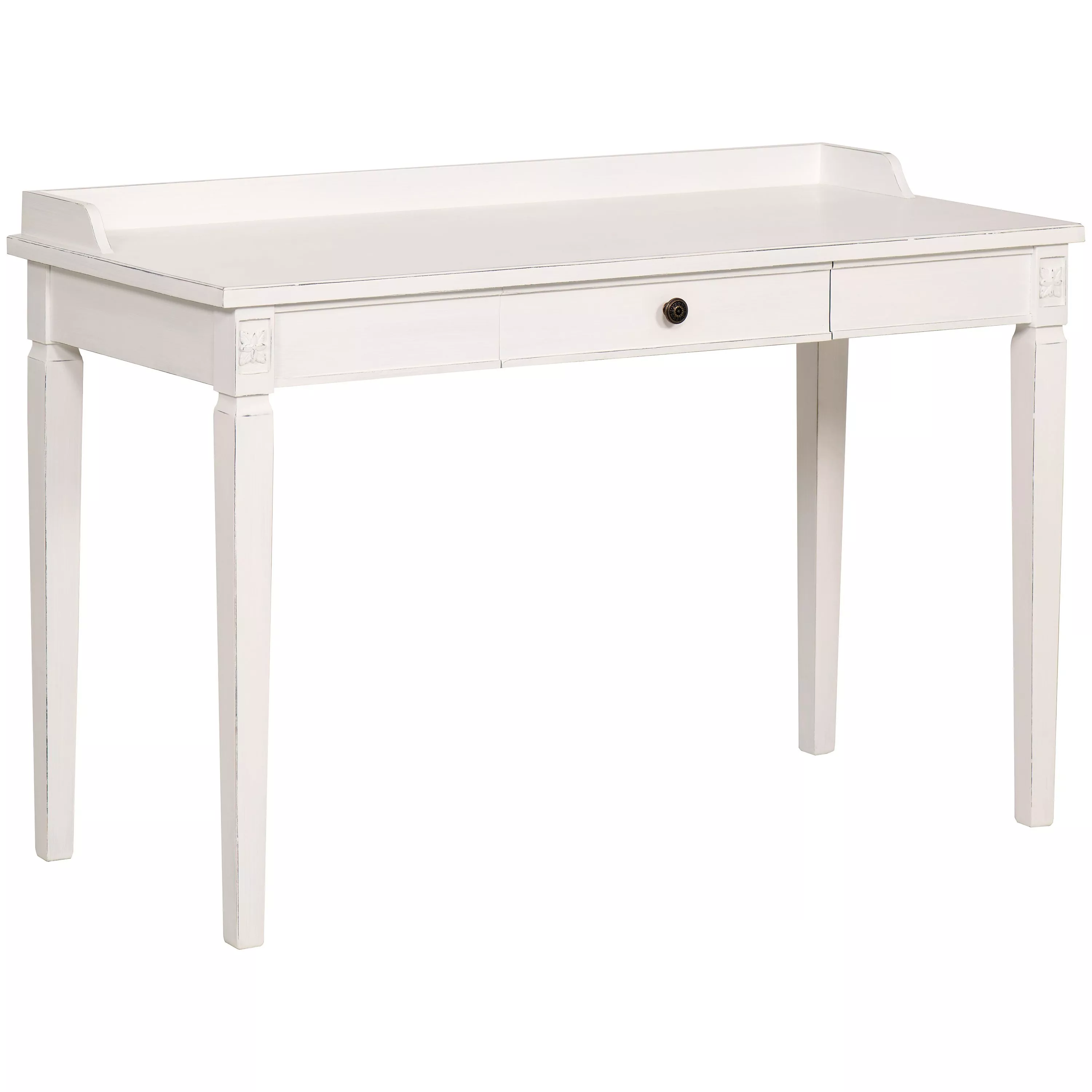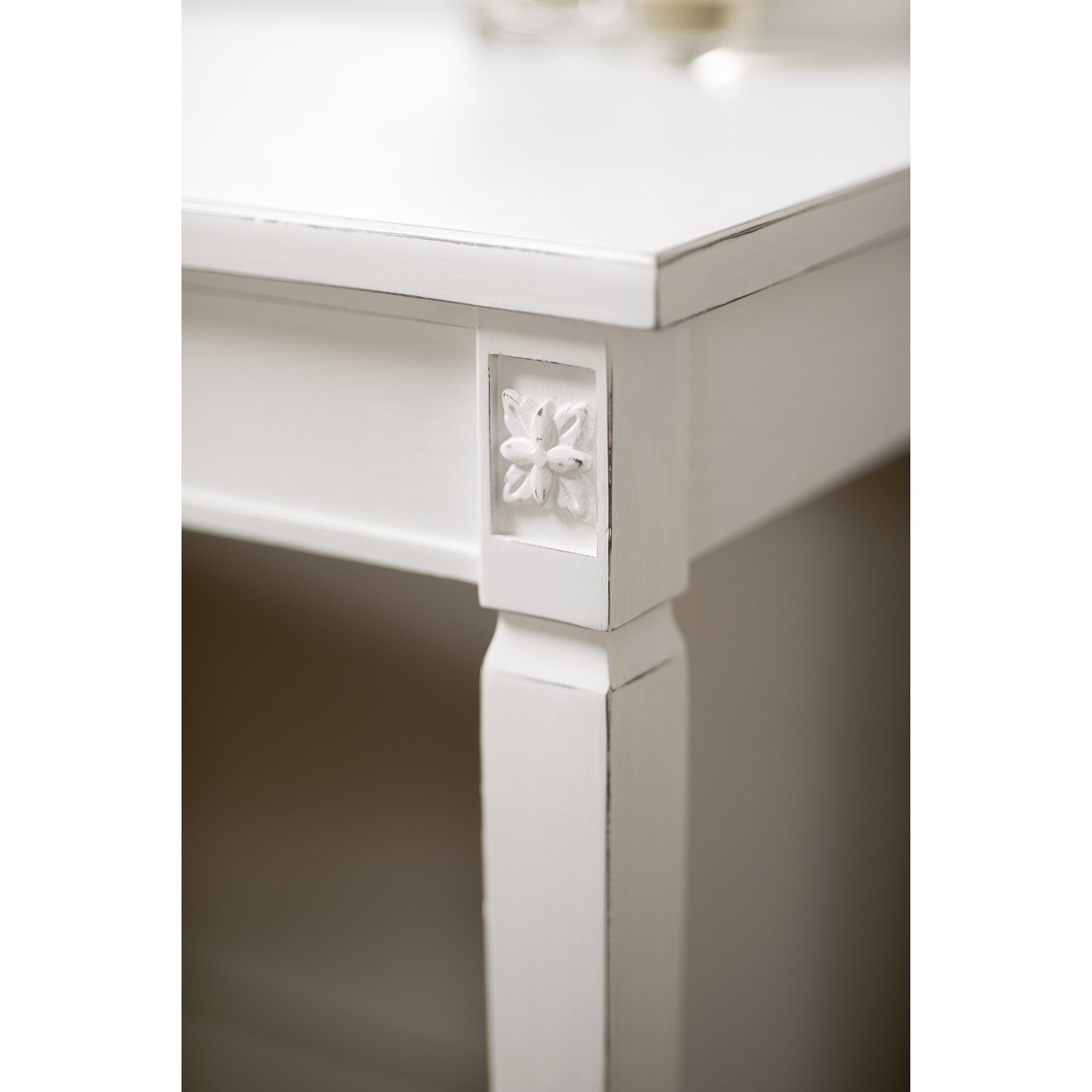 Create your very own vanity station with this beautifully crafted tulip wood dressing table. Featuring a single drawer with brass-tone handle; delicate hand-carved detailing; and a slim silhouette, it provides the perfect pairing of style and function.