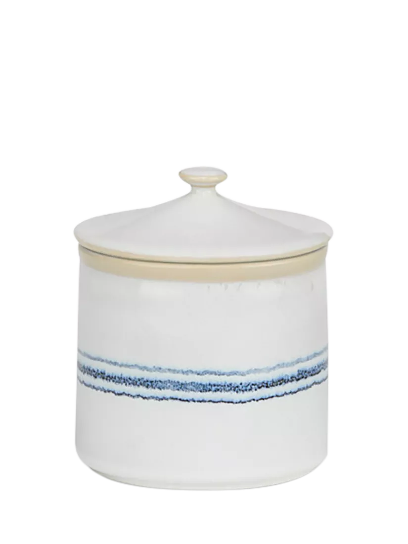 The Melbury collection is crafted from weighty, durable stoneware in Portugal. Hand-painted by skilled artisans with a rustic navy stripe, each piece brings unique artisanal charm to your kitchen. This display-worthy storage jar is ideal for storing tea, coffee and sugar or other household essentials.