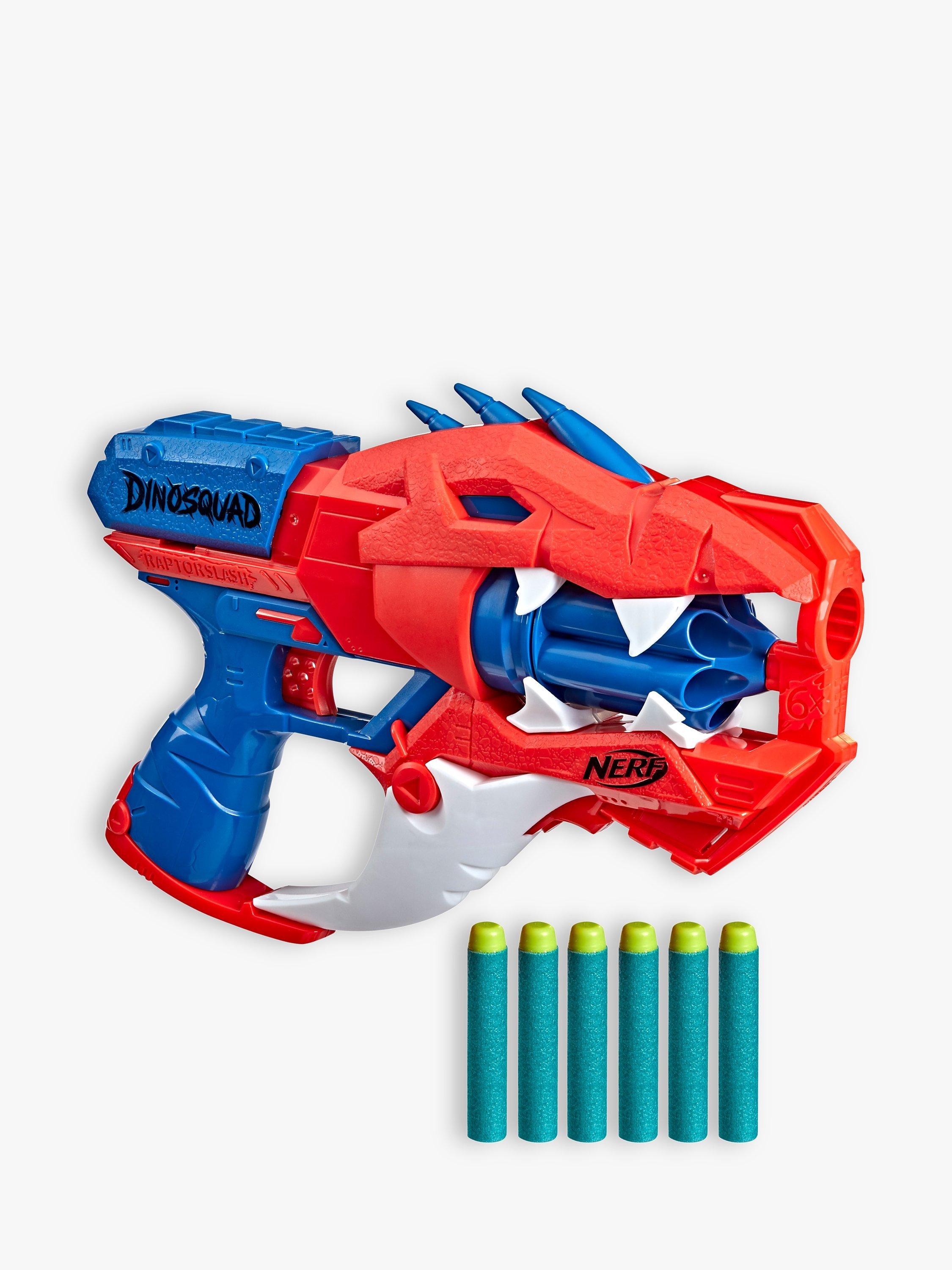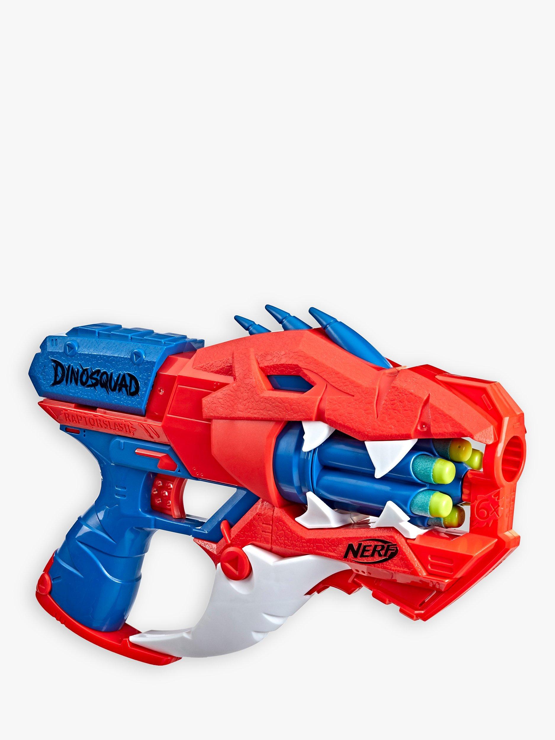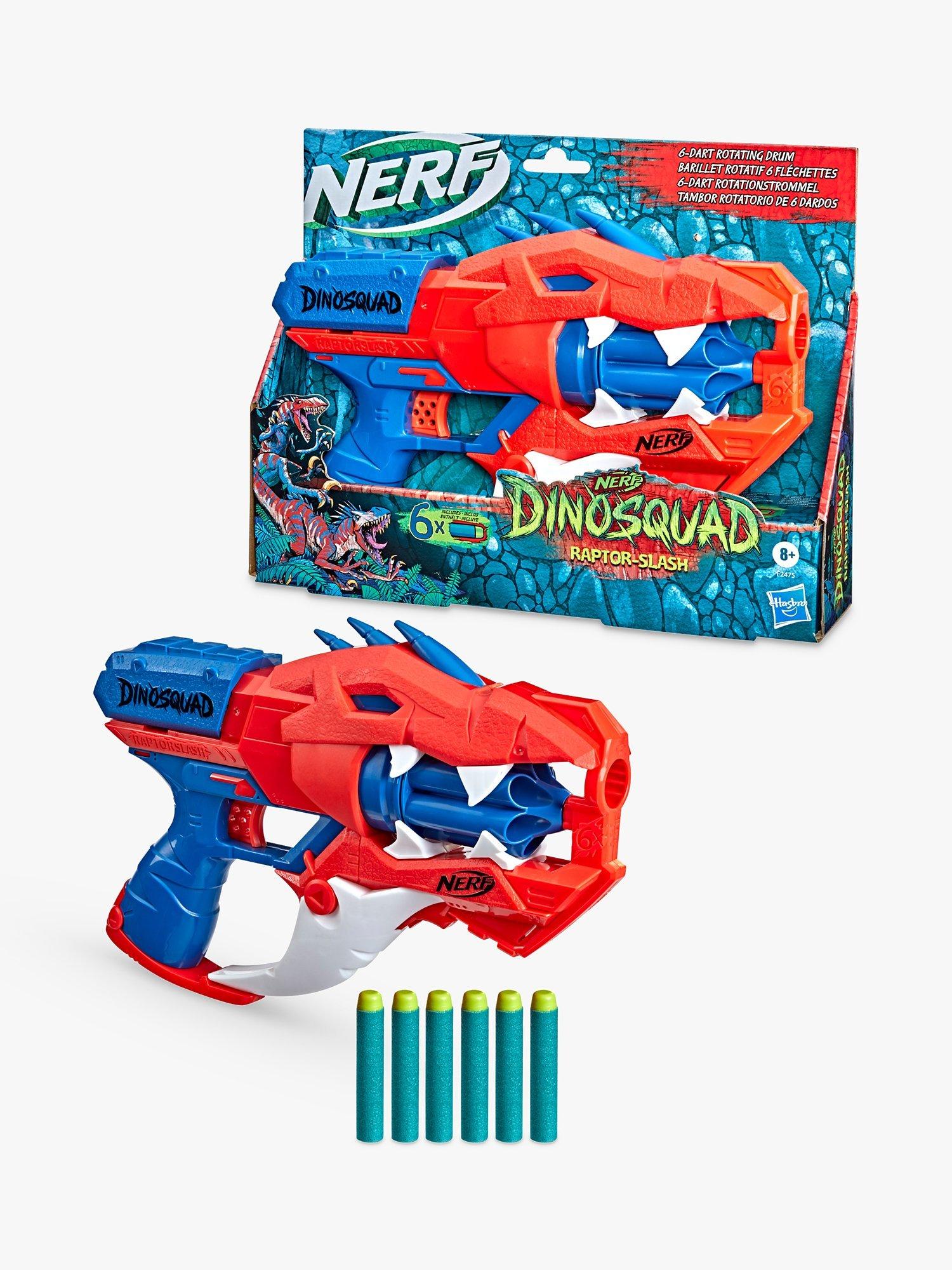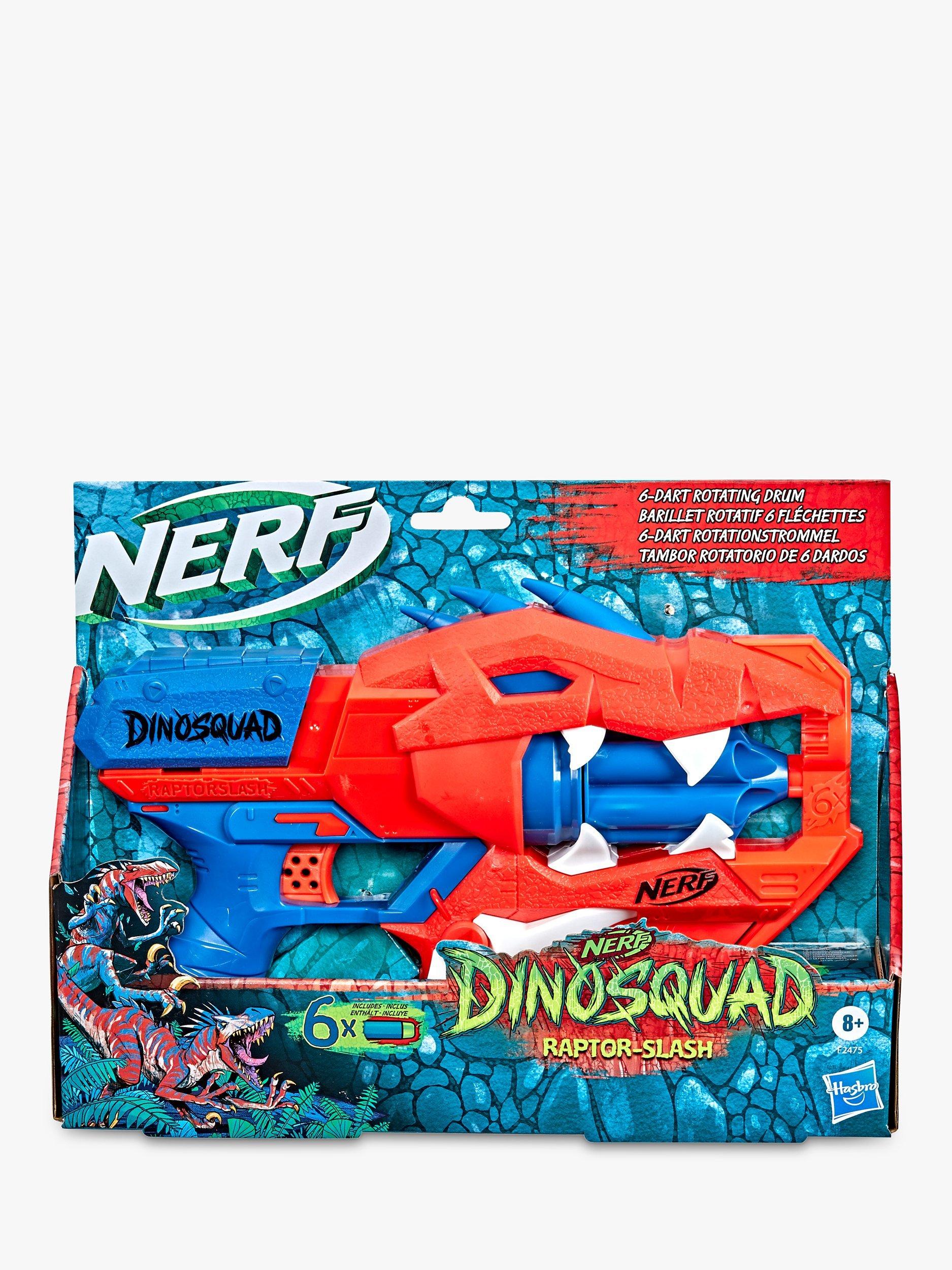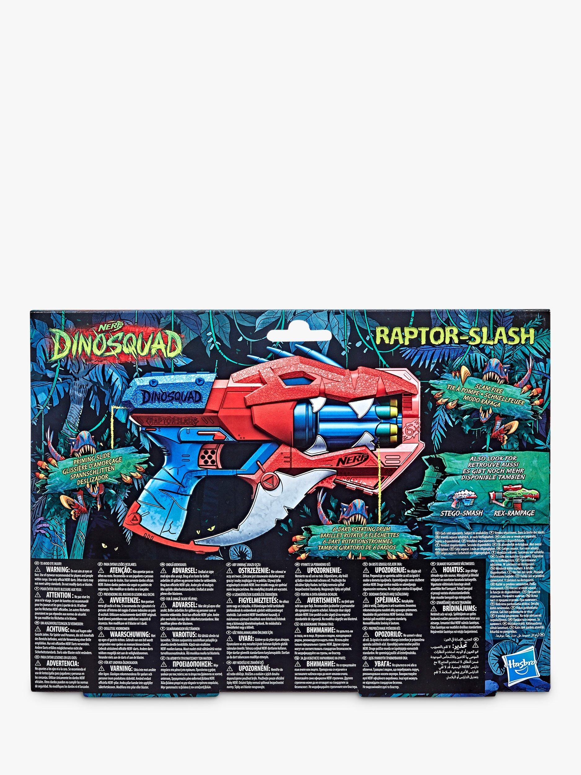 Harness the extraordinary force of the greatest dinosaurs of all and blast into amazing adventures and fire into ferocious fun with the Nerf DinoSquad Raptor-Slash blaster.