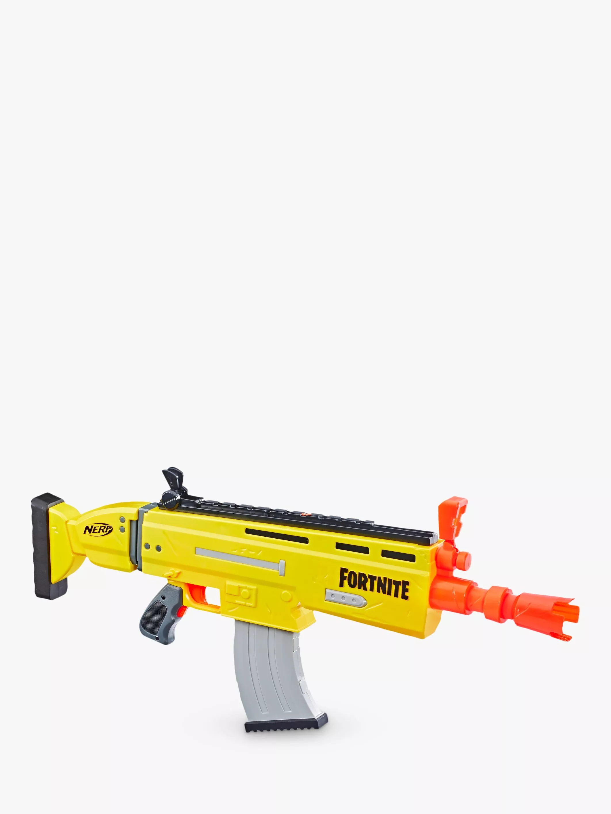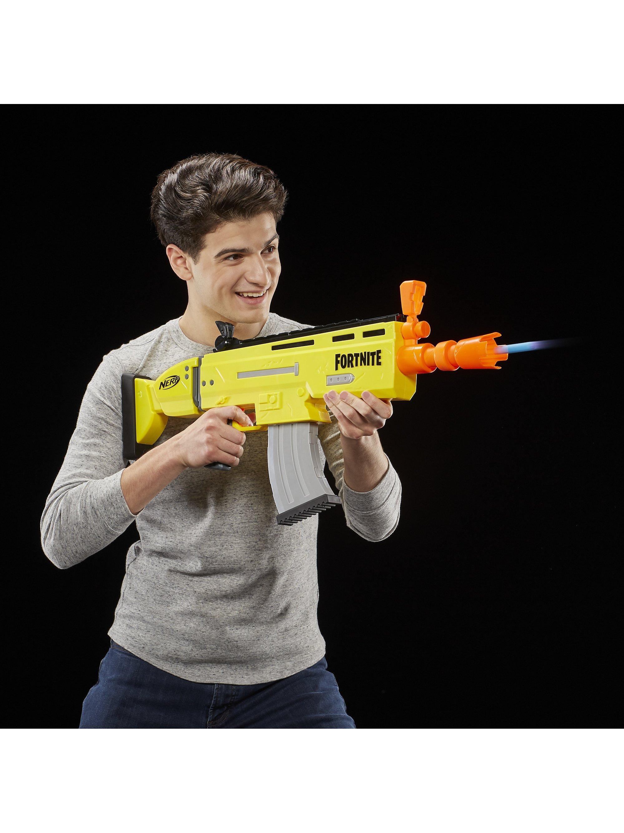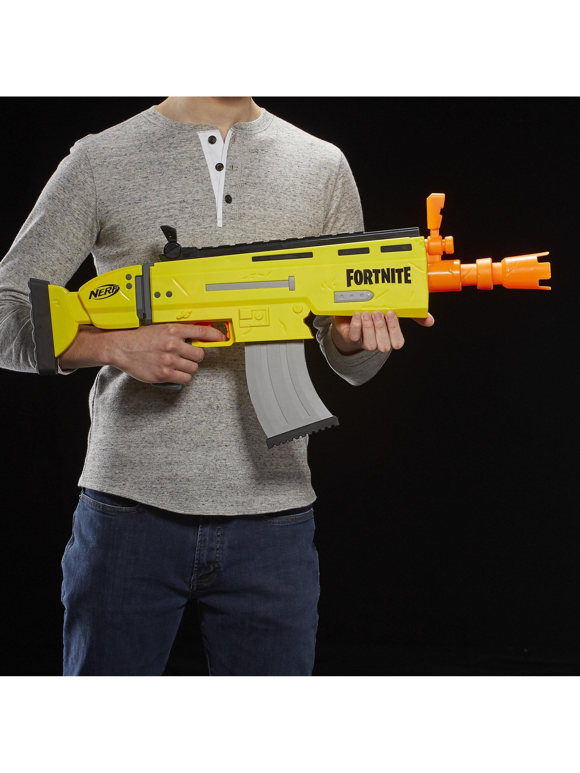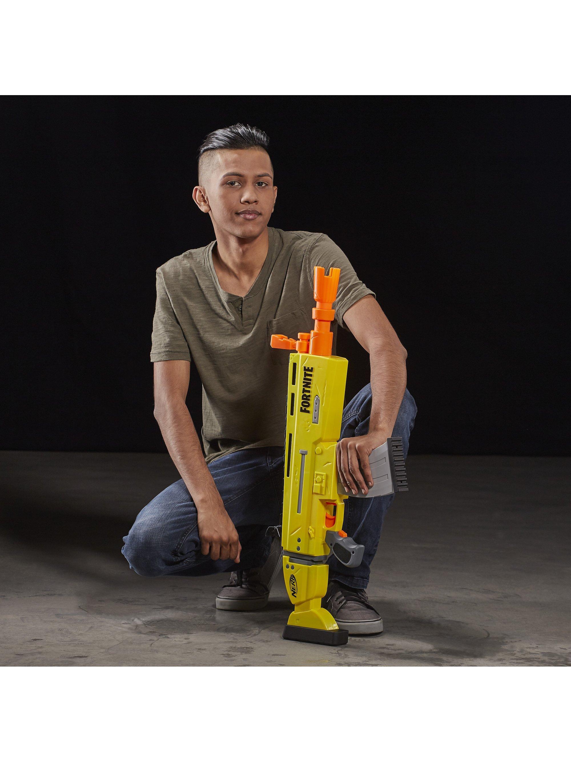 Inspired by the blaster used in Fortnite, replicating the look and colours of the iconic SCAR, it features motorized dart loading and an acceleration button to increase your rate of fire! With a 10-dart clip and 20 Official Nerf Fortnite Elite darts, you've got enough to fully unload the clip and still have 10 backup darts when you need to reload.