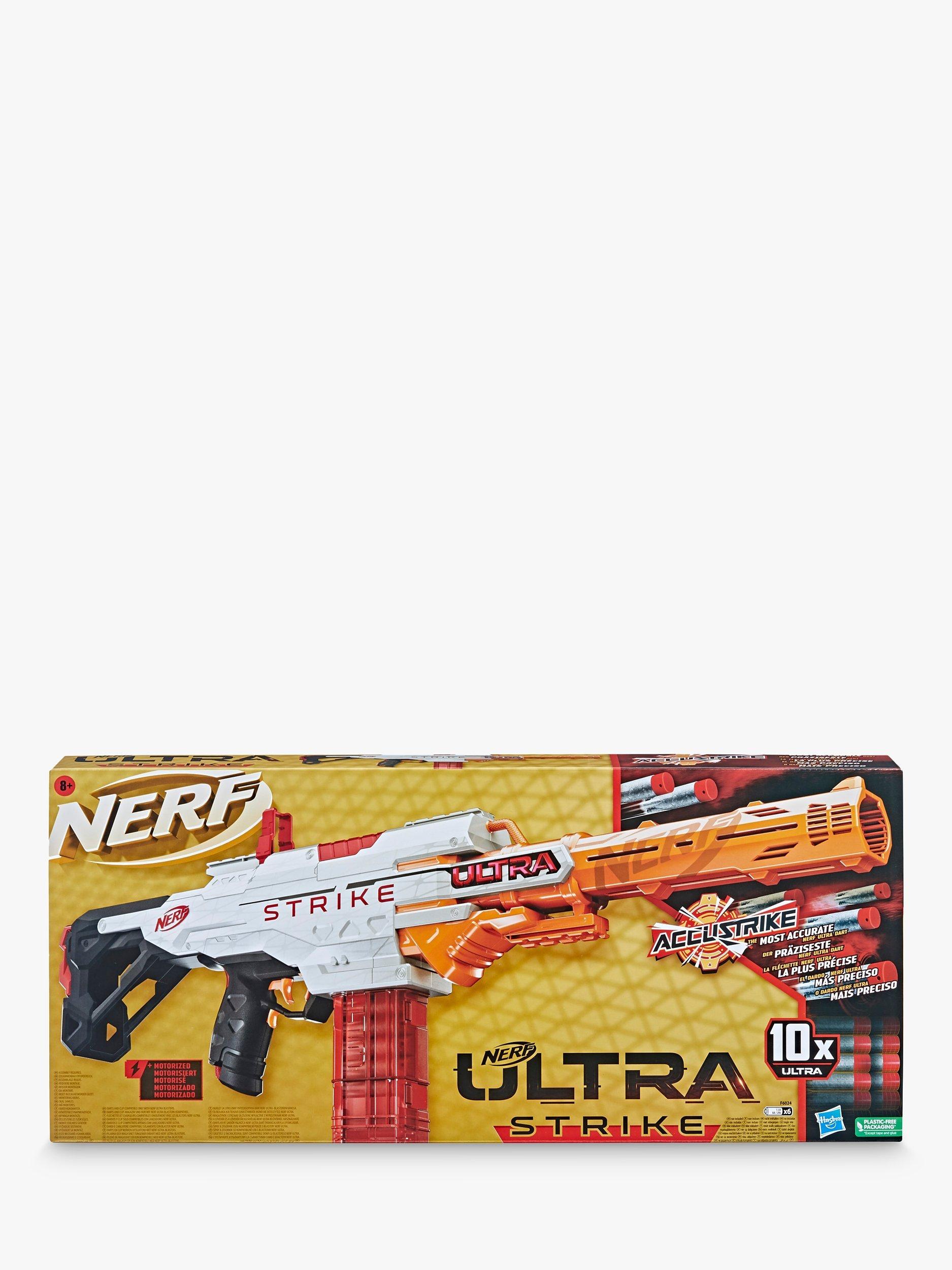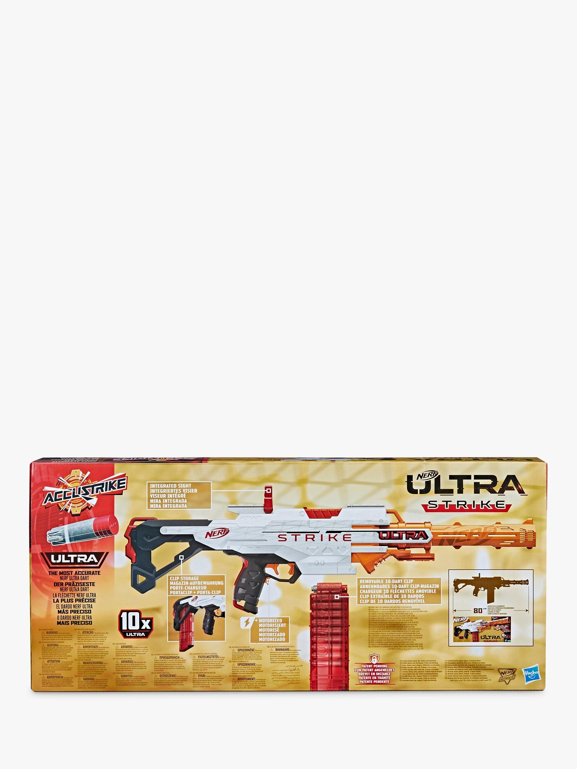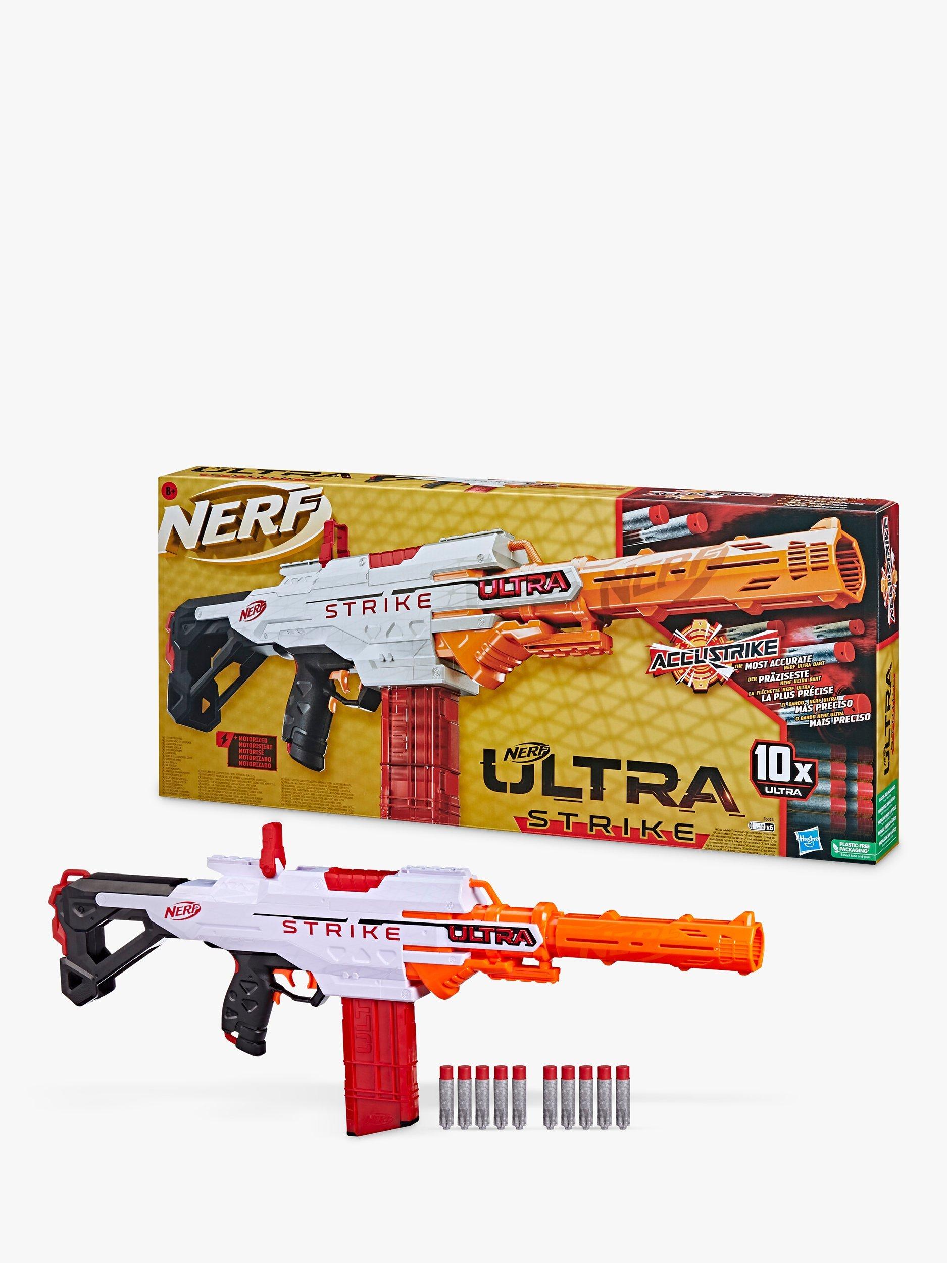 You have the advantage in battle with this blaster that includes 10 Nerf AccuStrike Ultra darts, the most accurate Nerf Ultra darts!
