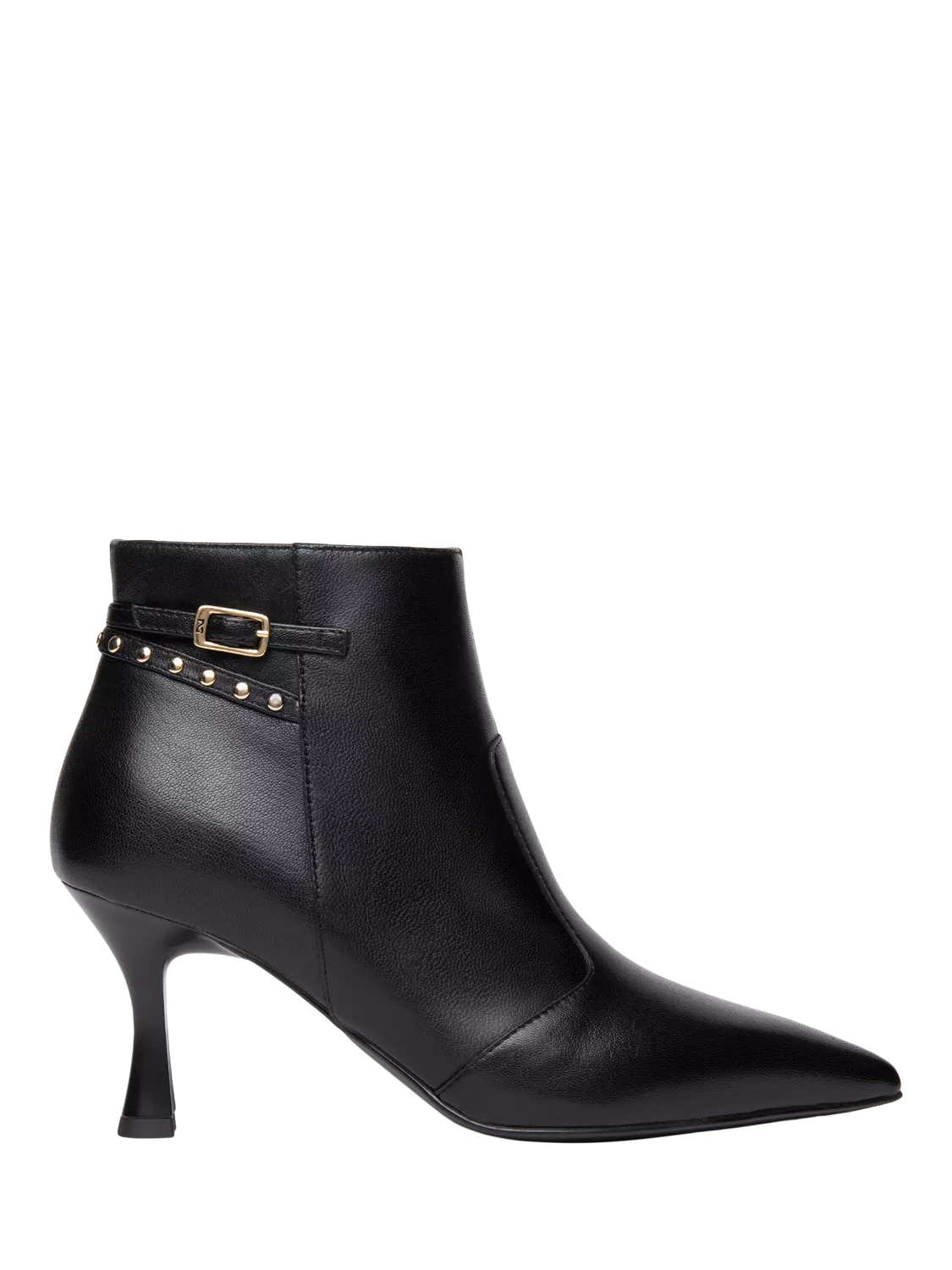 Finish your look with a bold statement with the Aielli boots. Crafted in Italy from supple, nappa leather, Aielli offers the wearer an elegant, pointed toe while sitting on an ultra slim sole. Offering a subtle fashion nod, with antique gold studs and buckle accessory.