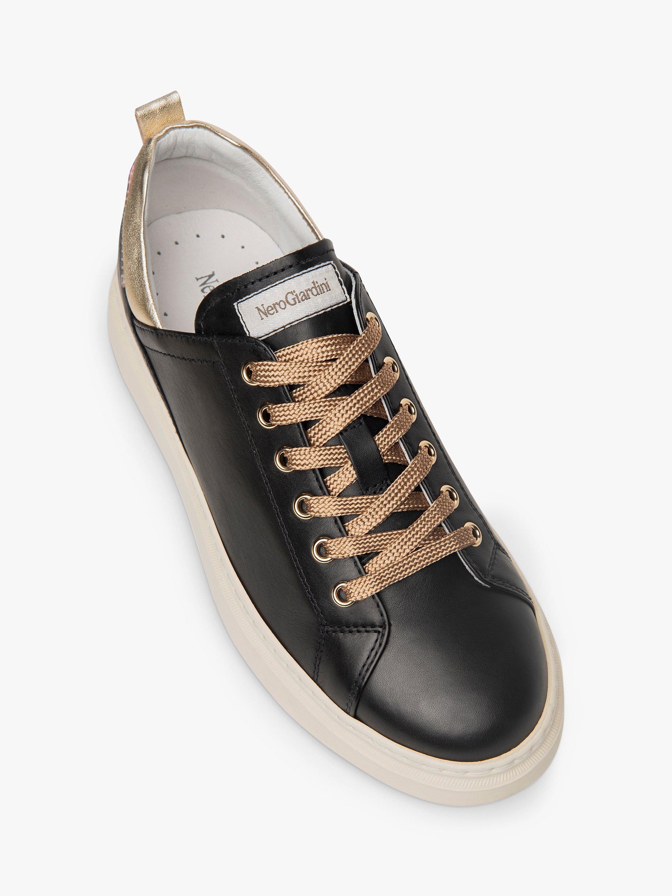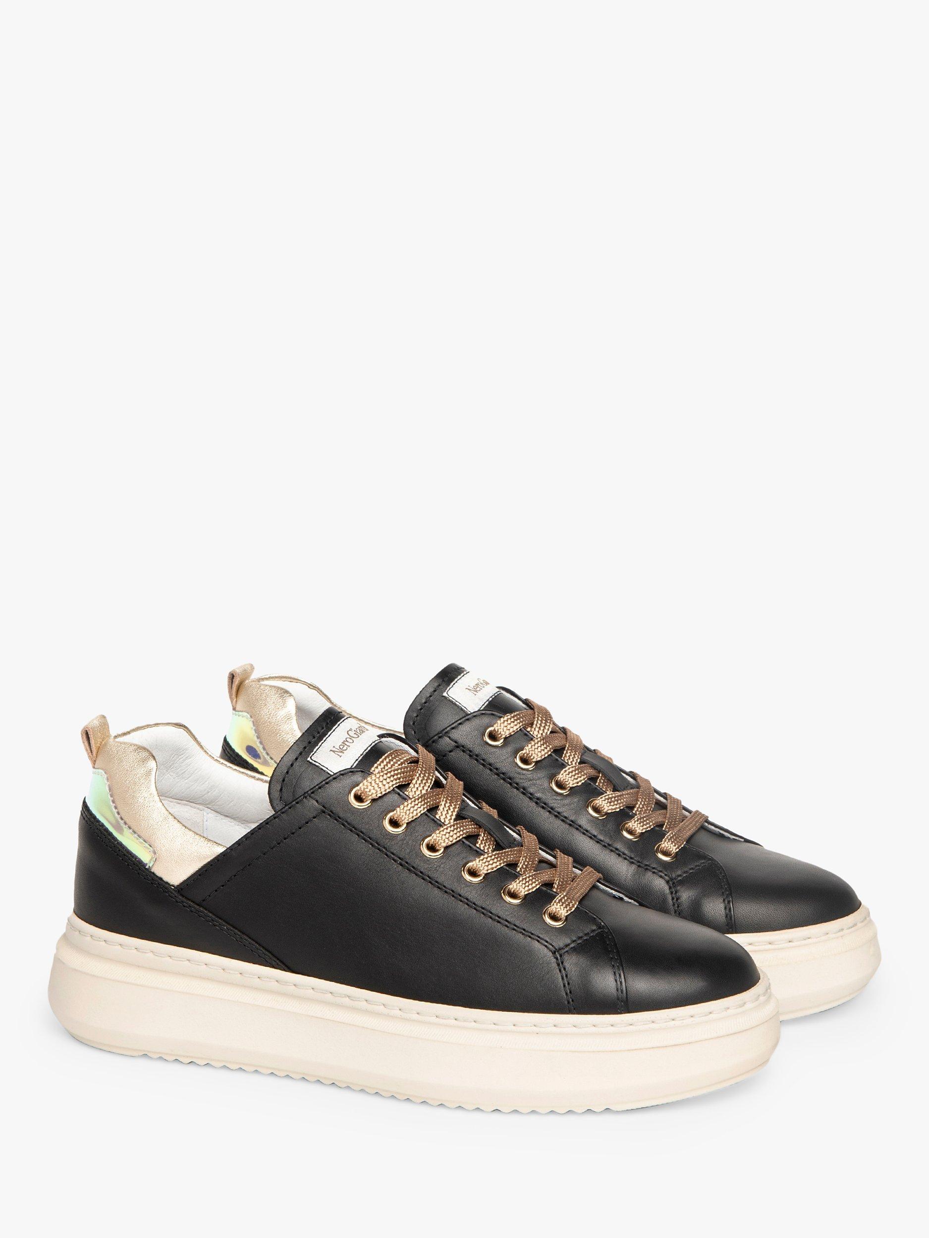 These soft leather trainers from NeroGiardini feature laminated leather inserts and iridescent detailing on the heel.