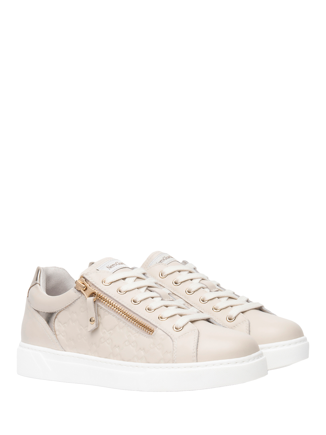 Welcome to NeroGiardini's classic Malaga trainers. Made in Italy from soft, grained leather they feature a side zip, so you can easily slip into and out of your favourite trainers. Finished with a subtle metallic padded heel. Lined in leather for the ultimate in foot comfort, NeroGiardini's trainers all feature an exclusive DryGo!® technology removable footbed, naturally wicking any moisture away.