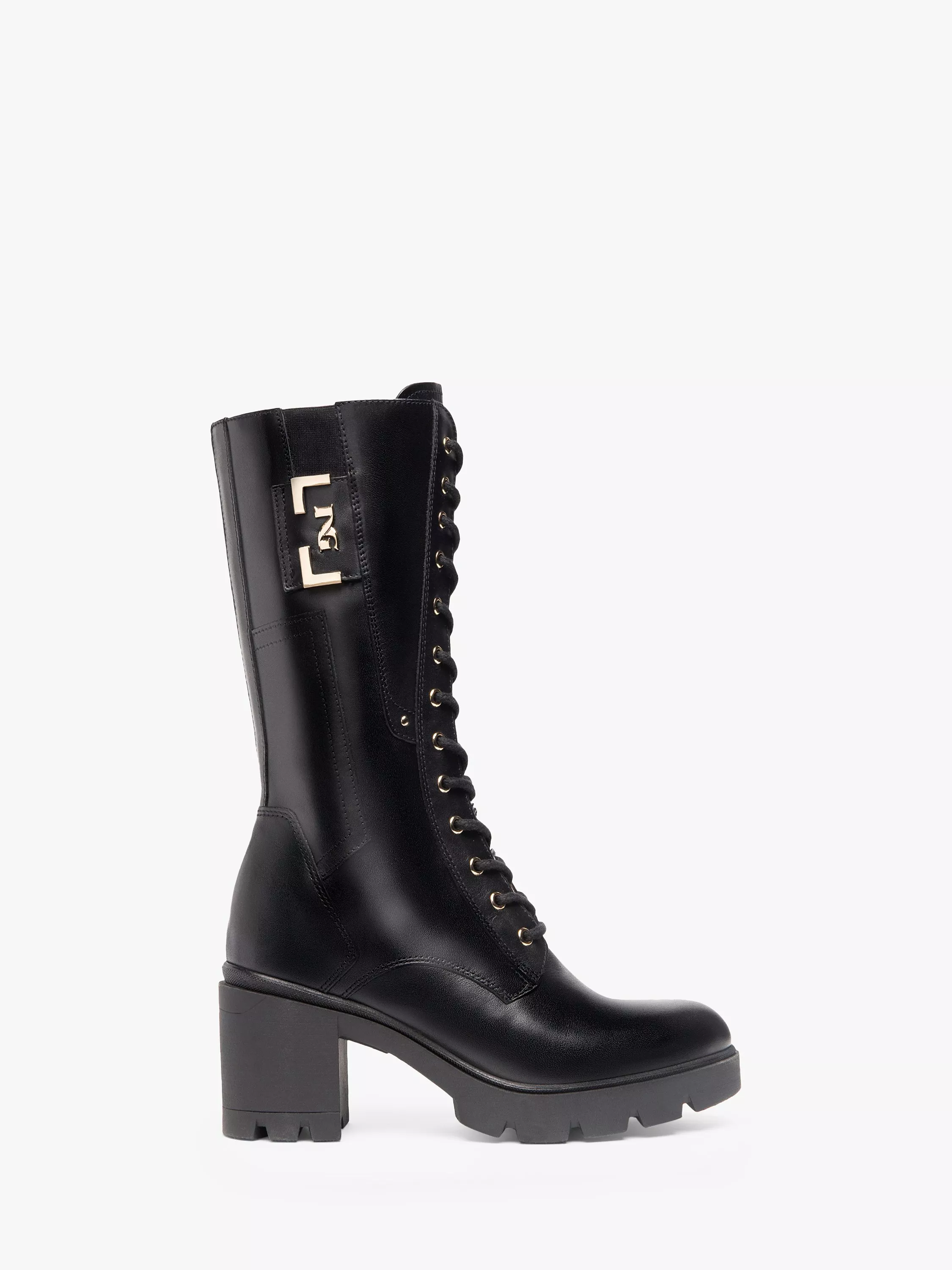 Accessorised with gold metallic eyelets and the NG logo, the boots sit on a mid-height wide block heel for the ultimate comfort.
