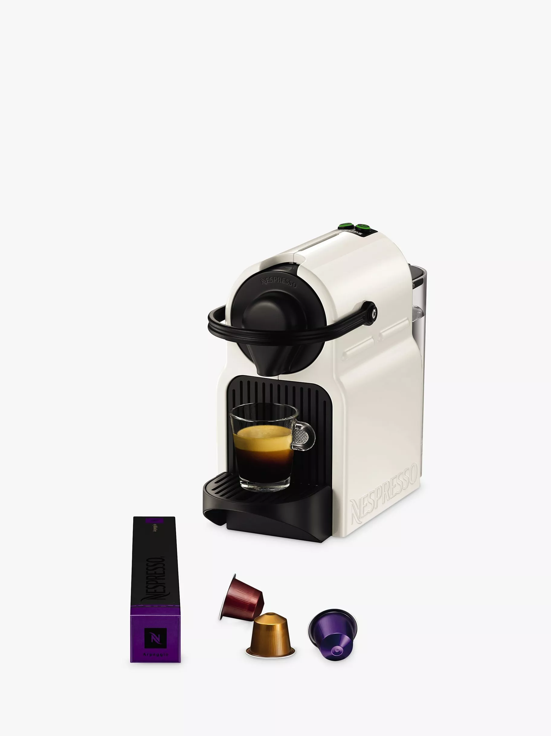 Comes complete with free welcome box of Nespresso capsules and instructions for joining the Nespresso Club, where you can order new capsules easily and quickly over the phone or online.