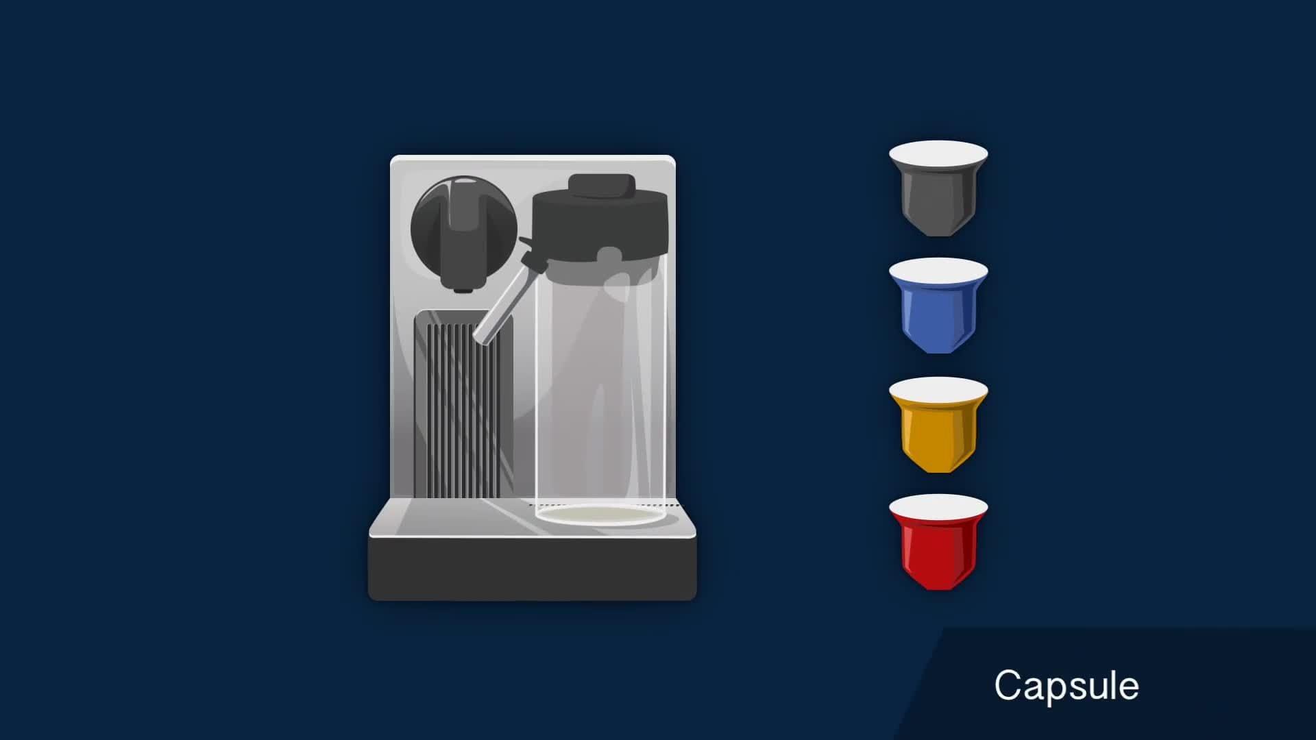 - Espresso, Lungo, Cappuccino, Latte, Macchiato