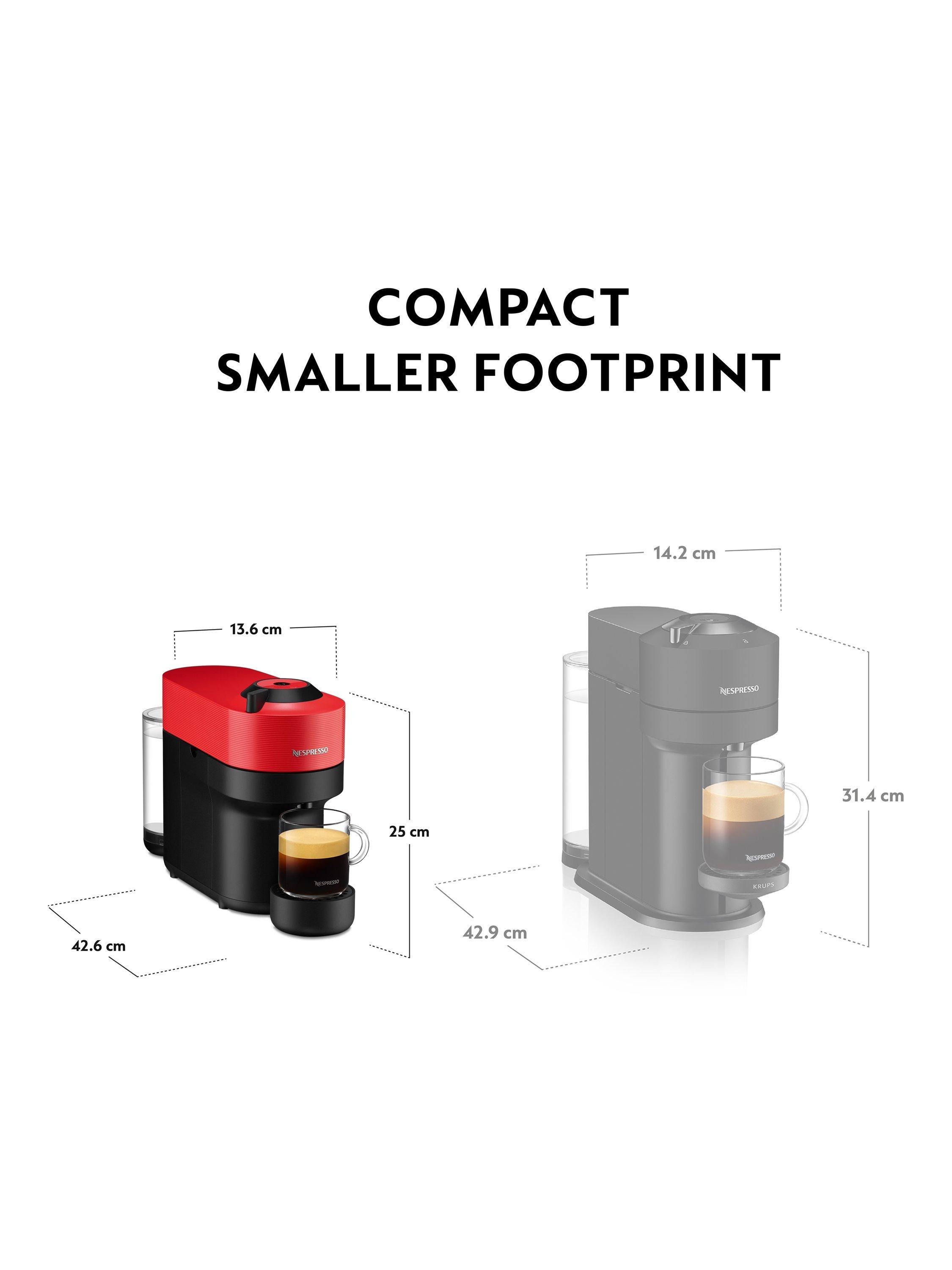 Smaller footprint than a standard Nespresso coffee machine with a water tank to match.