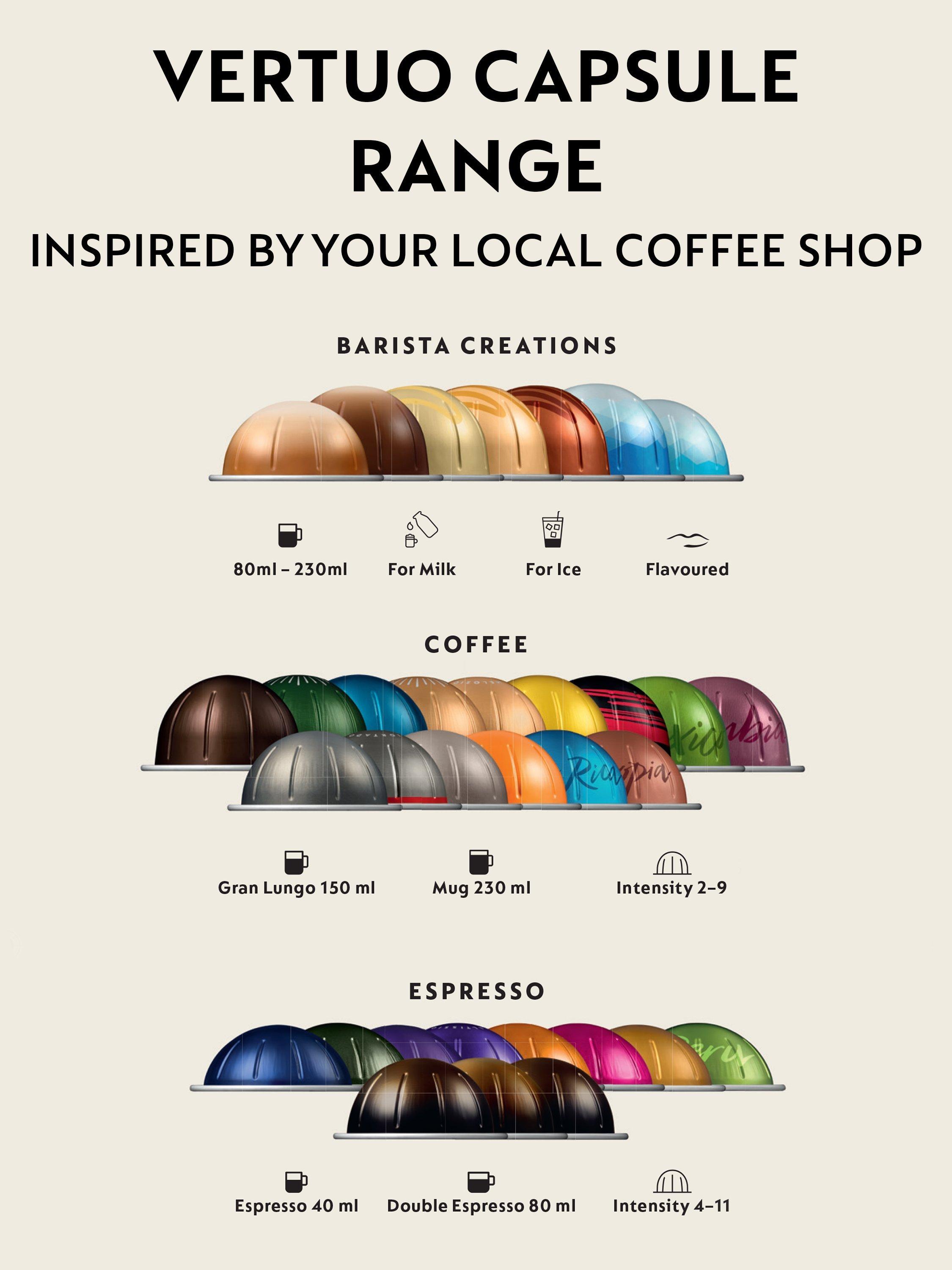 Nespresso Coffee Pods protect the freshness and aromas of our coffee from the moment they were roasted and ground. Exclusively works with Nespresso Vertuo pods featuring over 30 blends.