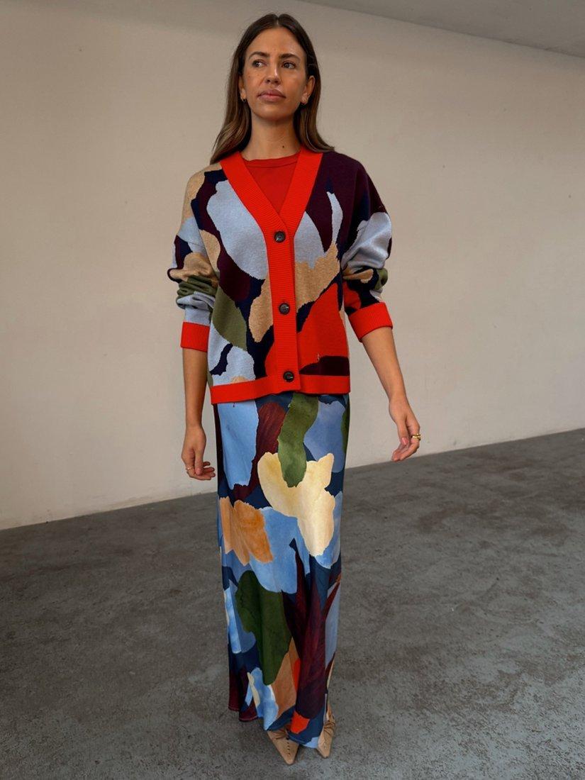 Never Fully DressedAbstract Long Sleeve V Neck Cardigan