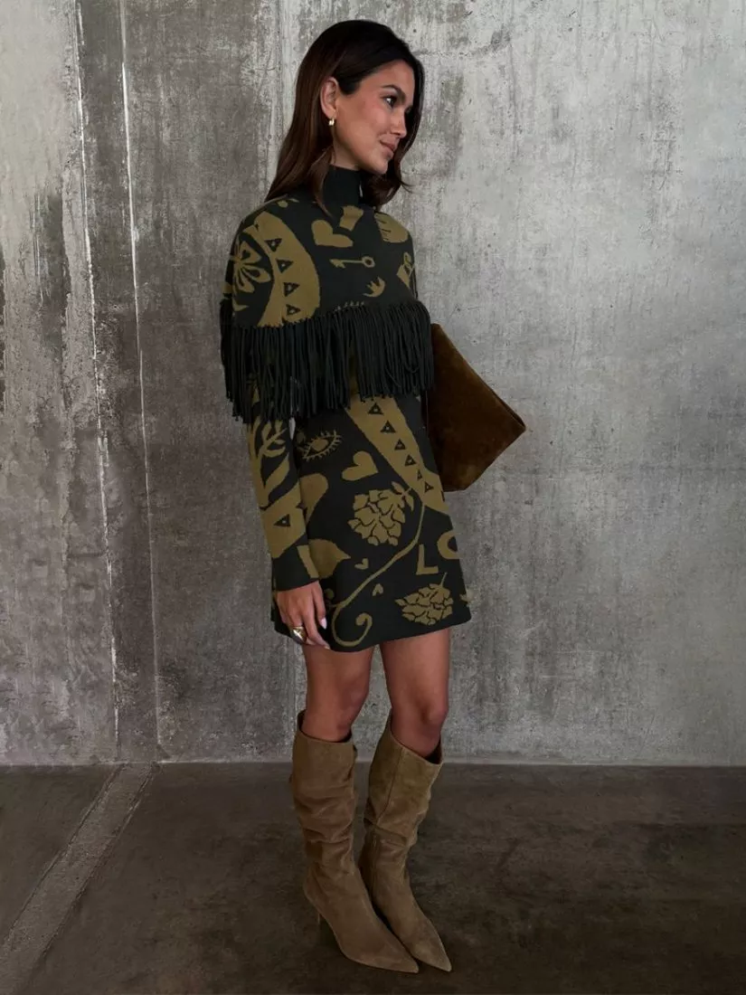Cosiness incoming. This mini knit dress from Never Fully Dressed has a round neck, long sleeves and is finished with a loveable floral and heart design.