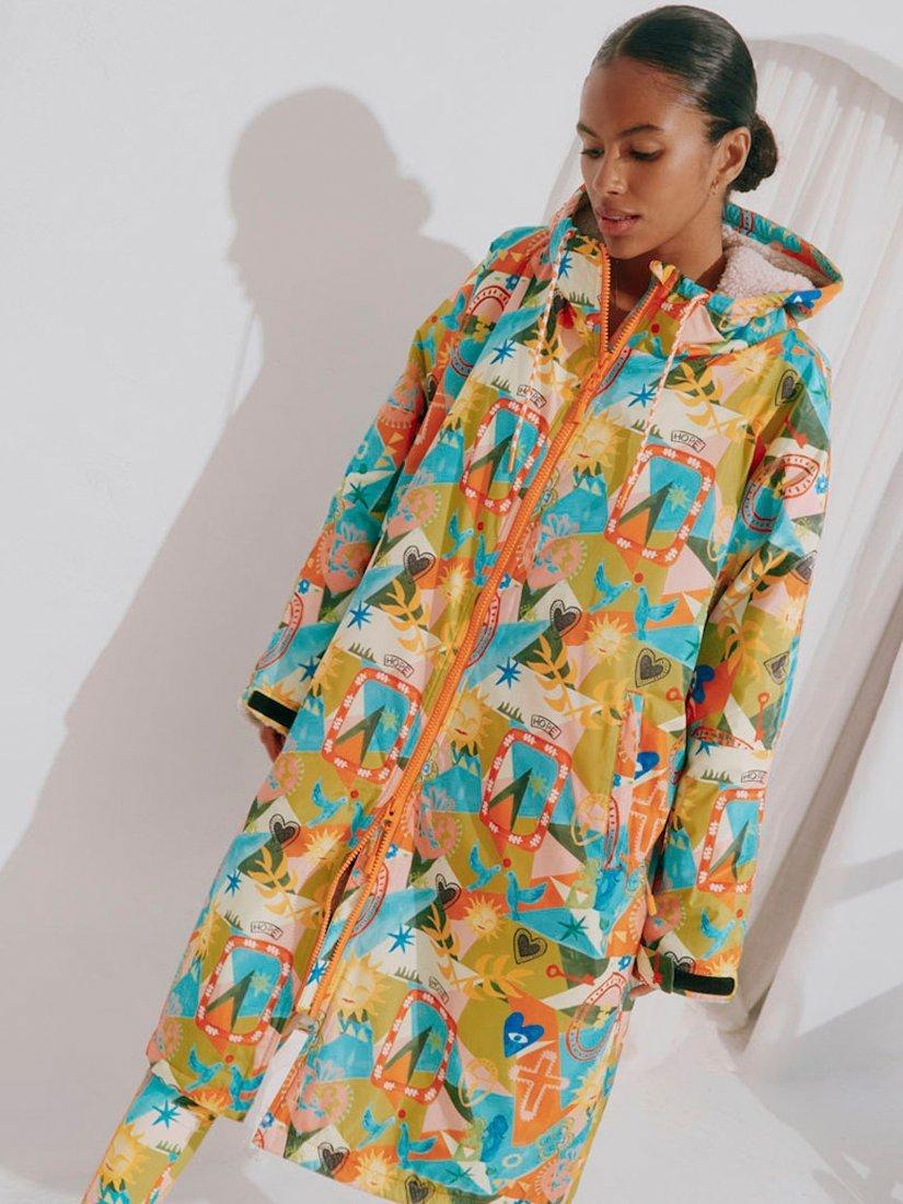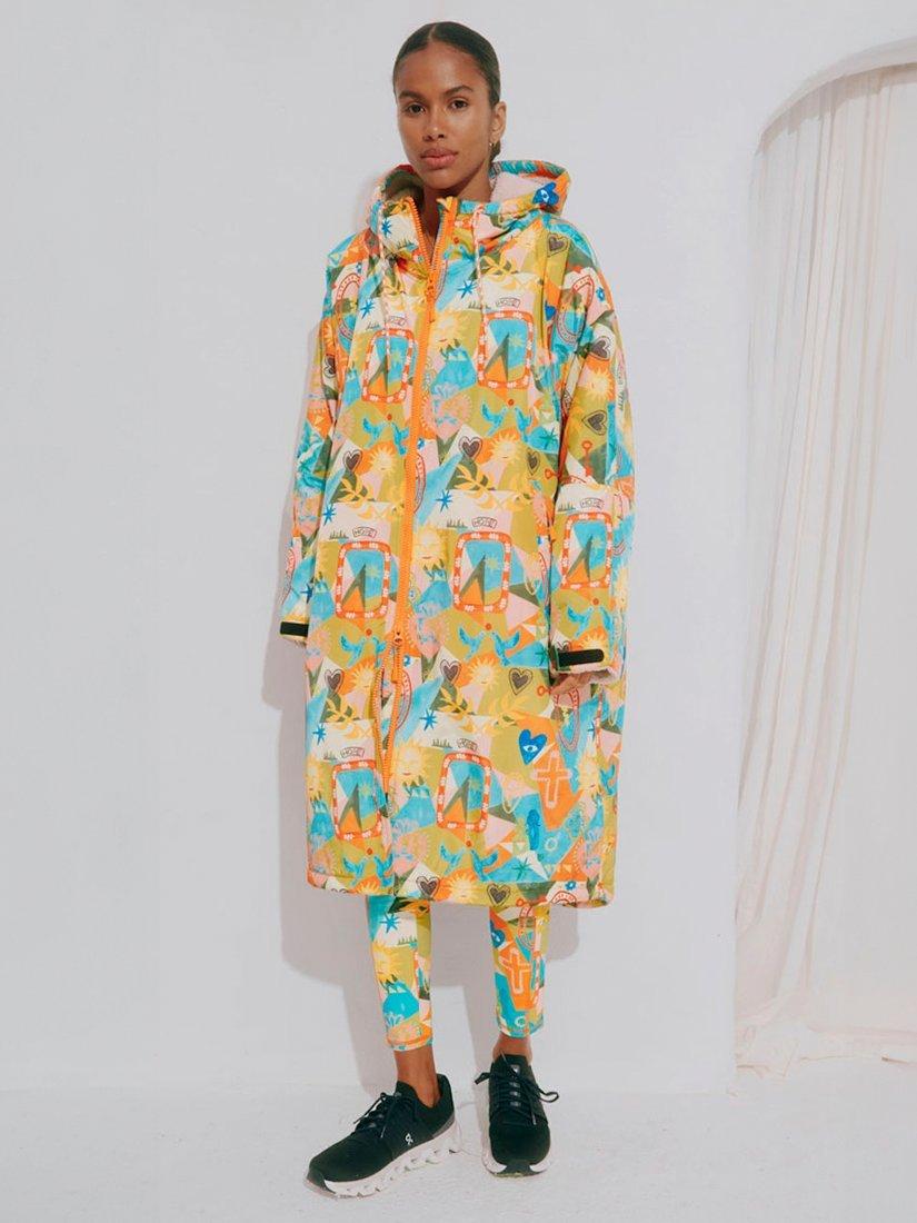 In a waterproof fabric that's lined with a cosy fleece fabric and printed with iconic NFD motifs.
